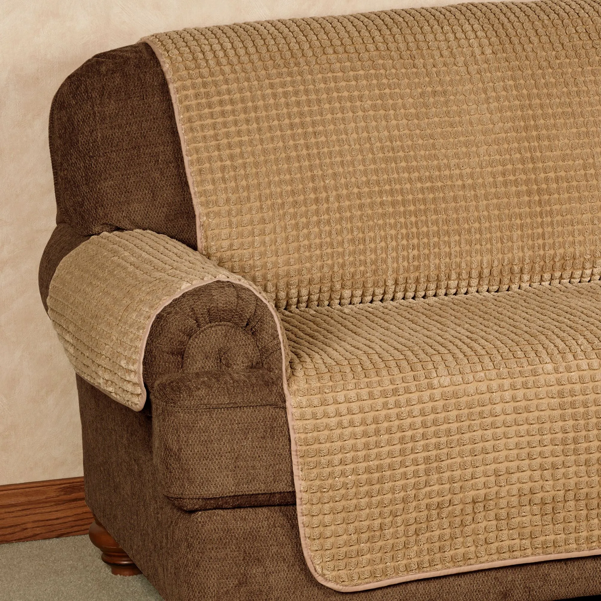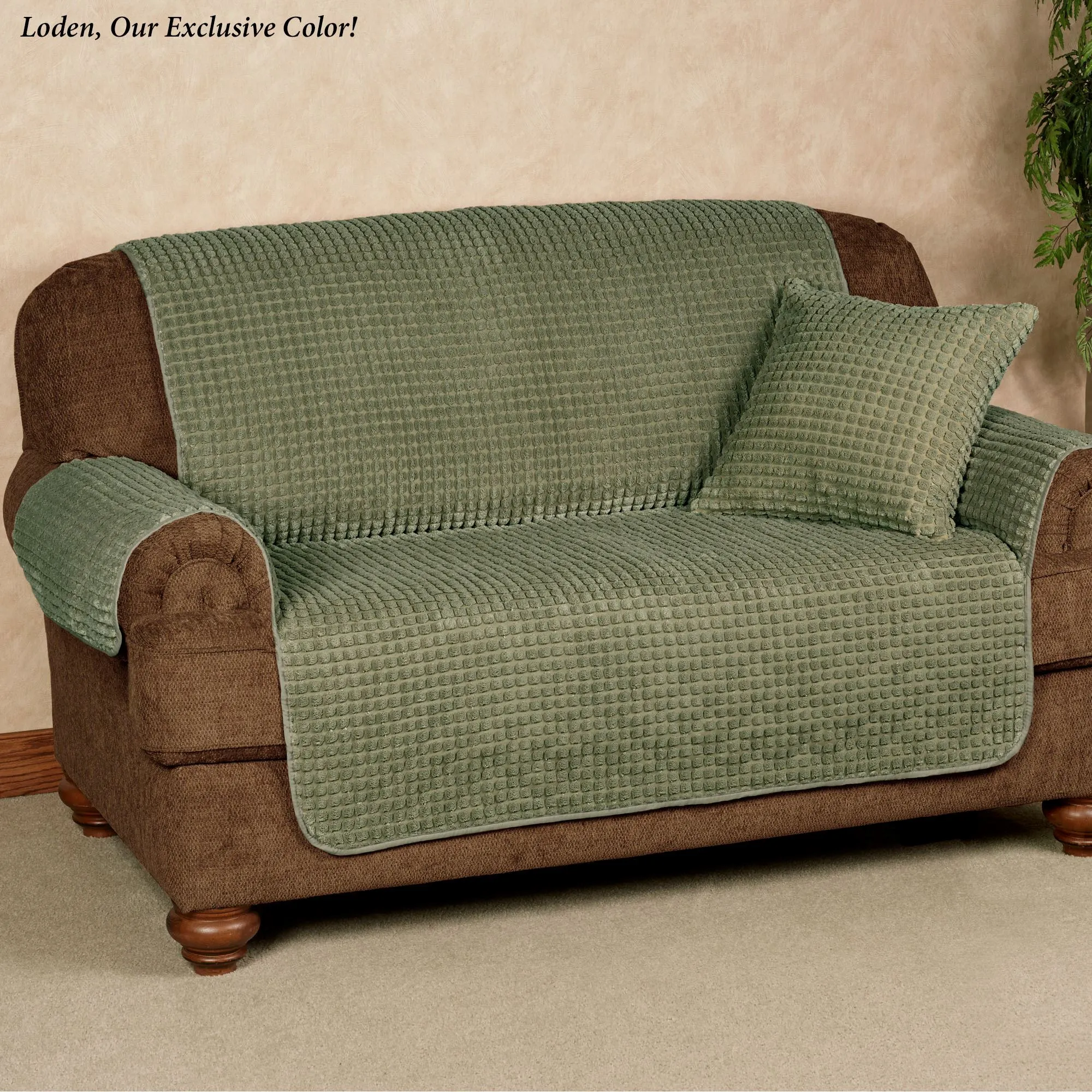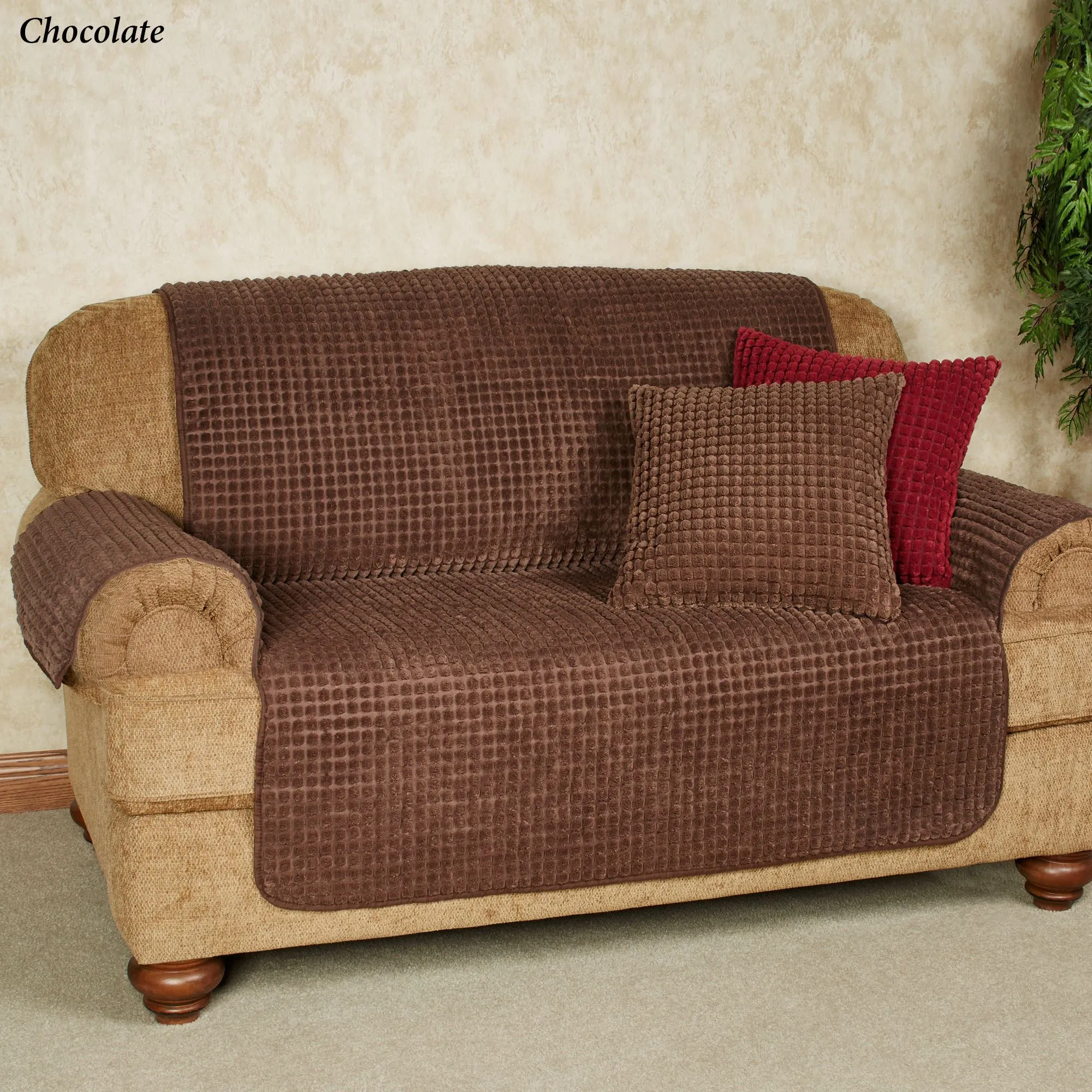 Defend your furnishings against accidents, spills, and pet hair with the Premier Puff Furniture Protector. This polyester/nylon, one-piece protector has a soft, plush puff square design. Tuck-in flaps and a longer back help keep it in place. Snag- and soil-resistant protector has polyester fill. Back is polypropylene. Please note: For a chair and a half, the Loveseat Cover is recommended. The Recliner Cover can be used on a standard chair or a wing chair. Choose Natural, Chocolate, Crimson, Dark Gray, Federal Blue, Harvest Gold, Loden, or Plum. Washable. Snag-resistant Pillow is also available; spot clean. Imported.