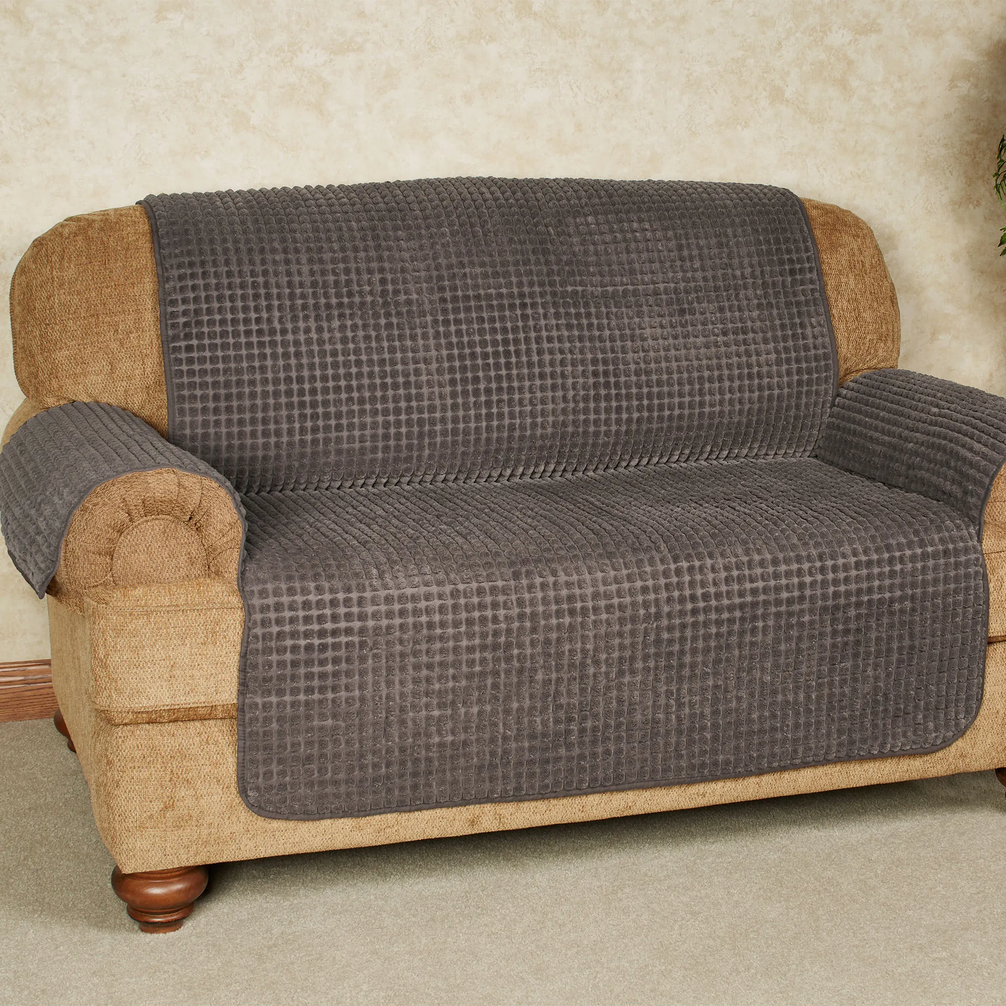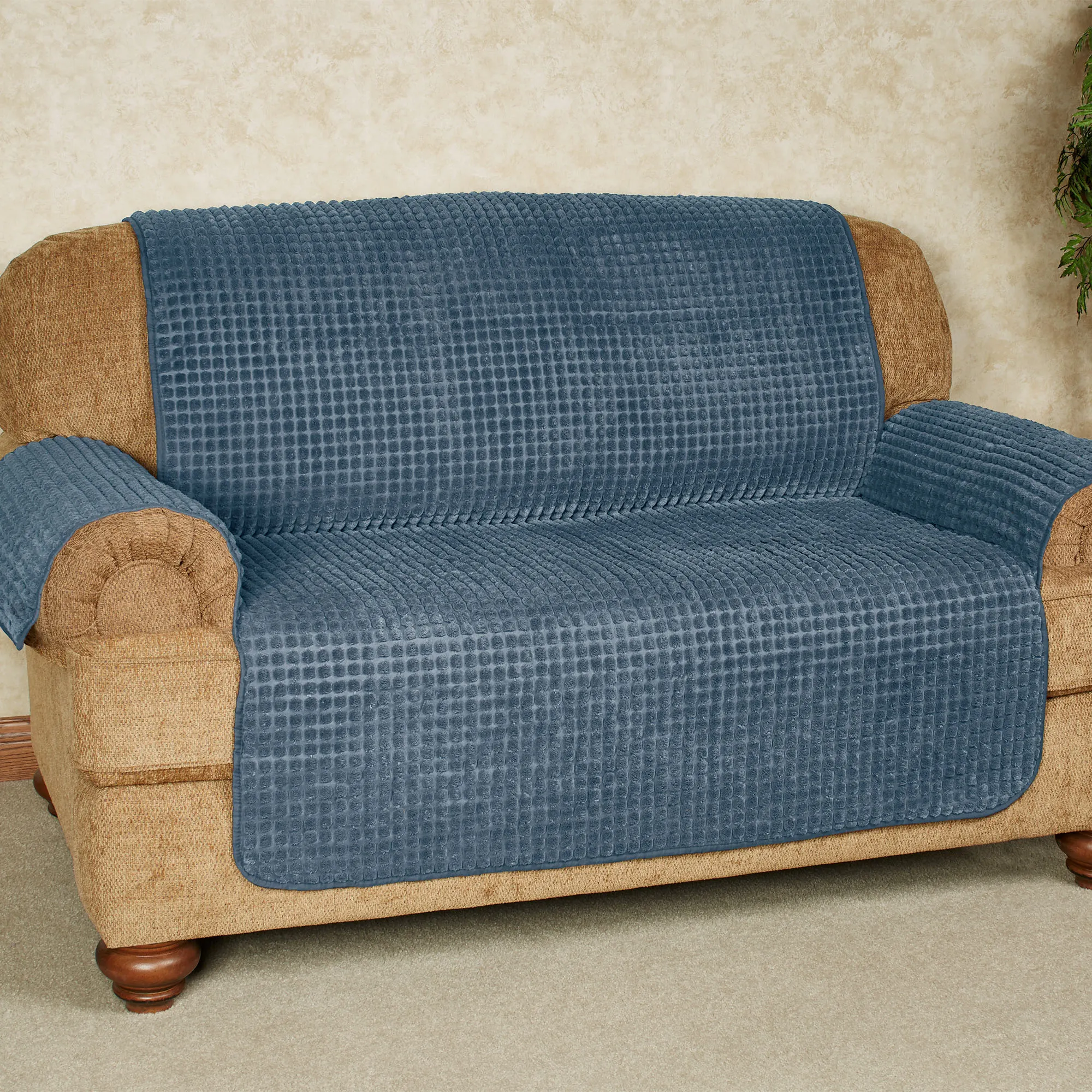 This loveseat cover is really plush and comfortable. Fits nicely. The only reason I gave it 4 stars (instead of 5) is that it would be nice if the flip side was a waterproof material. I probably read the item description wrong. But, for some reason, I thought this item was waterproof. However, I still really like it.