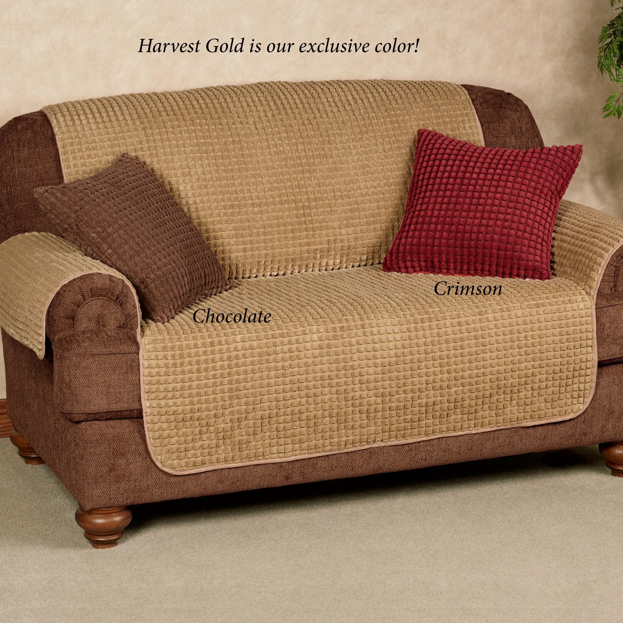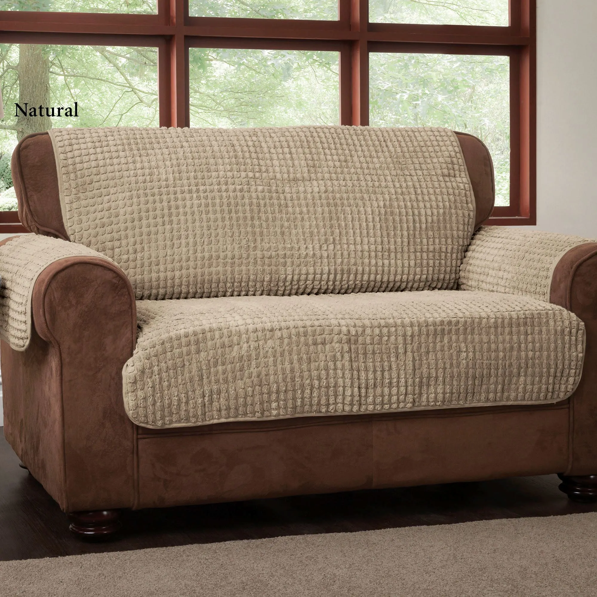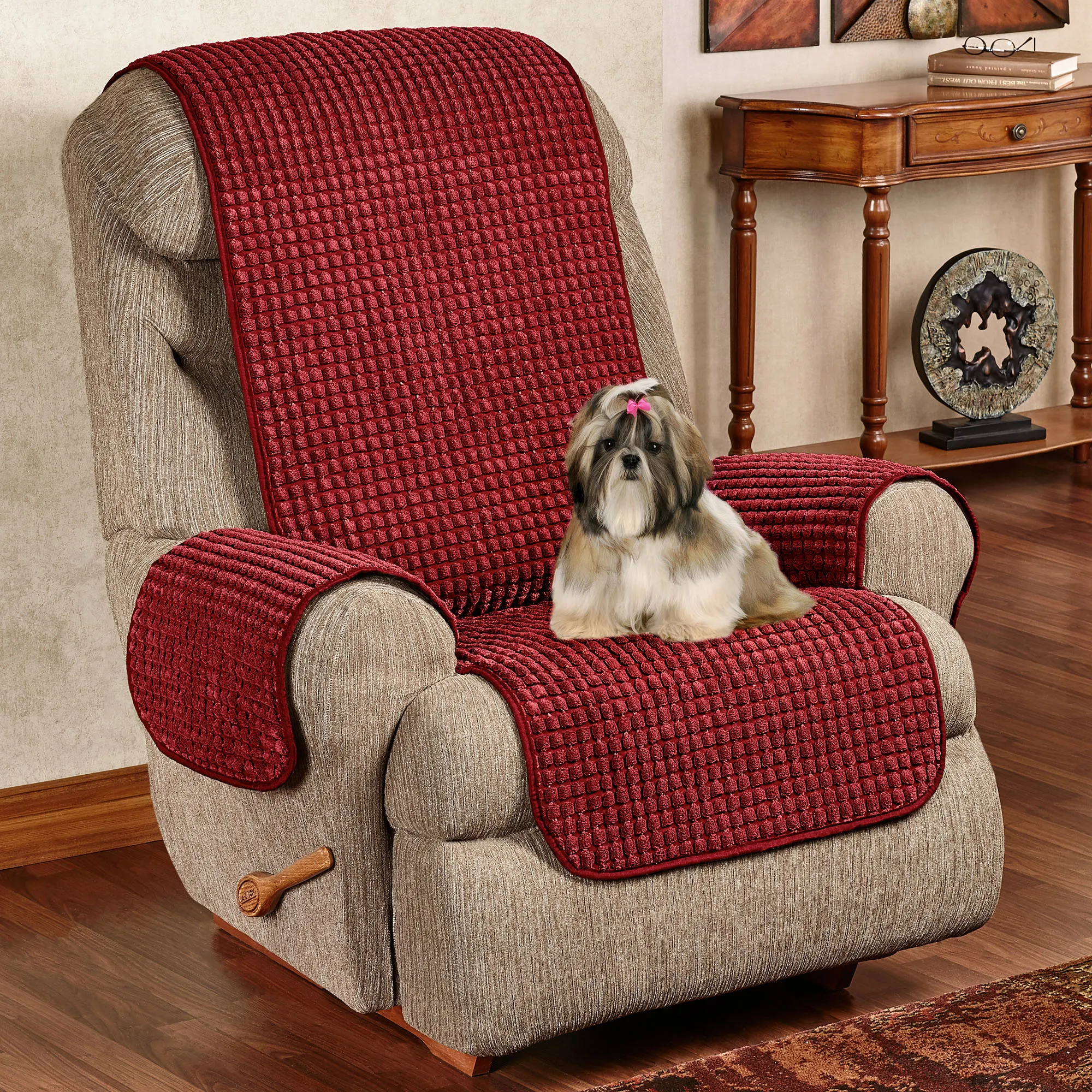 Accidents, spills, and pet hair are no match for the Premier Puff Furniture Protector. This polyester/nylon, one-piece protector has a soft, plush puff square design. Tuck-in flaps and a longer back help keep it in place. Snag- and soil-resistant protector has polyester fill. Back is polypropylene. Please note: The Recliner Cover can be used on a standard chair or a wing chair. For a chair and a half, the Loveseat Cover is recommended. Choose Crimson, Chocolate, Dark Gray, Harvest Gold, Loden, Natural, or Plum. Washable. Snag-resistant Pillow is also available; spot clean. Imported.