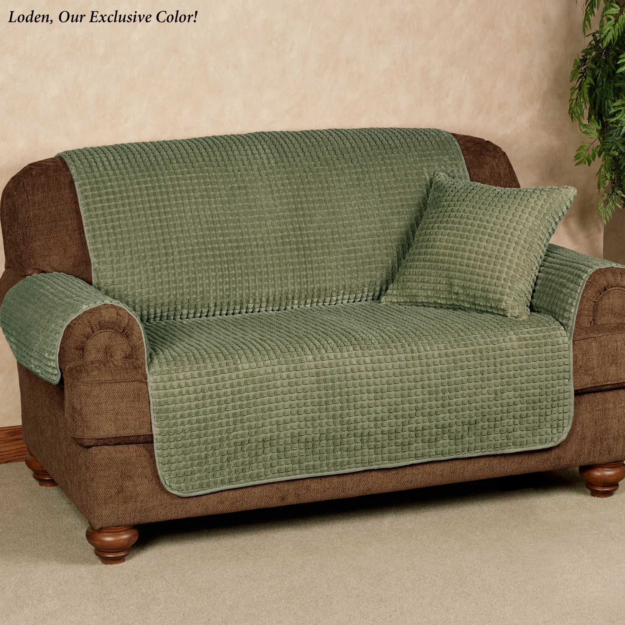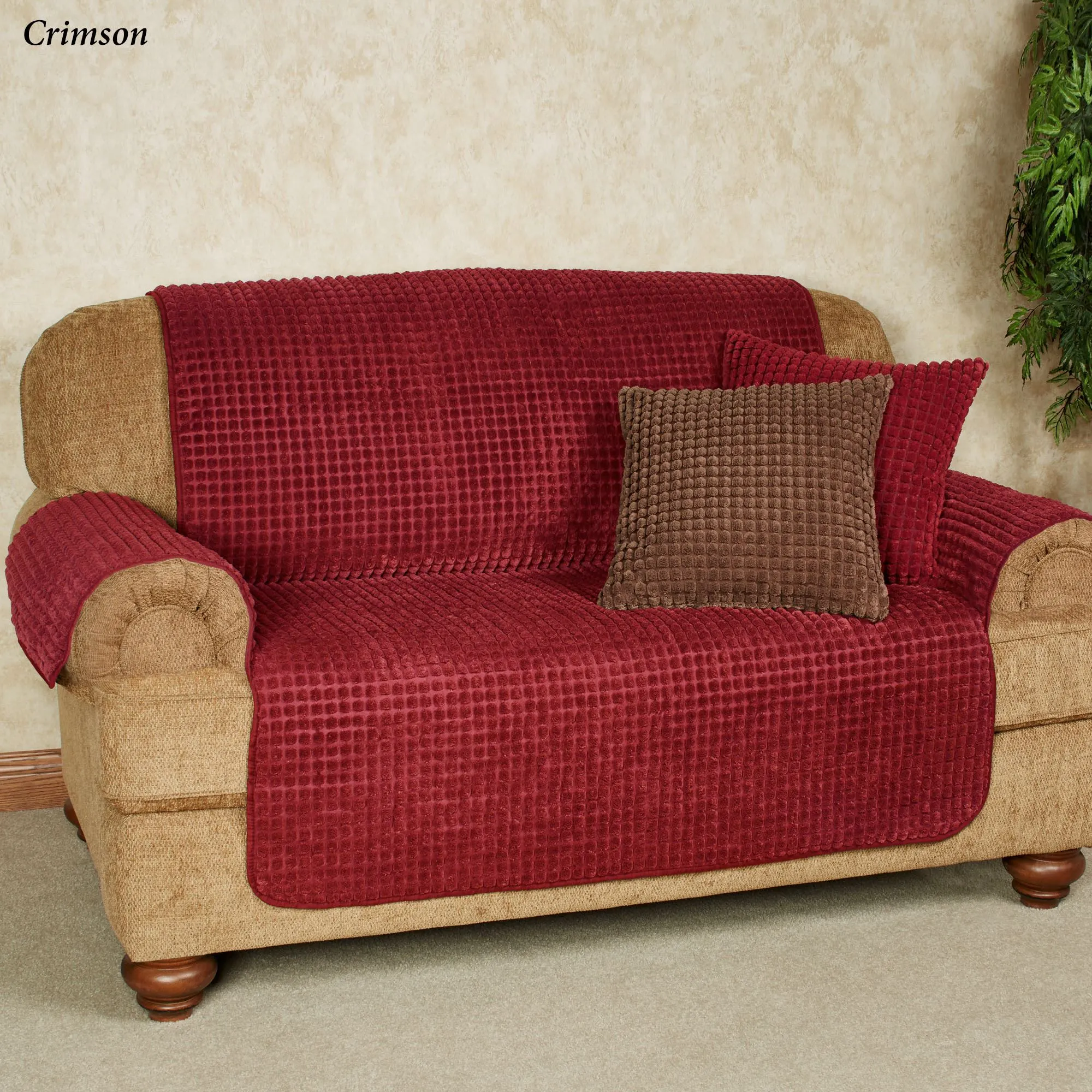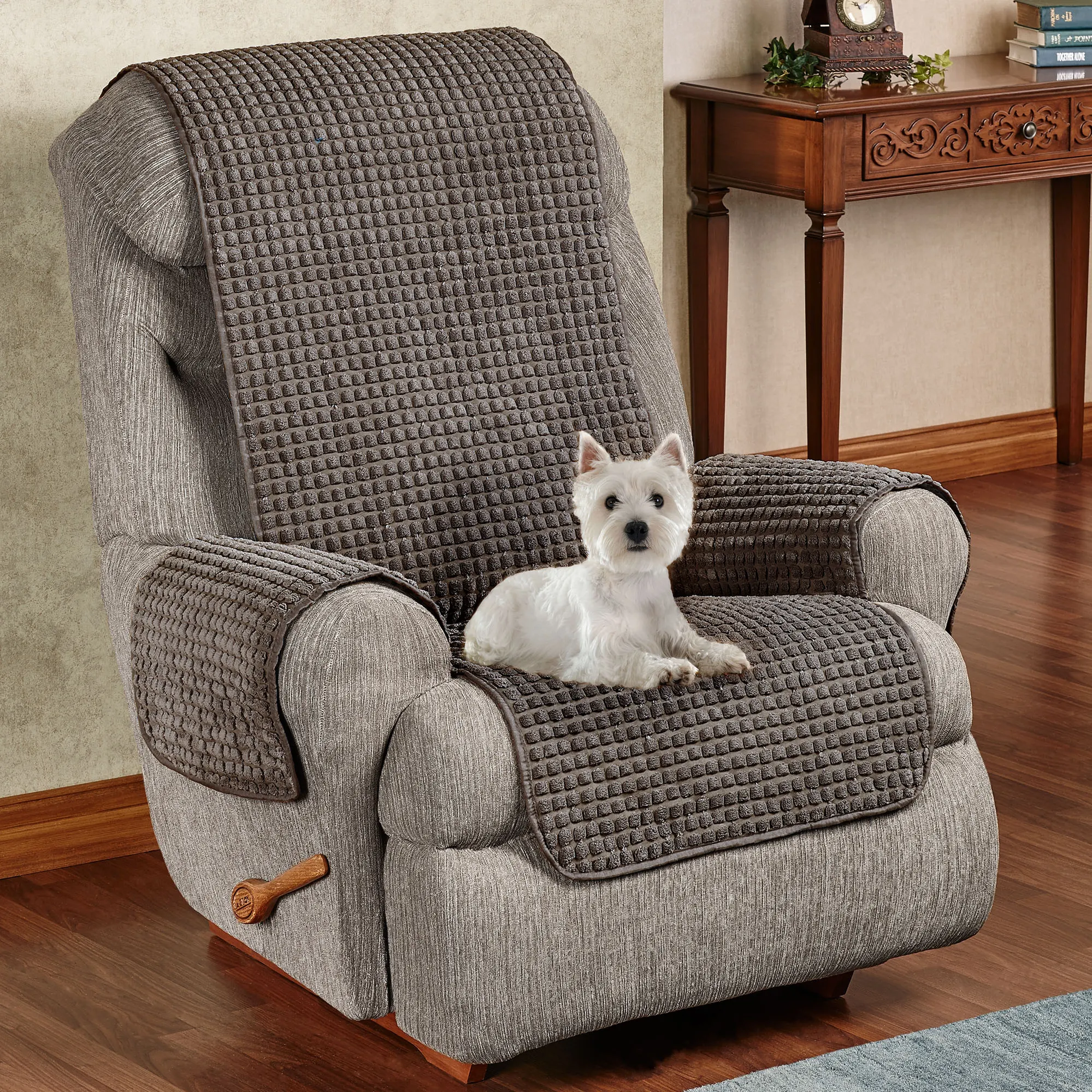Accidents, spills, and pet hair are no match for the Premier Puff Furniture Protector. This polyester/nylon, one-piece protector has a soft, plush puff square design. Tuck-in flaps and a longer back help keep it in place. Snag- and soil-resistant protector has polyester fill. Back is polypropylene. Please note: The Recliner Cover can be used on a standard chair or a wing chair. For a chair and a half, the Loveseat Cover is recommended. Choose Crimson, Chocolate, Dark Gray, Harvest Gold, Loden, Natural, or Plum. Washable. Snag-resistant Pillow is also available; spot clean. Imported.