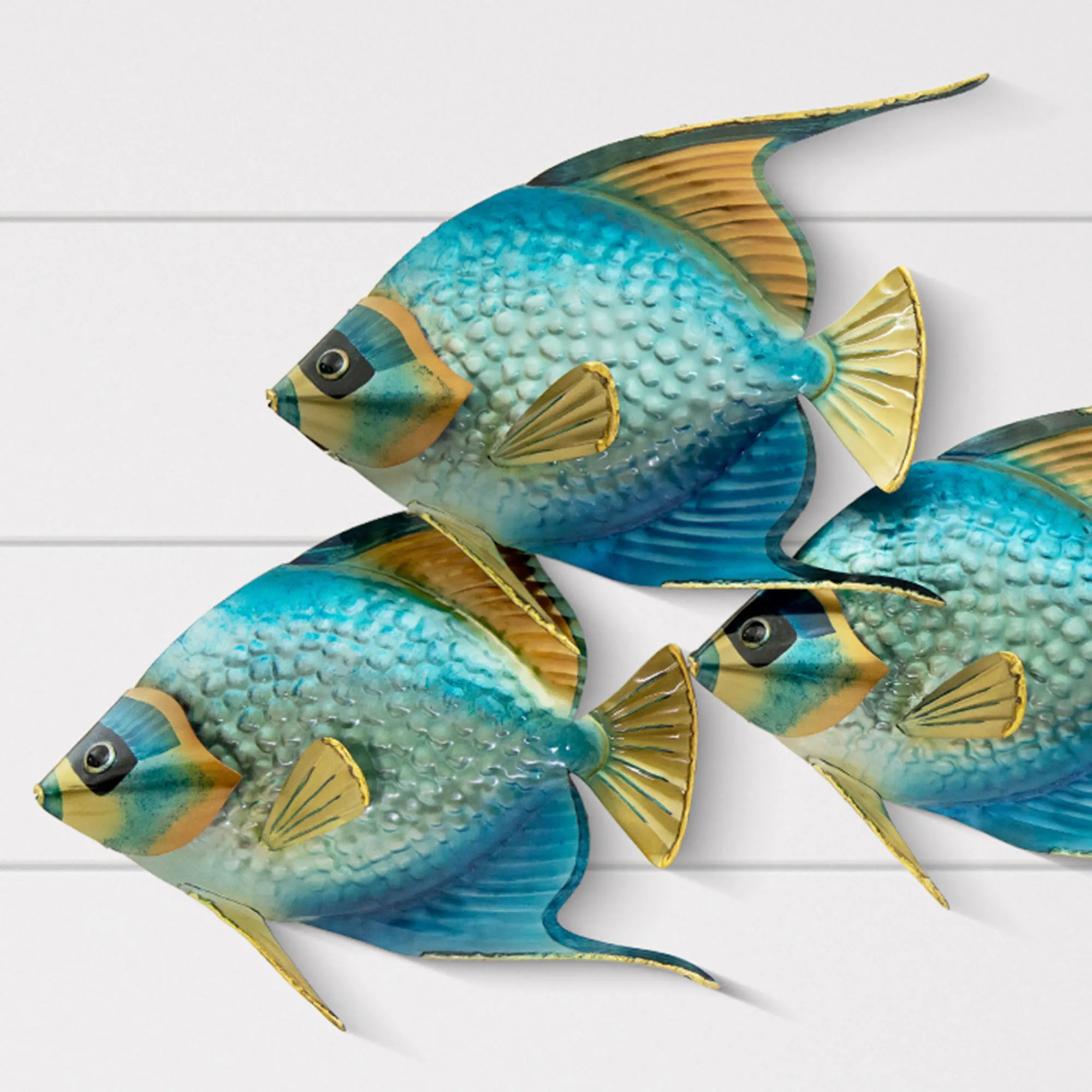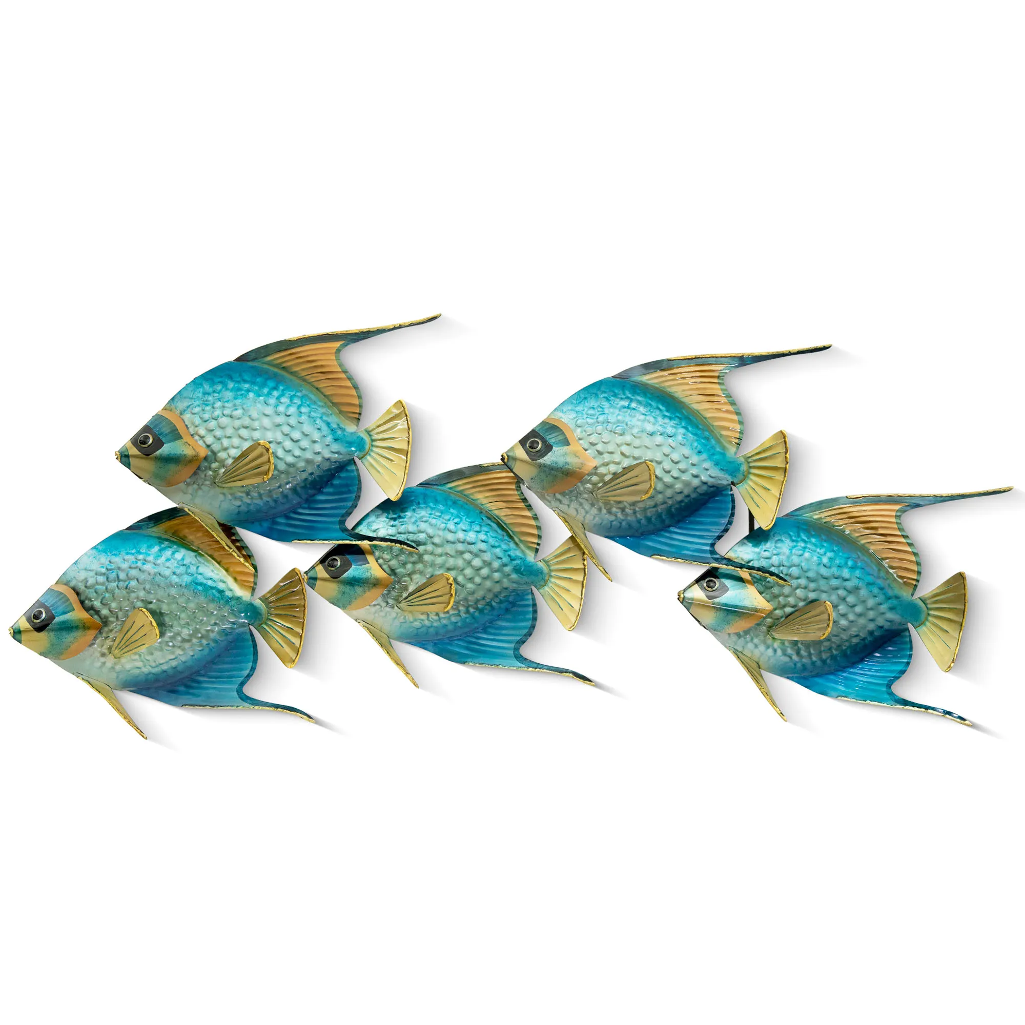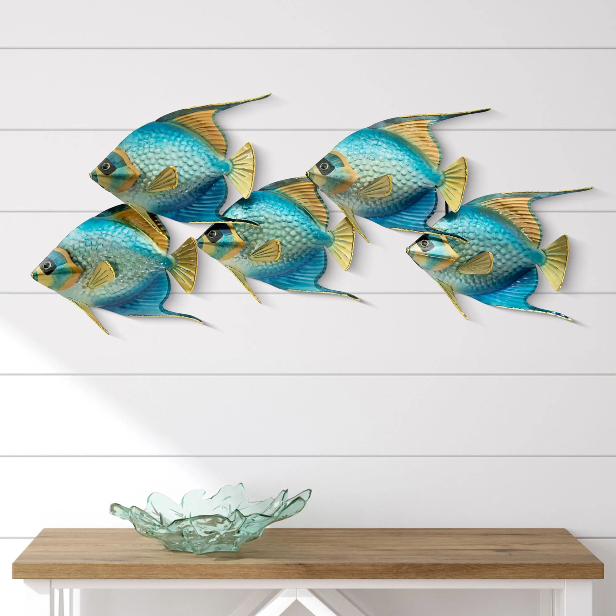 Queen Angelfish School II Indoor Outdoor Aqua Blue Fish Metal Wall Art Sculpture