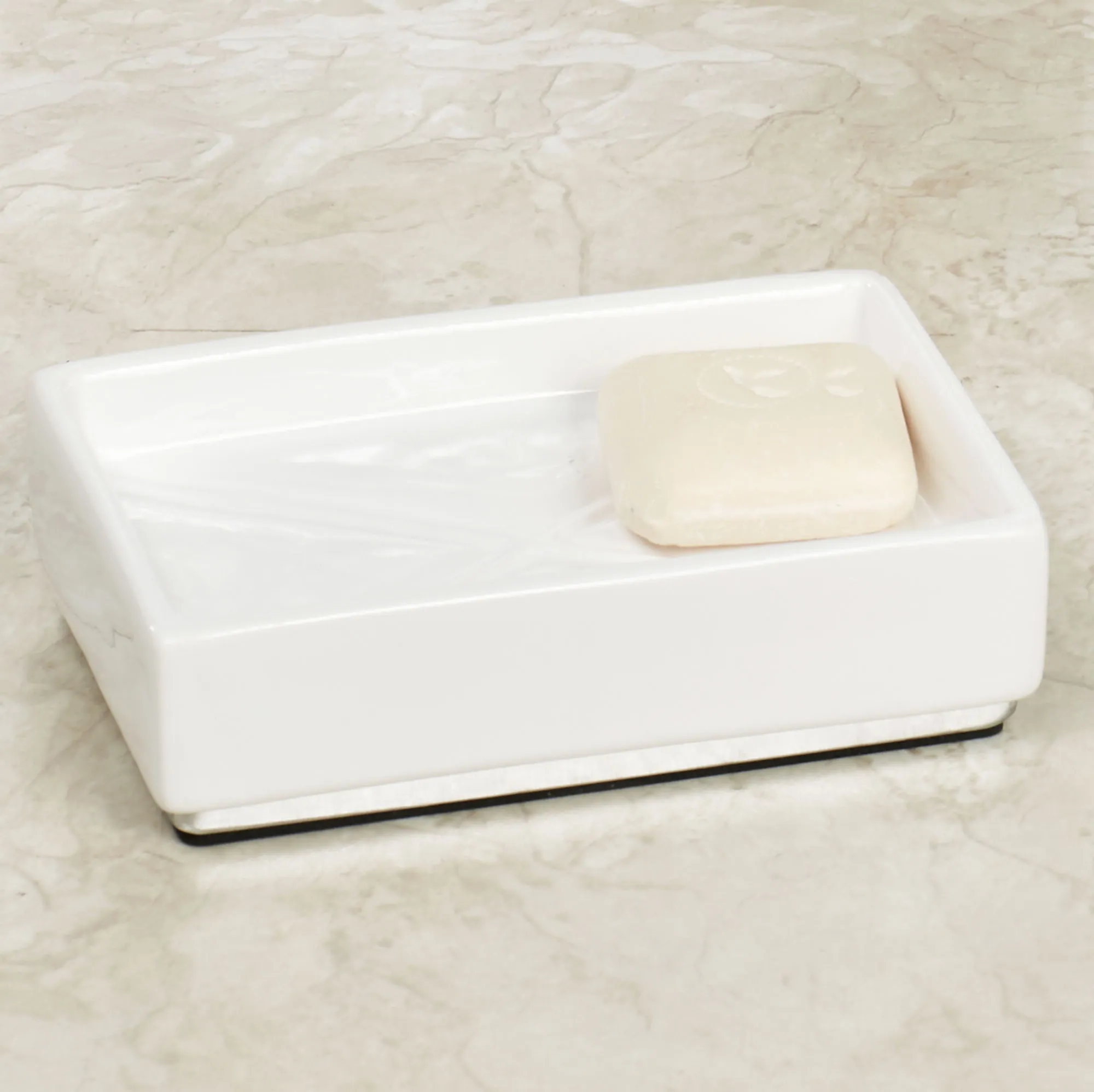 The Quilt Bath Accessories exude a chic simplicity. Accented with chrome metal trim, each crisp white ceramic accent features embossed crossing designs that add depth and dimension. The Brush Holder can be used to hold your toothbrushes or makeup brushes. Specify Soap Dish, 5.5"Wx4"Dx1.5"H; or Brush Holder, 4.5"Wx2"Dx4.5"H.