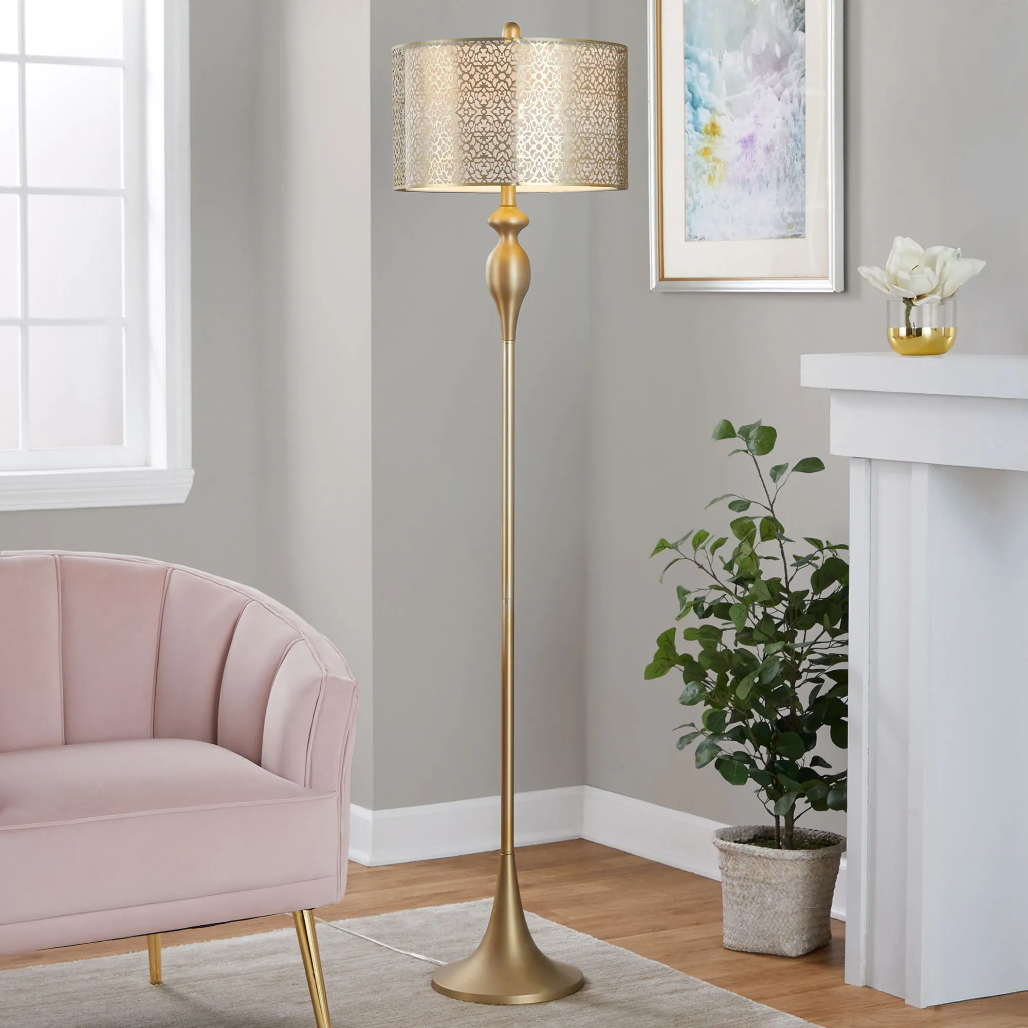Rachael Gold Metal Floor Lamp with Laser Cut Shade