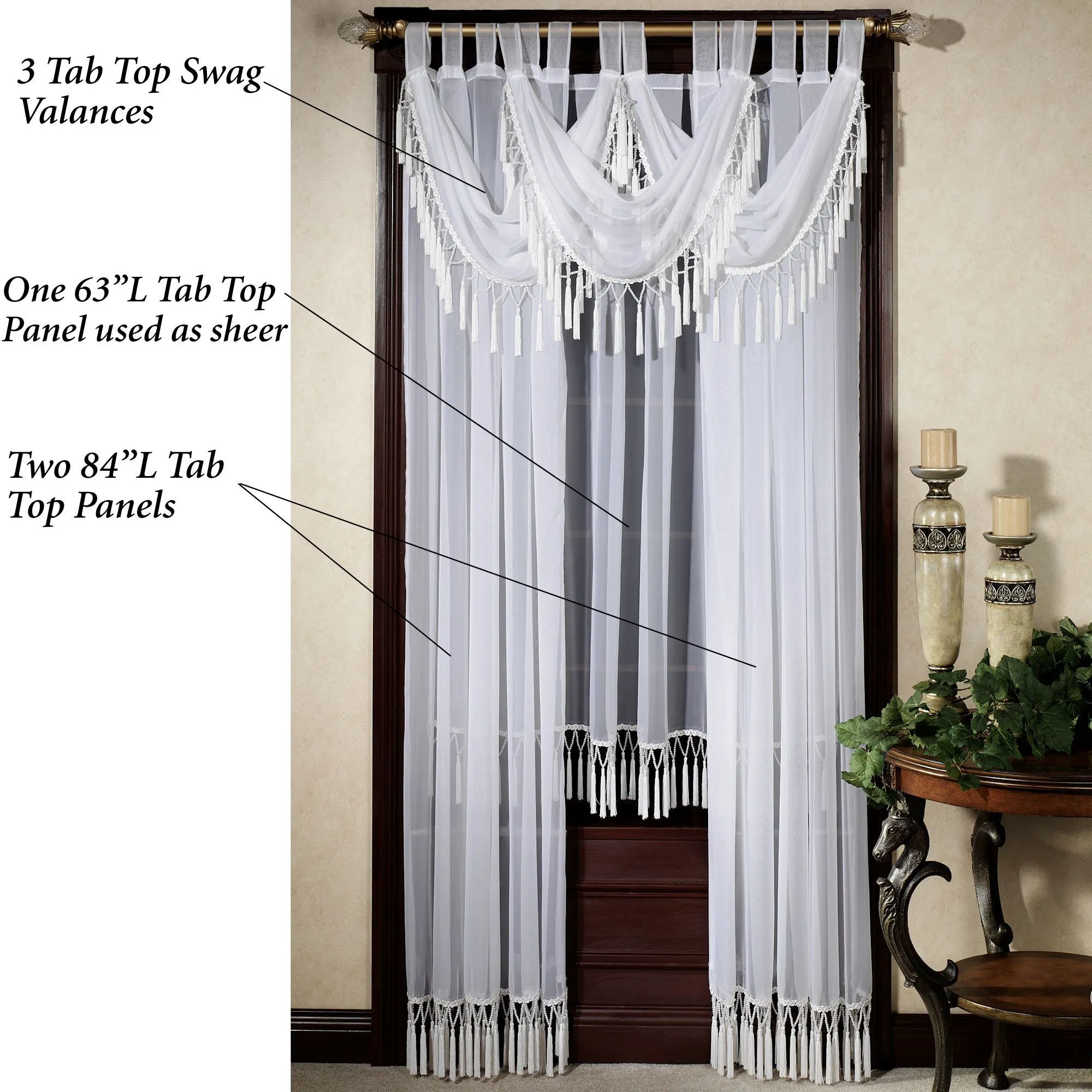 • Shown: 2-84" Panels, 1-63" Panel (as shade), & 3 Swag Valances