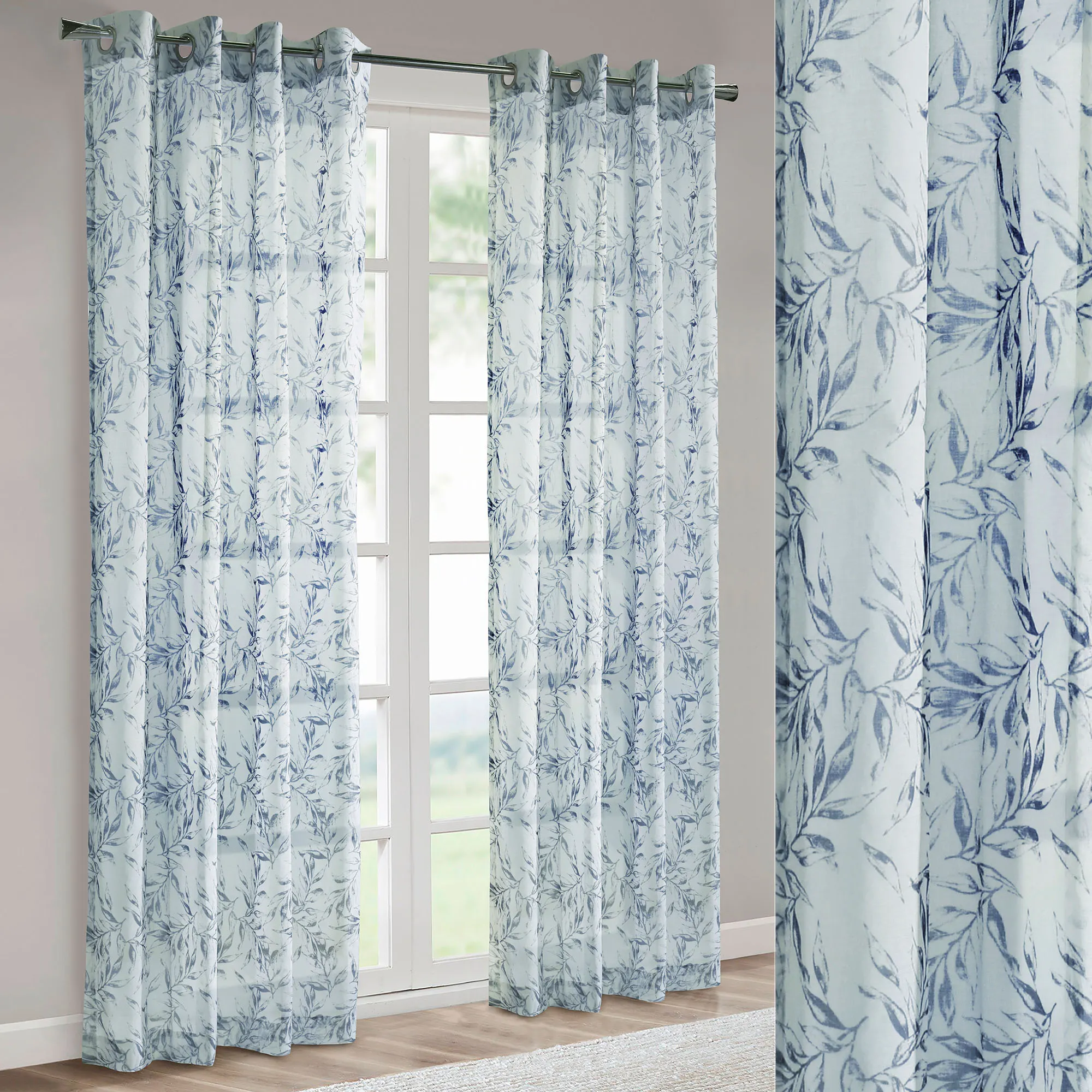 Ramey Botanical Leaf Semi Sheer Grommet Curtain Panel