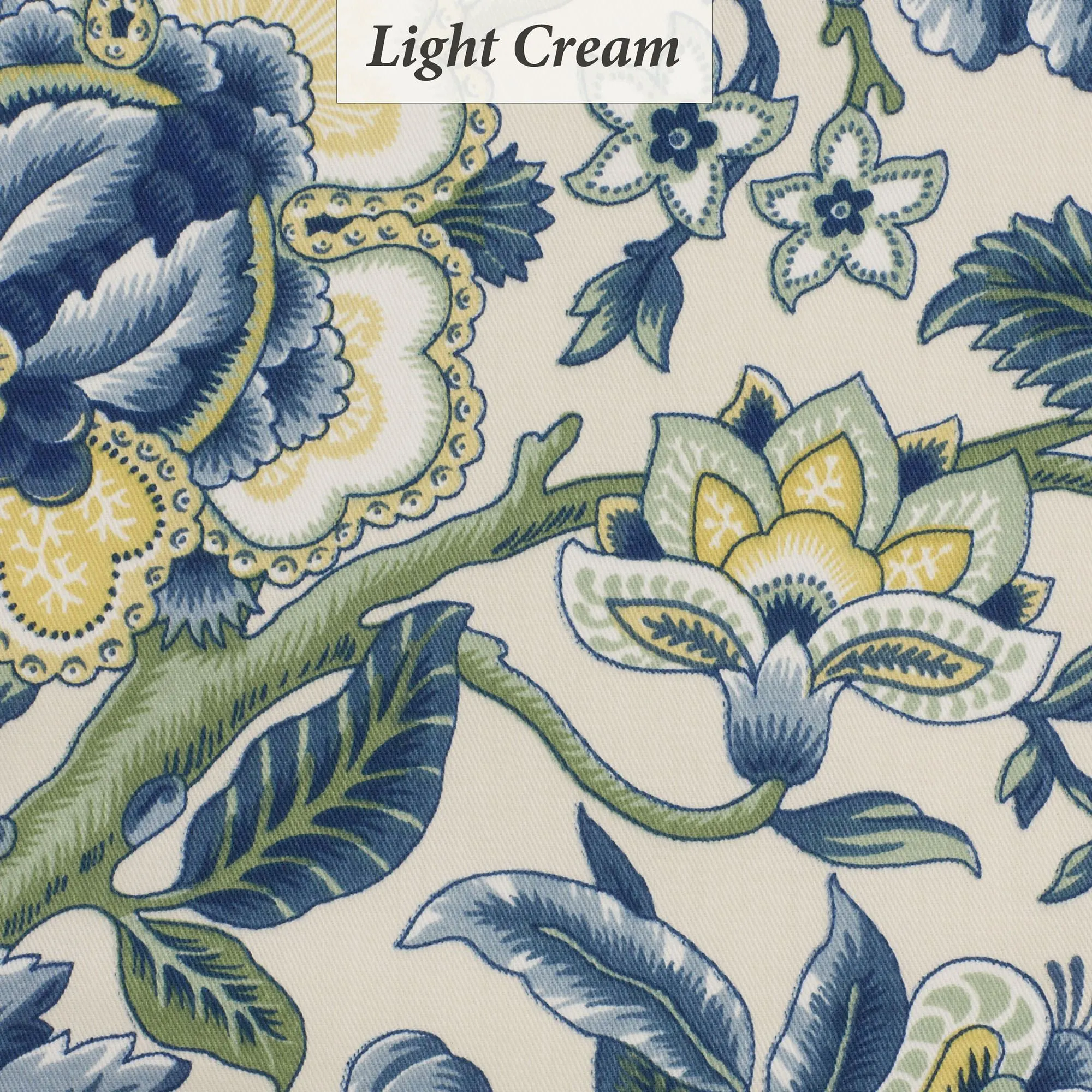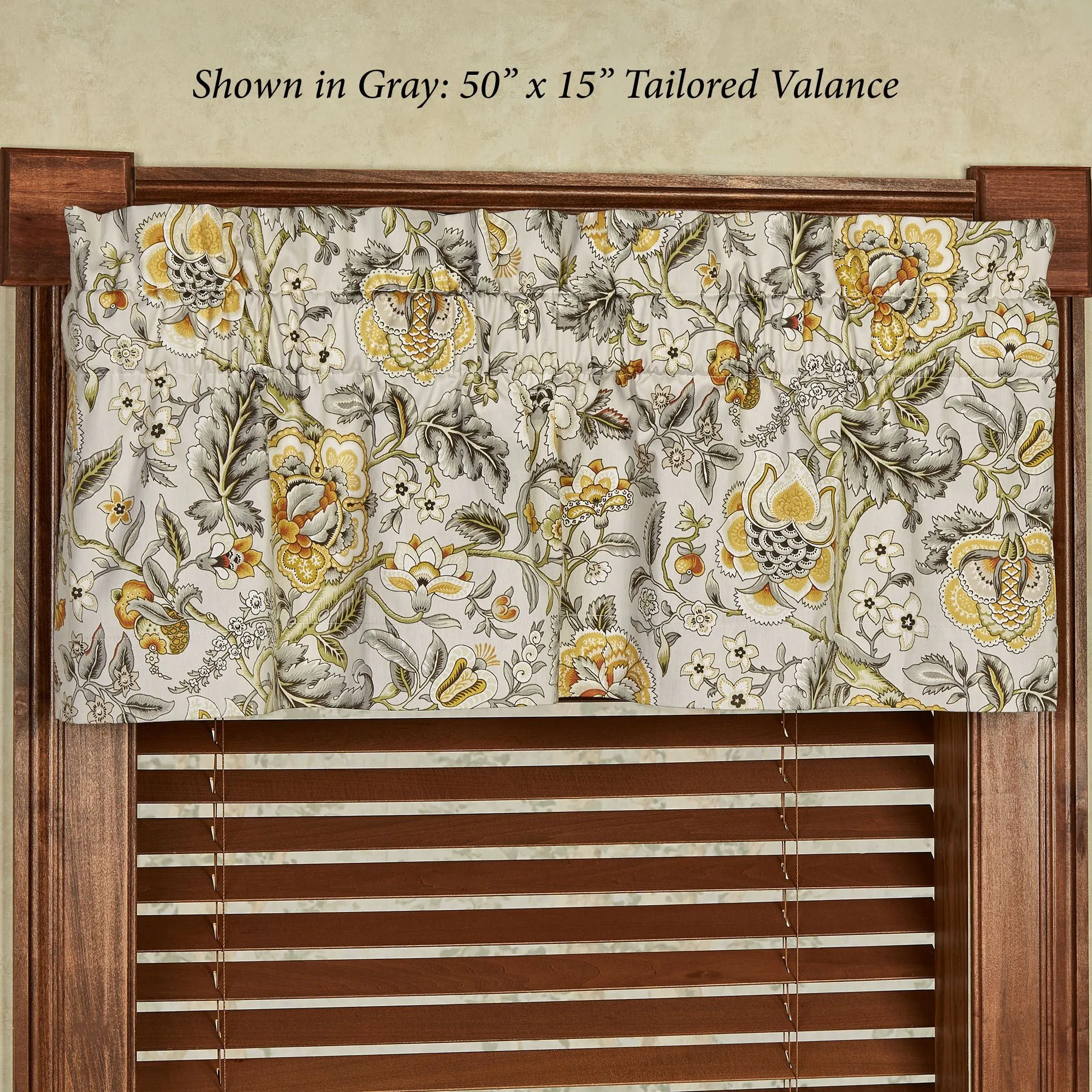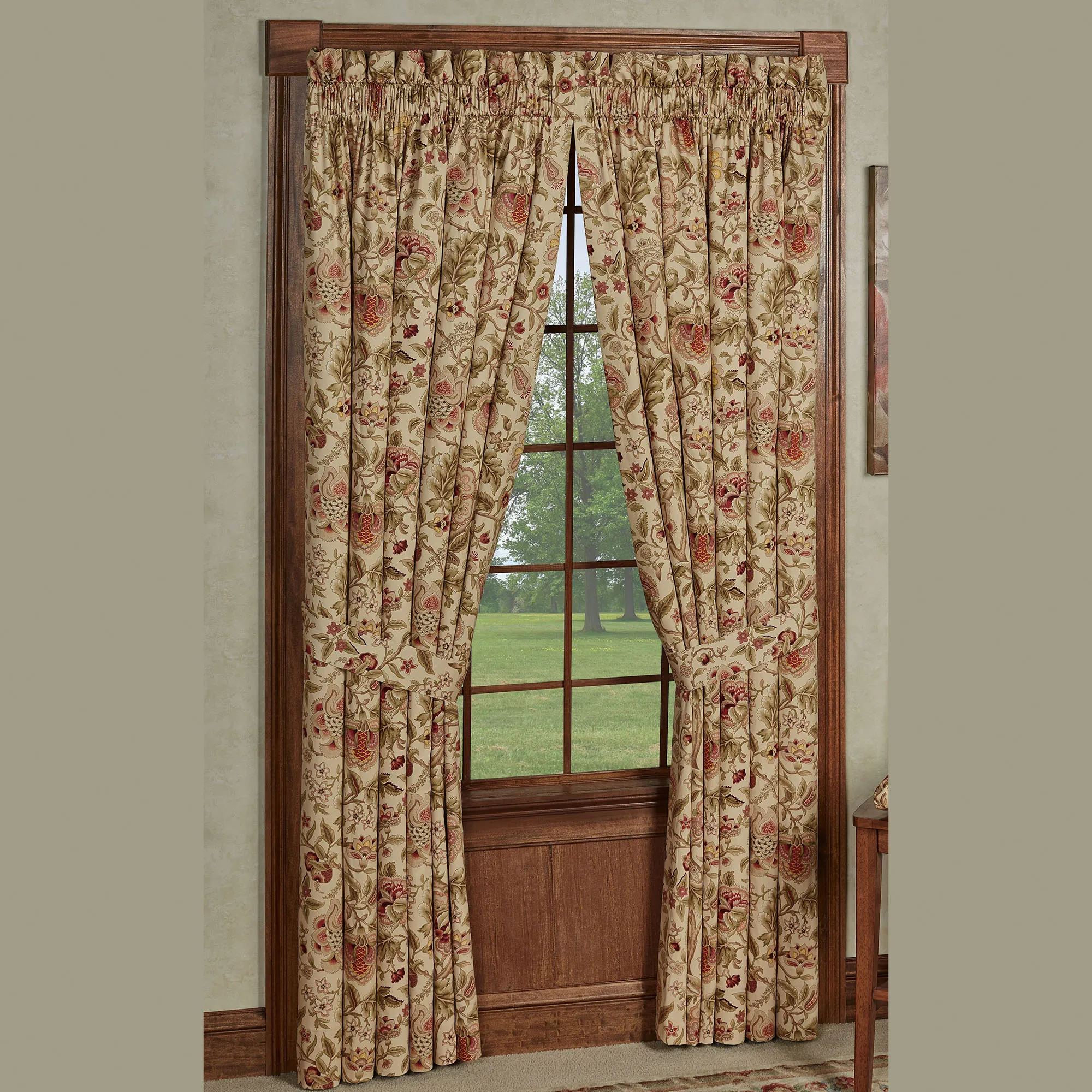 Enhance the look of your home with the pretty Jacobean floral pattern on the Regency Window Treatment by Waverly. The lined, cotton window treatment has printed designs and a 3" rod pocket. Straw has brown and burgundy on straw. Dark Blue has dark red, blue, green, and brown on dark blue. Gray has gray, moss, rust, golden yellow, cream, and beige on parchment. Light Cream has dark blue, tarragon, yellow, and white on light cream. Specify Curtain Pair, Tailored Valance, Duchess Swag Valance Pair, or Duchess Filler Valance; click on the Details and Sizes tabs for more information. Dry clean. The curtain pair width is the total width of two panels together.