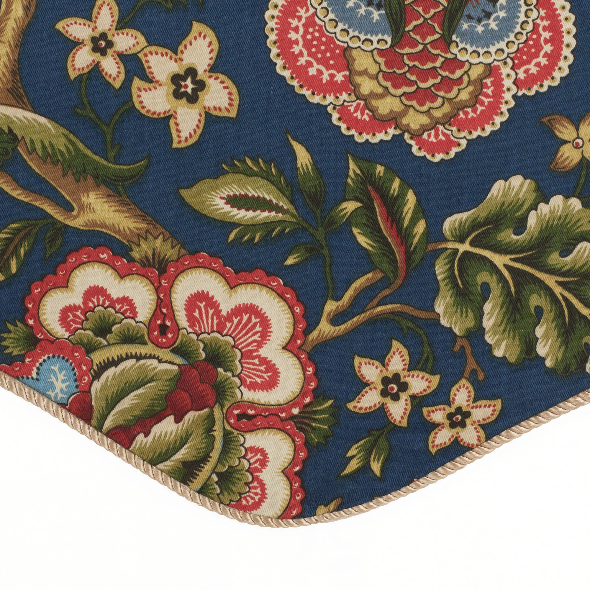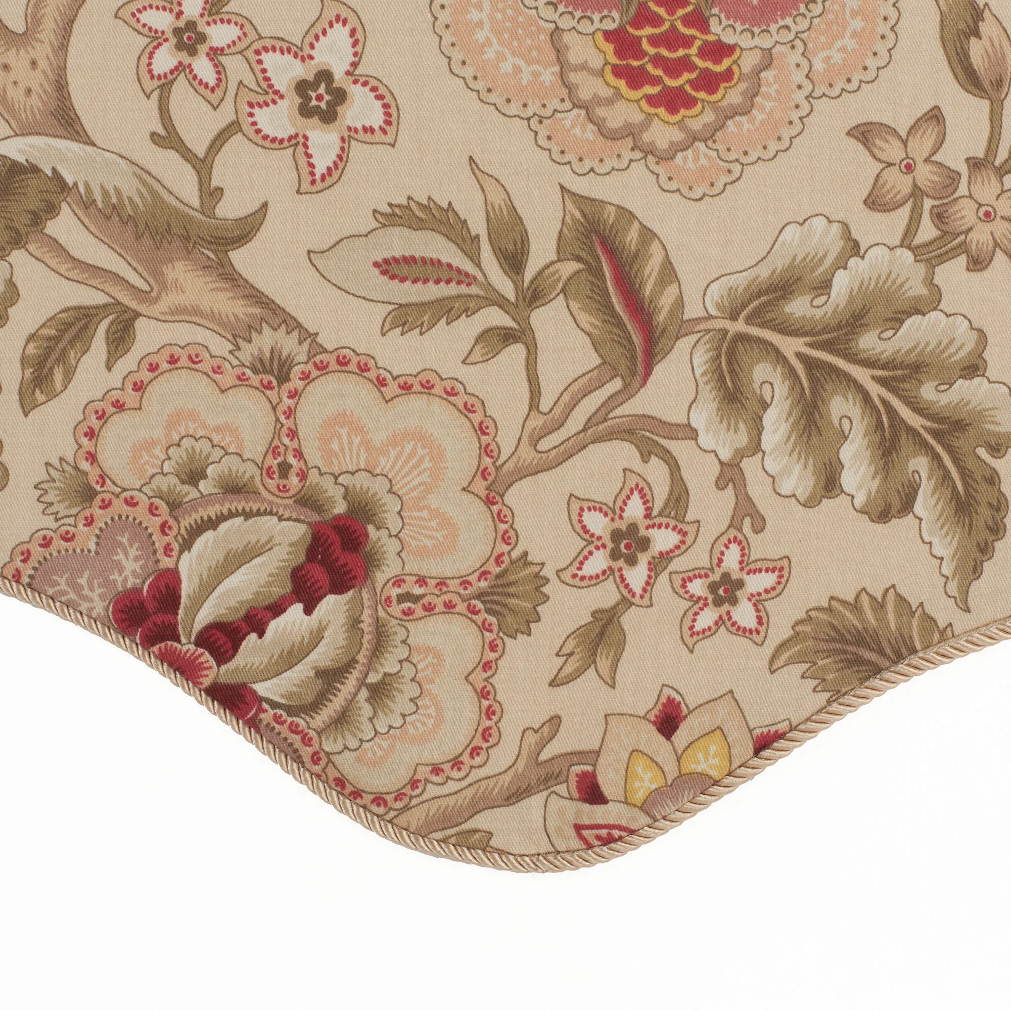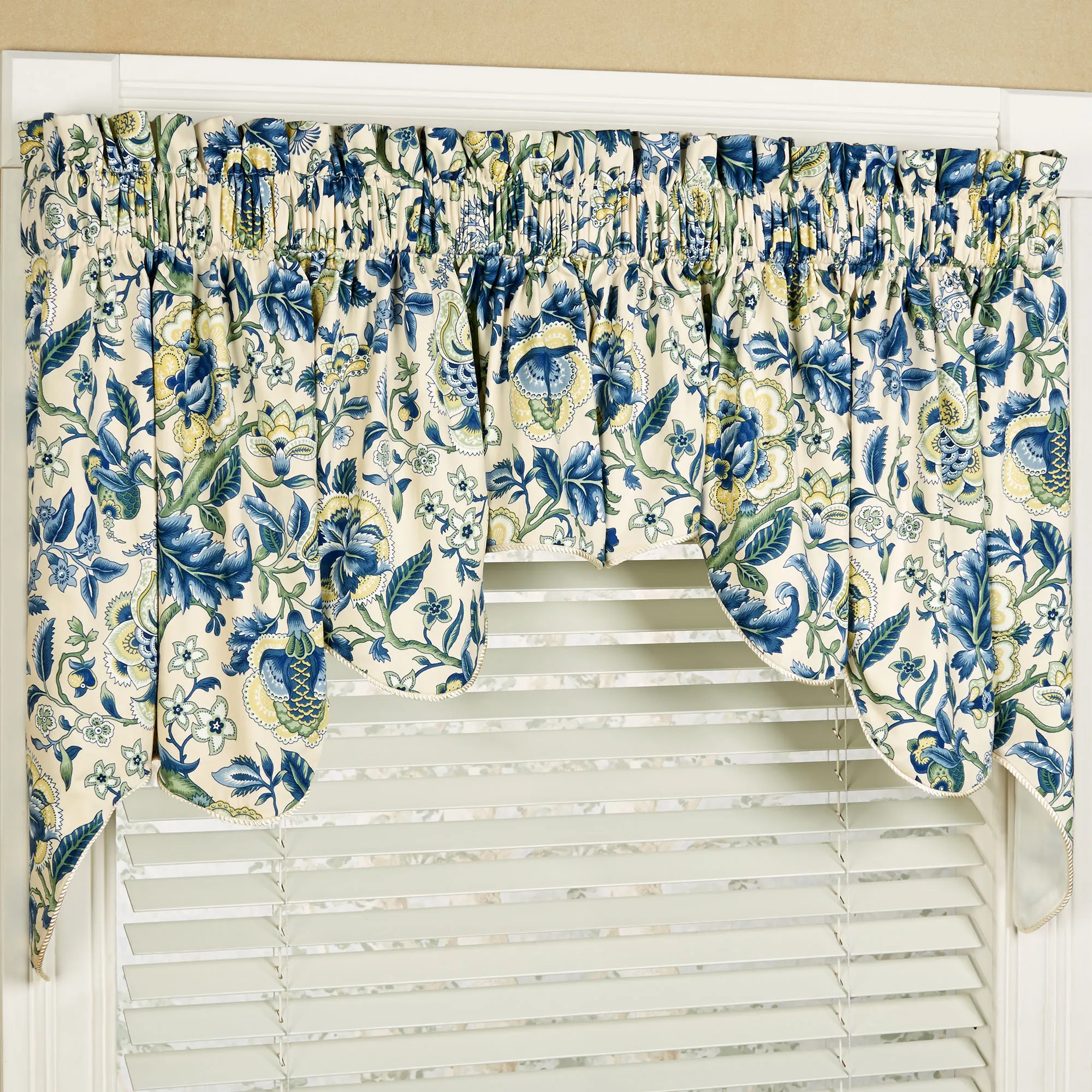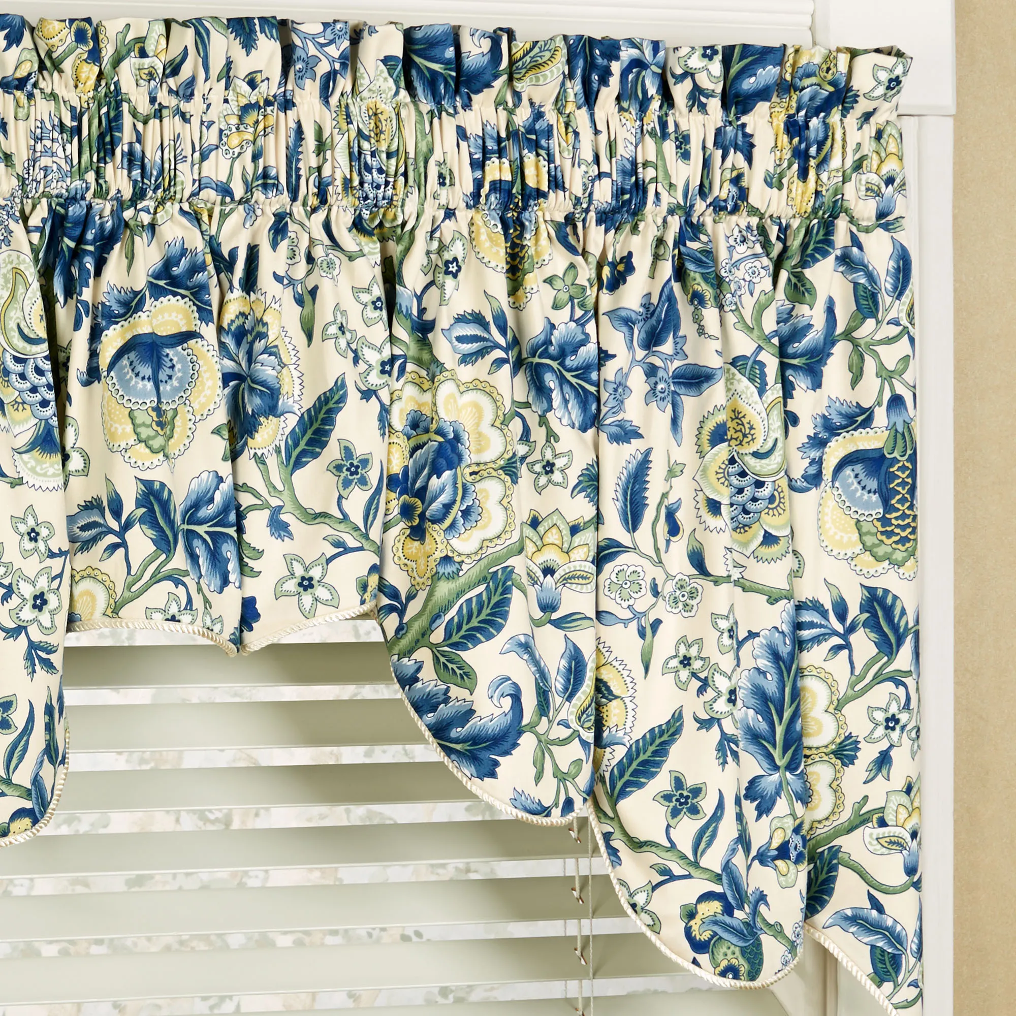 Enhance your window with the pretty Jacobean floral pattern on the Regency Duchess Swag Valance Pair by Waverly. The lined, cotton window valances feature printed designs and scalloped edges with twist cording. Light Cream has dark blue, tarragon, yellow, and white on light cream. Dark Blue has dark red, blue, green, and brown on dark blue. Gray has gray, moss, rust, golden yellow, cream, and beige on parchment. Straw has brown and burgundy on straw. Duchess Swag Valance Pair is 100"Wx30"L. Duchess Filler Valance, 50"Wx15"L, can be added for wider windows. Rod pocket is 3". Dry clean.