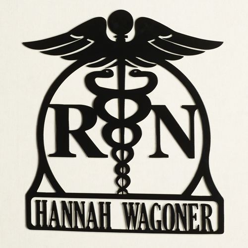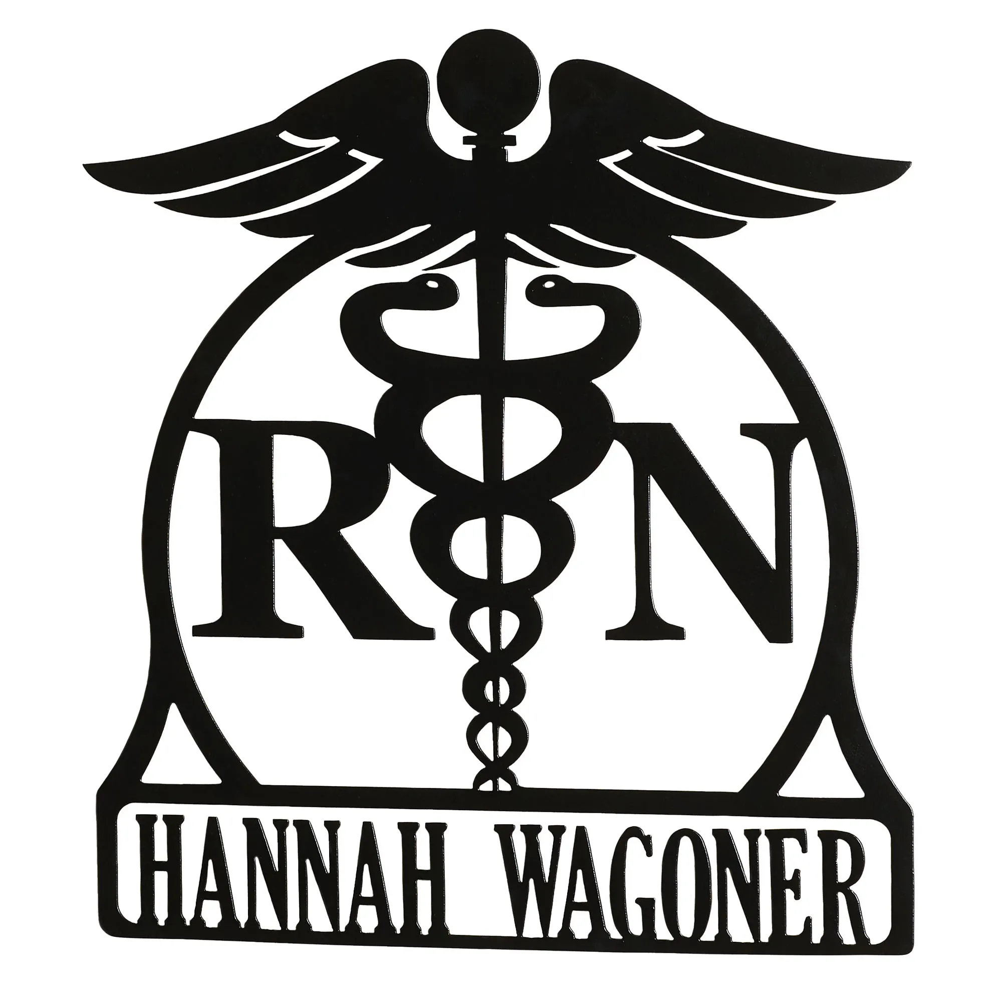 RN Registered Nurse Healthcare Caduceus Symbol Professional Personalized Metal Wall Art Sign by JasonW Studios