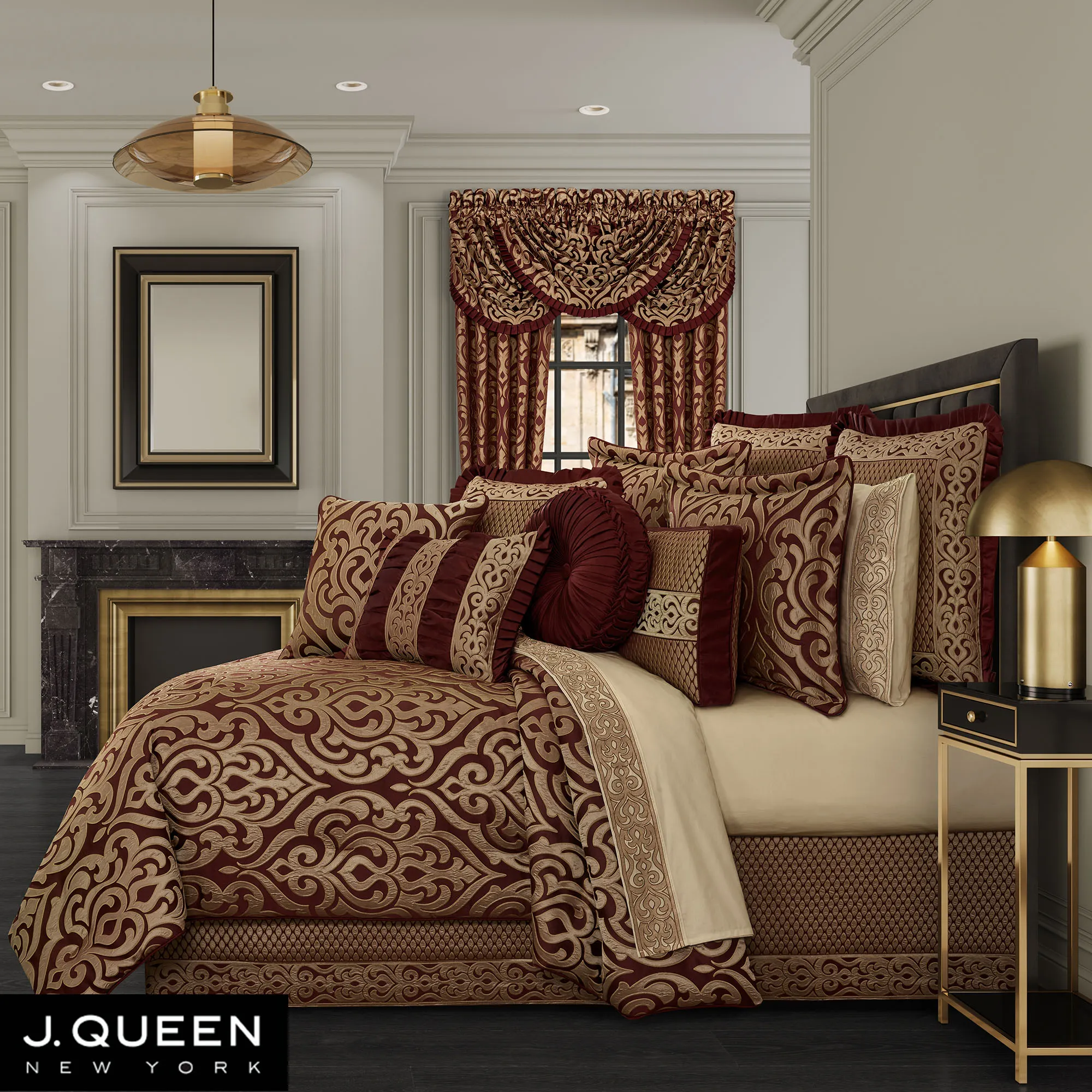 Renzo Crimson and Gold Damask Comforter Set Luxury Bedding by J Queen New York