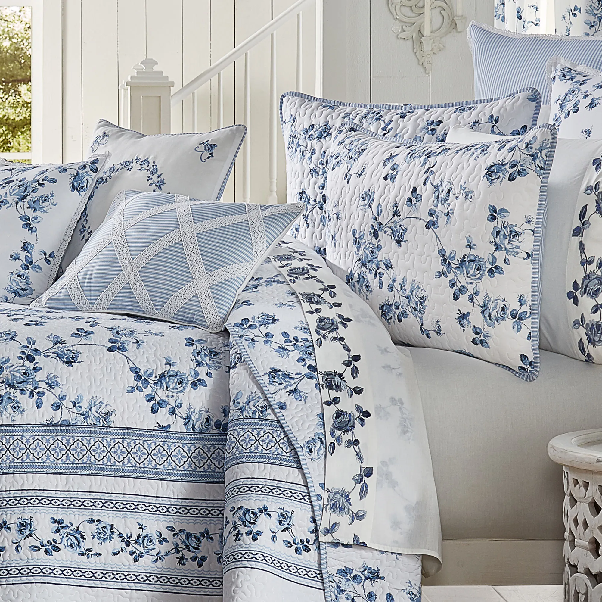 Rialto Reversible French Blue Rose Floral Quilt Set Bedding by Royal Court