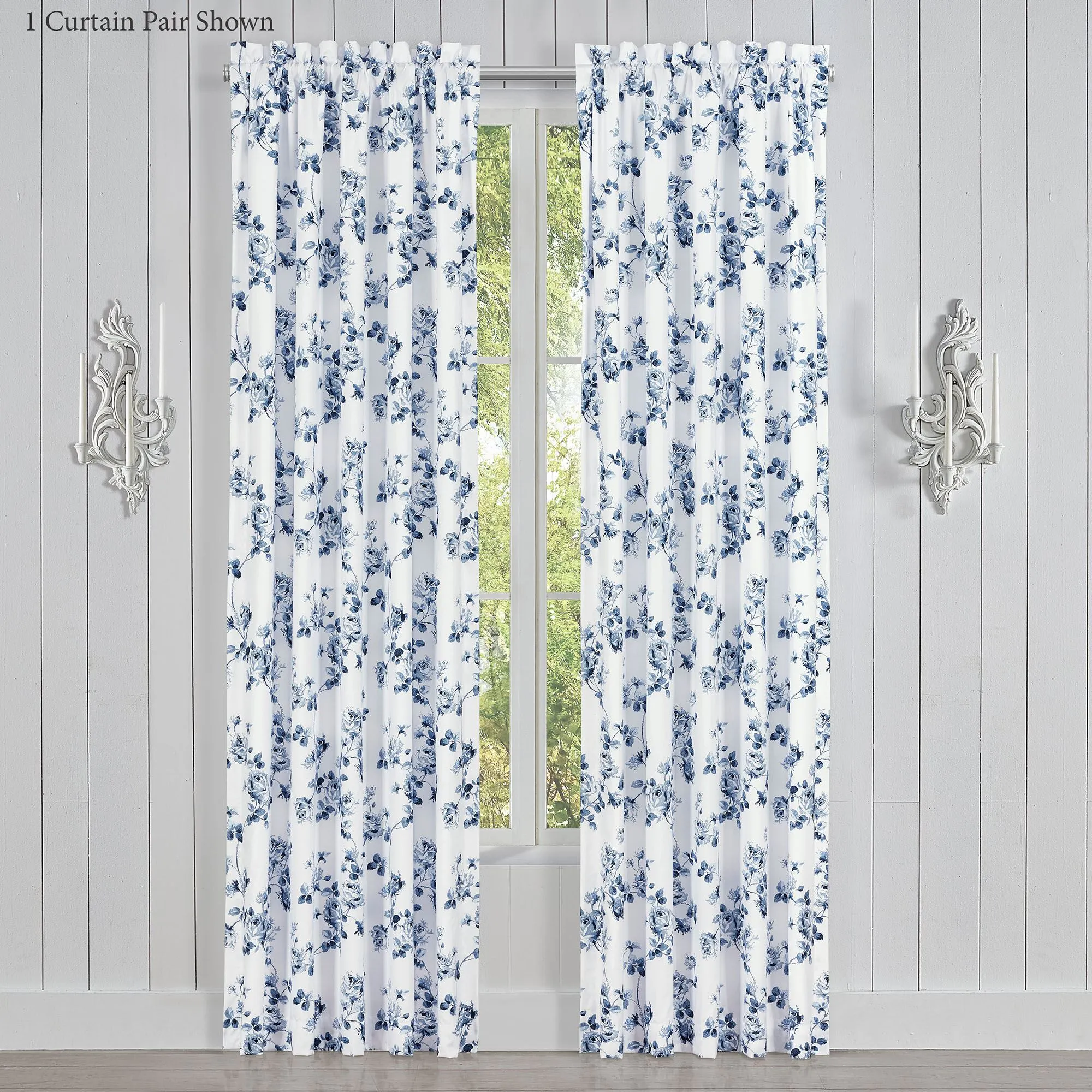 Lined Window Treatment has vining roses, tailored edges, and 3" rod pockets. Curtain Pair includes tiebacks. Valance is pieced with a ticking stripe edge with lace accenting.