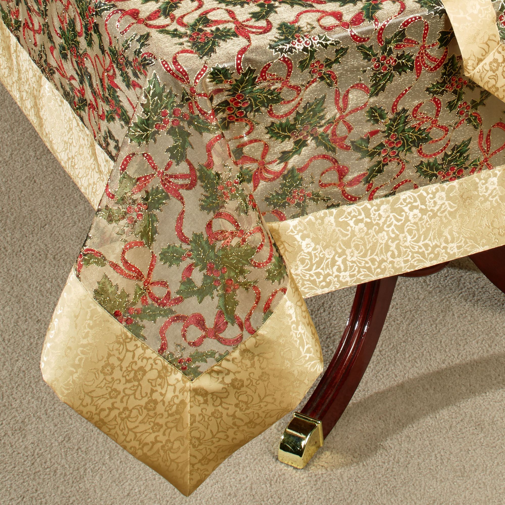 Ribbon and Holly Glittery Sheer Gold Holiday Table Linens