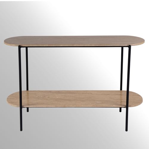 The Rinaldi Console Table is travertine and metal.