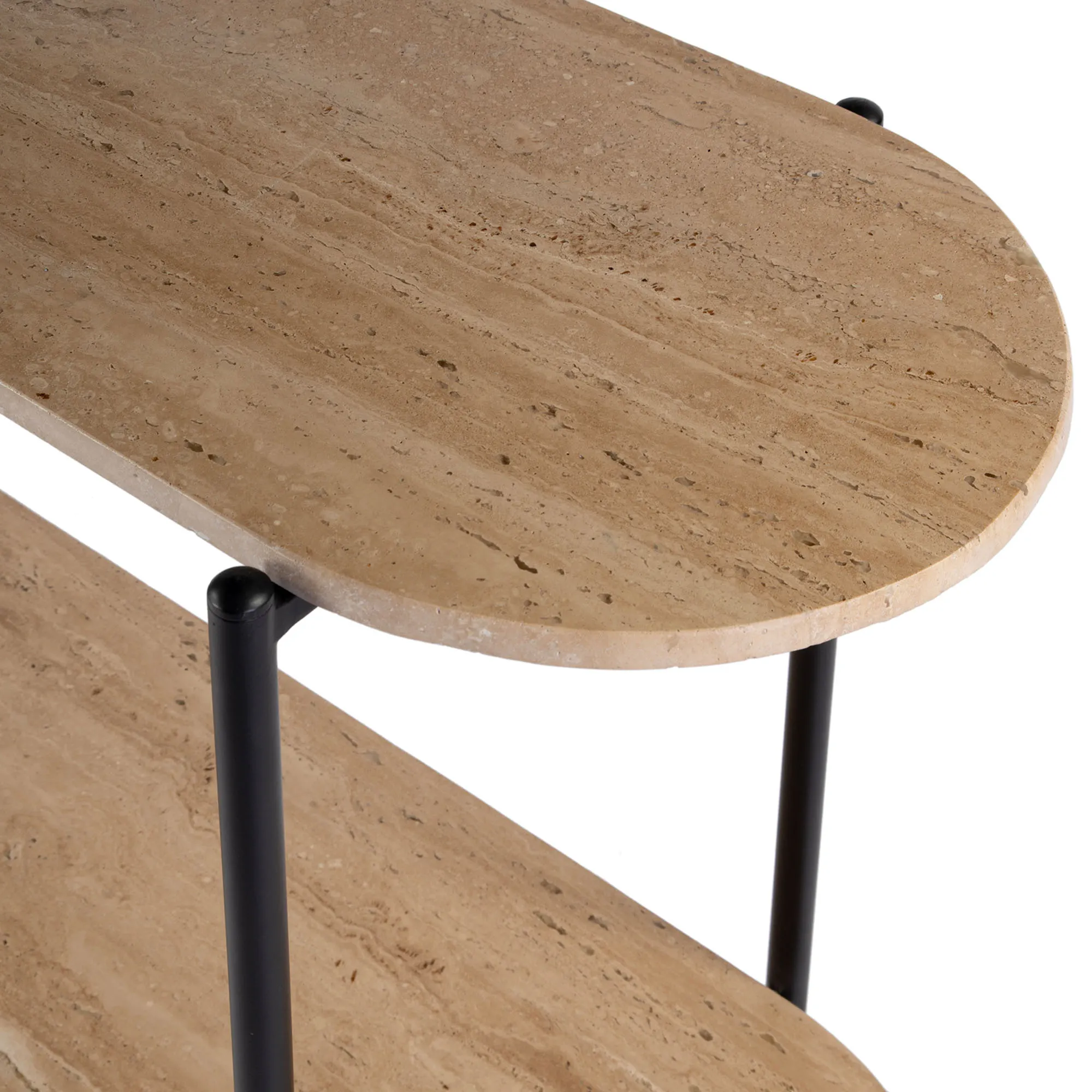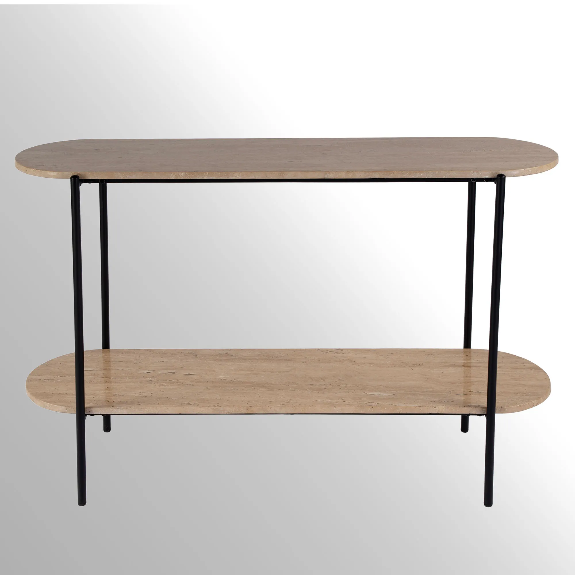 Rinaldi Oblong Console Table with Travertine Marble Shelves