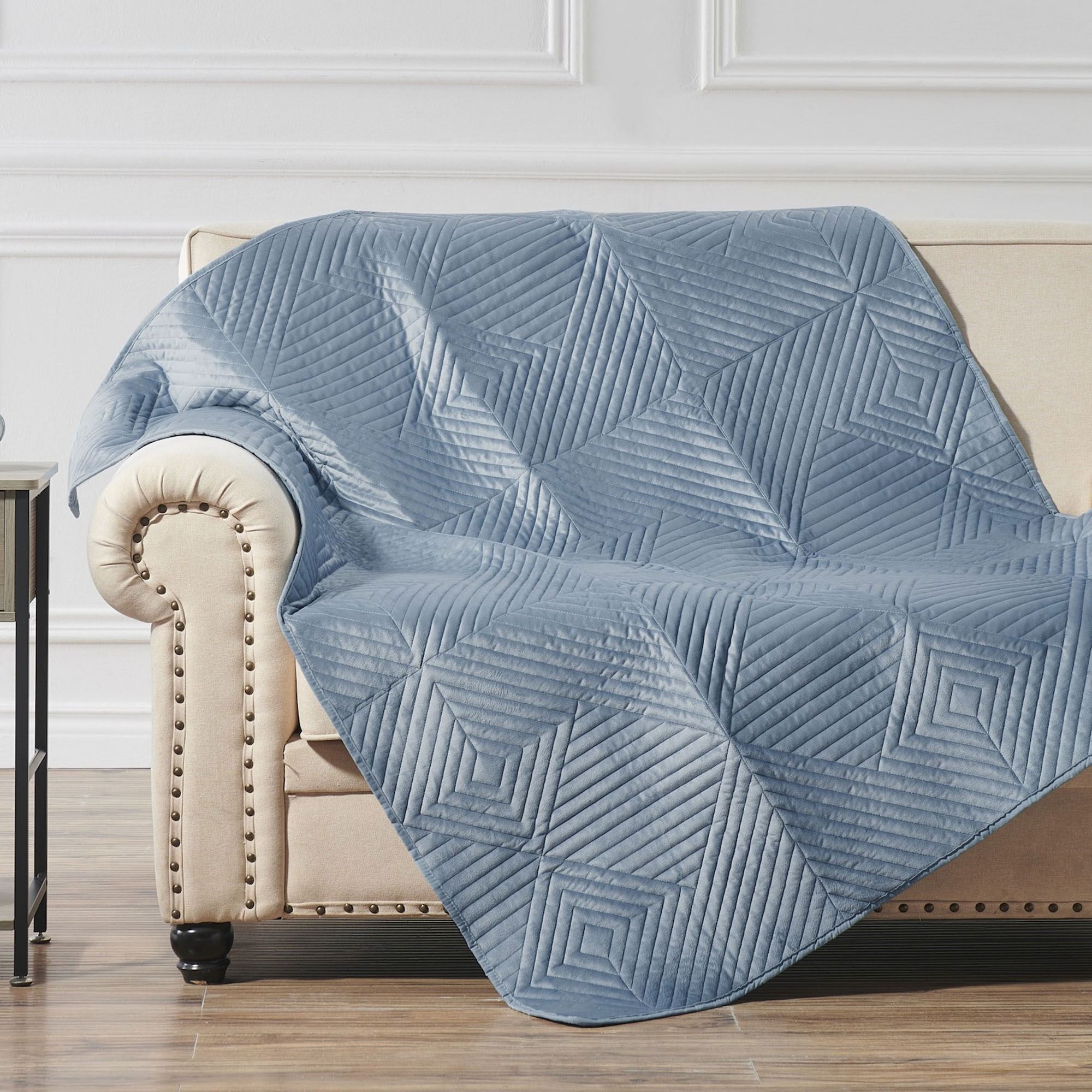 The lush and luxuriously modern Riviera Blue Velvet Throw Blanket by Barefoot Bungalow adds a contemporary vibe to your space. This polyester velvet throw is blue and has diamond-quilted designs. Throw has a polyester velveteen face and bound ends. Solid color backing is quilted polyester microfiber. Fill is polyester. Throw measures 50"x60". Machine washable. Imported.