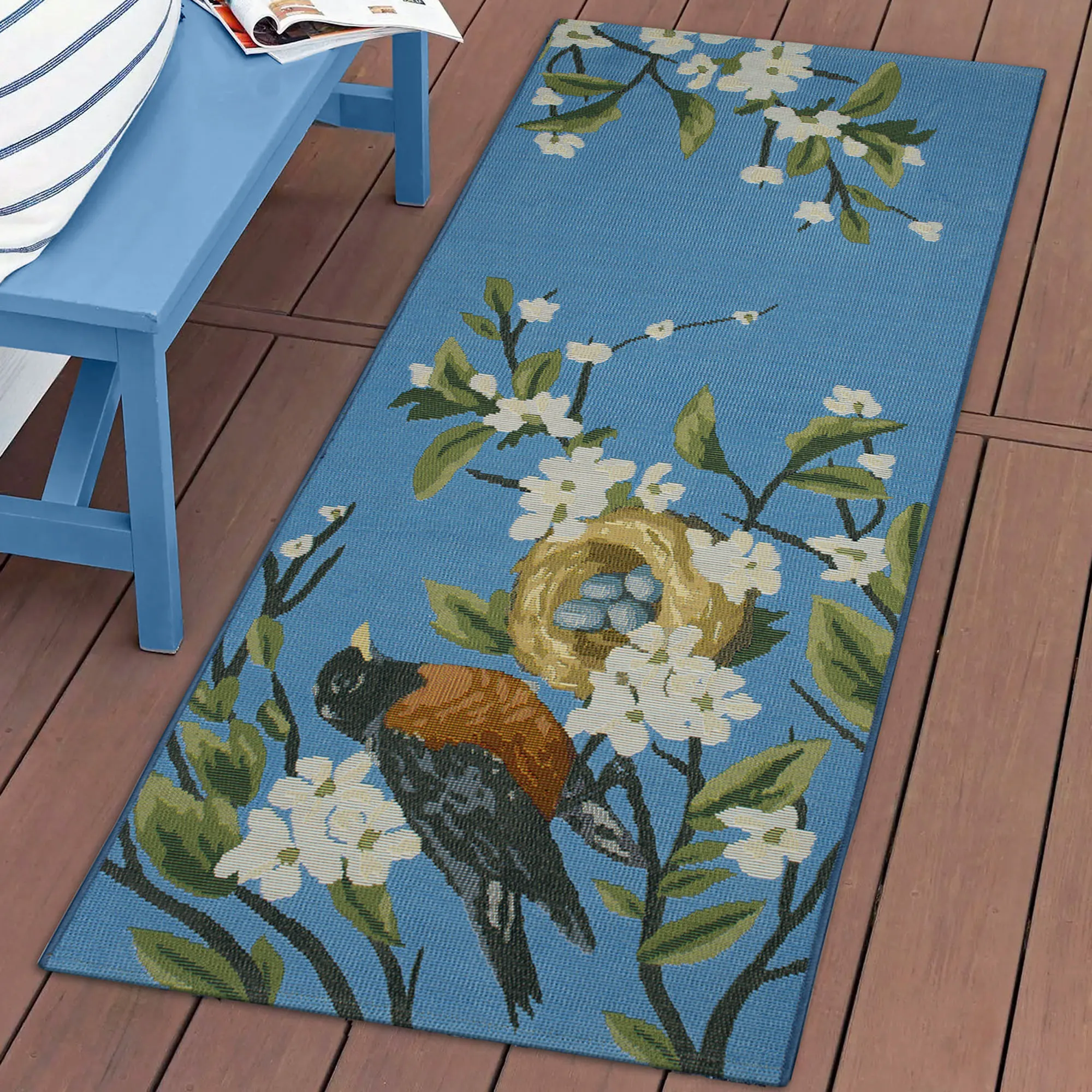 Robins Nest Bird and Floral Indoor Outdoor Mat by Liora Manne