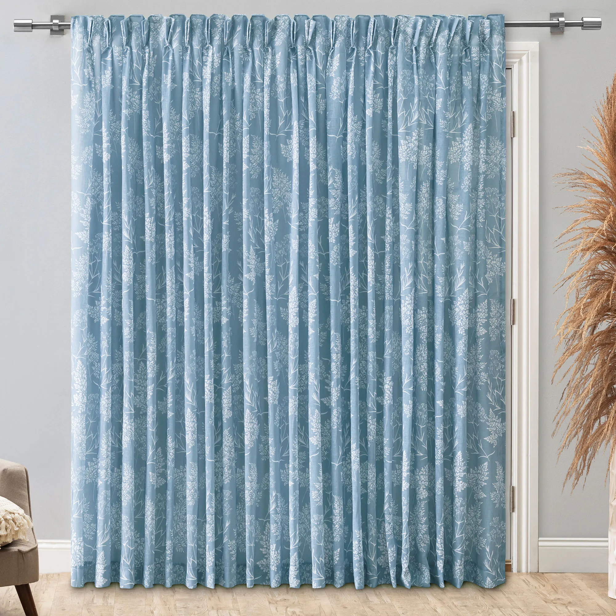 Rolling Meadows Botanical Semi Sheer Pinch Pleat Patio Panel