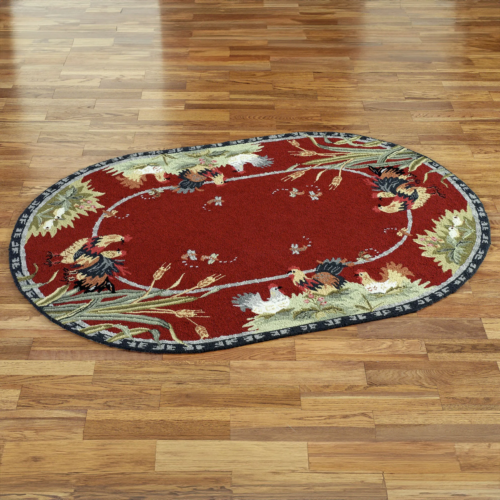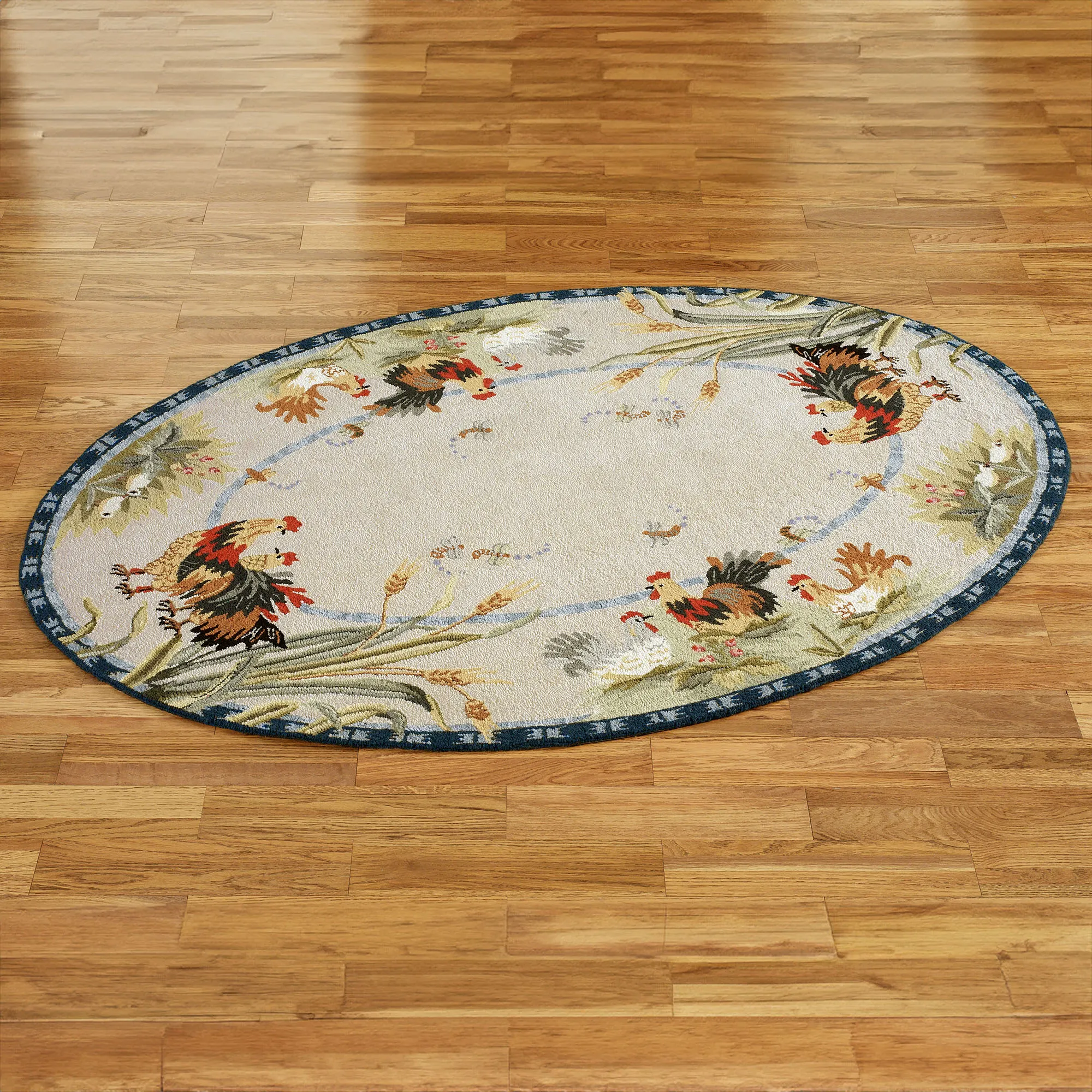 Rooster and Hens Oval Rugs