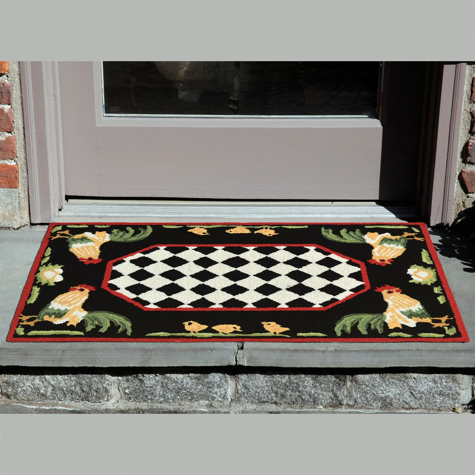Roosters Black Indoor Outdoor Mats by Liora Manne
