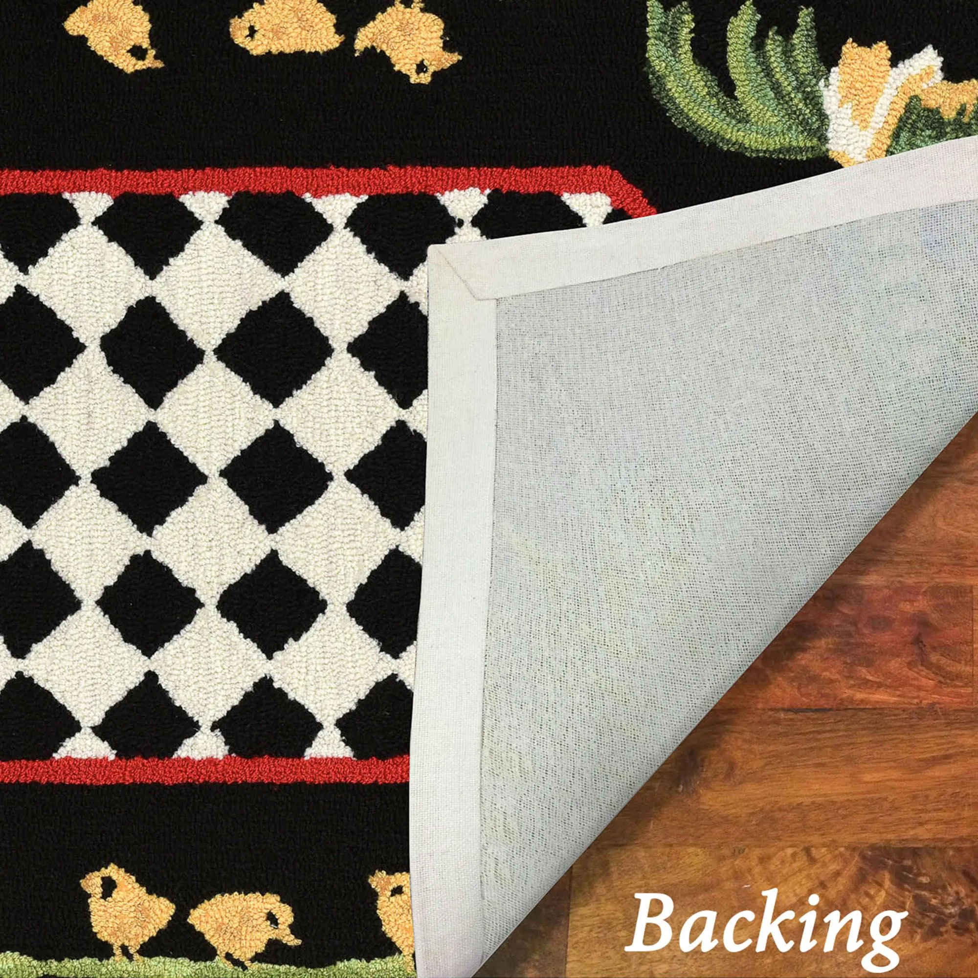 The Roosters Black Rugs and Mats are polyester/acrylic with polyester backing. Imported.