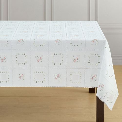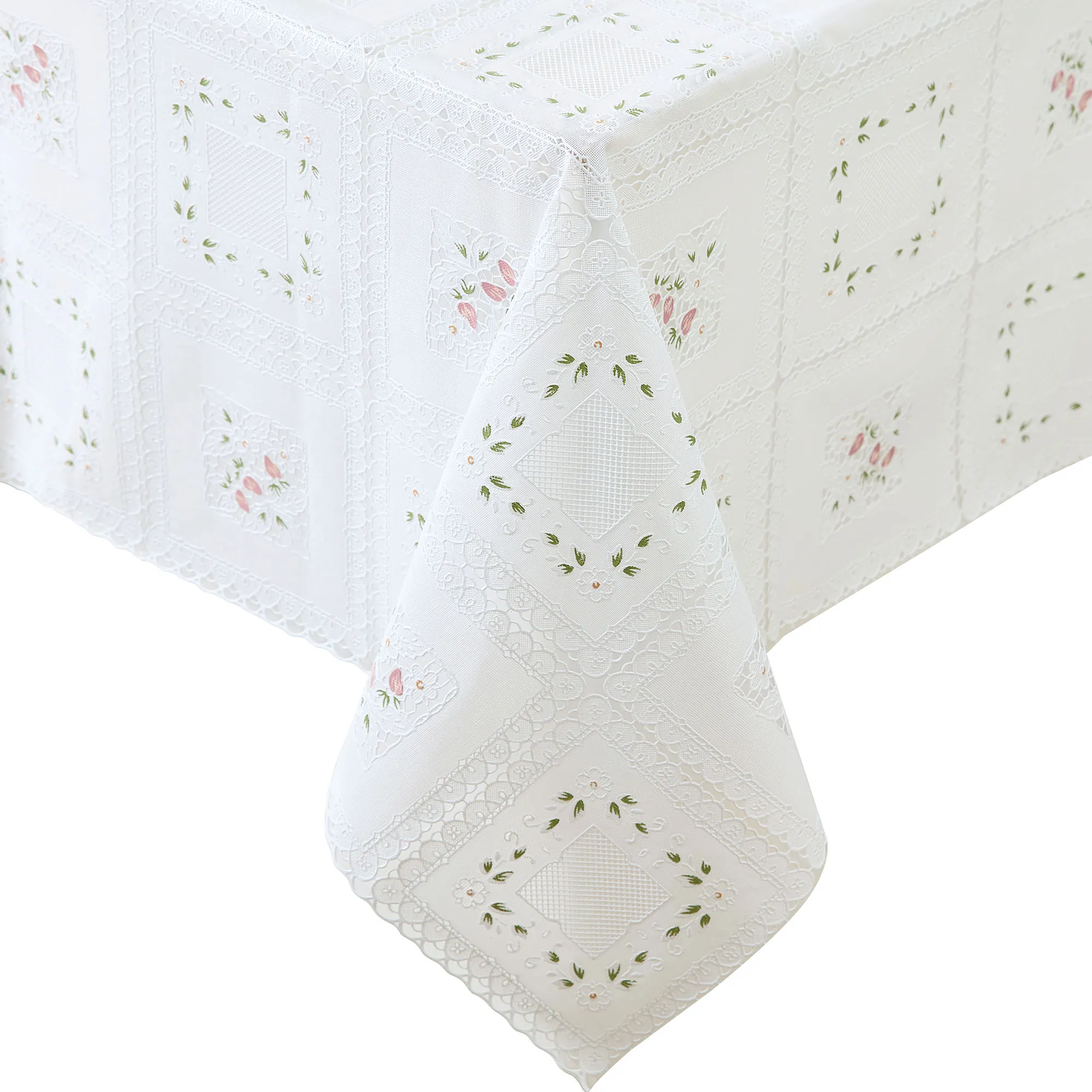 Rosette Lace White Waterproof Vinyl Rectangle Tablecloth