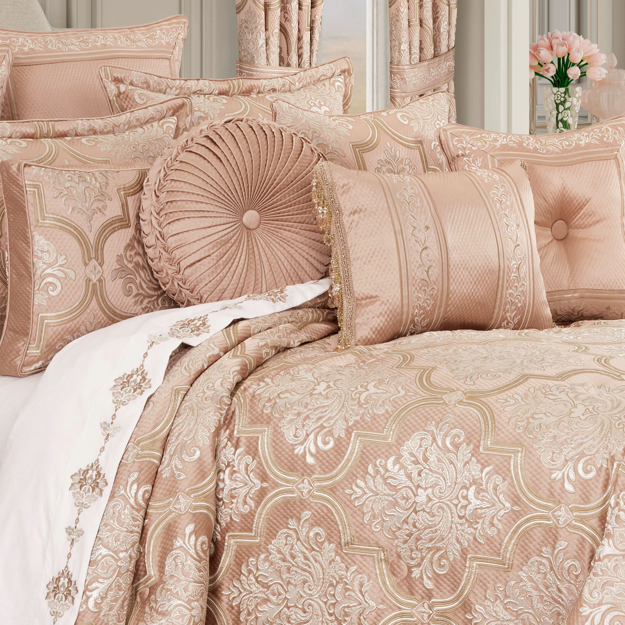 Rosewater Blush Damask Comforter Set Luxury Bedding by J Queen New York