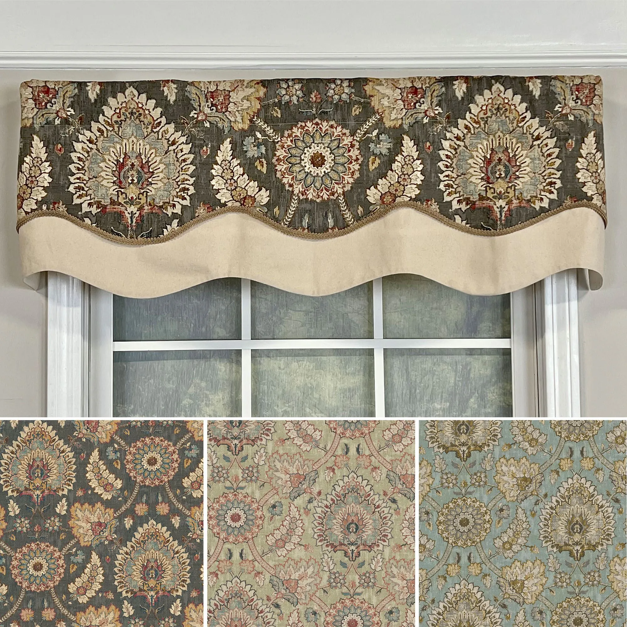 Rothenham Jacobean Medallion Layered Scalloped Window Valance
