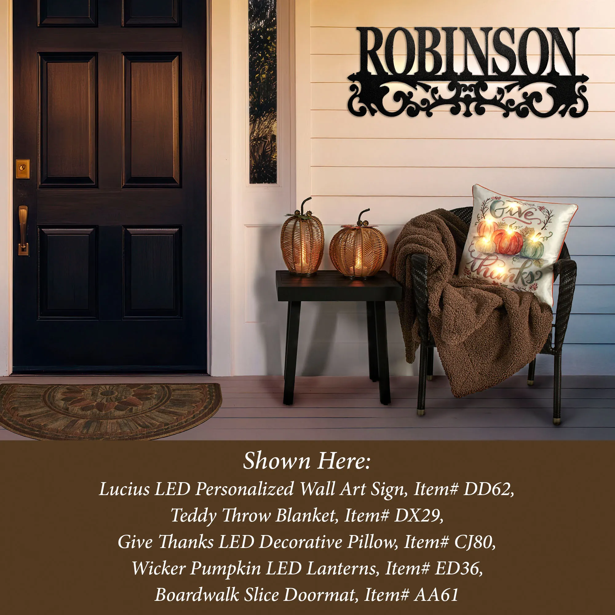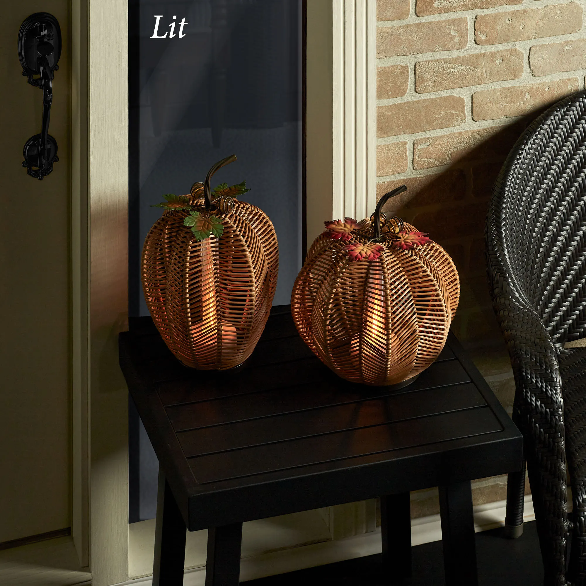 Round Wicker Pumpkin LED Lighted Indoor Outdoor Tabletop Lantern with Batteries