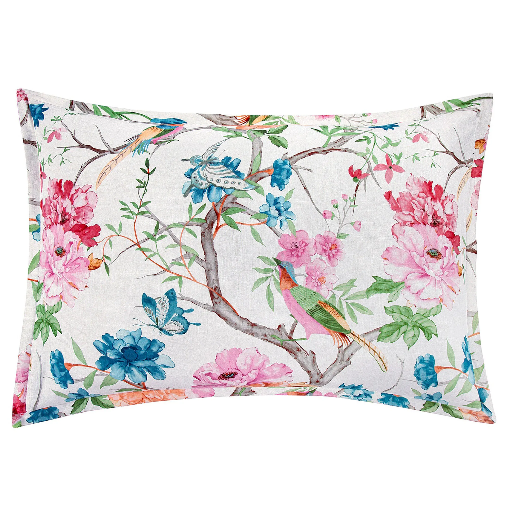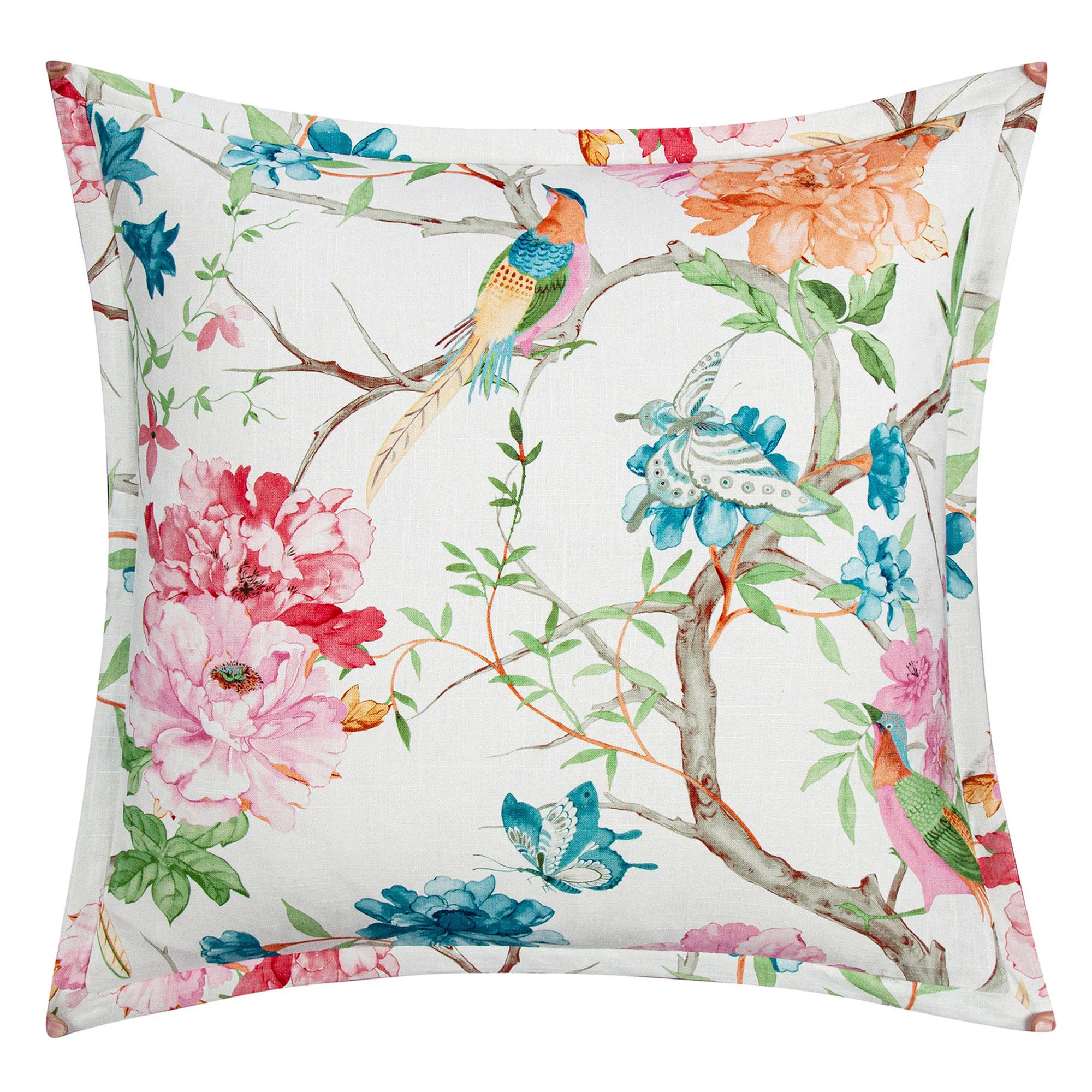 A bold take on James Audubon's celebrated American paintings, the Rowan Bedding exudes a natural vibrancy. With a crisp off-white ground, the viscose/linen-blend ensemble features lush watercolor florals, branches, birds, and butterflies in shades of pink, blue, green, gray, and orange to create a grand, alluring design. Flanged edges finish each element.