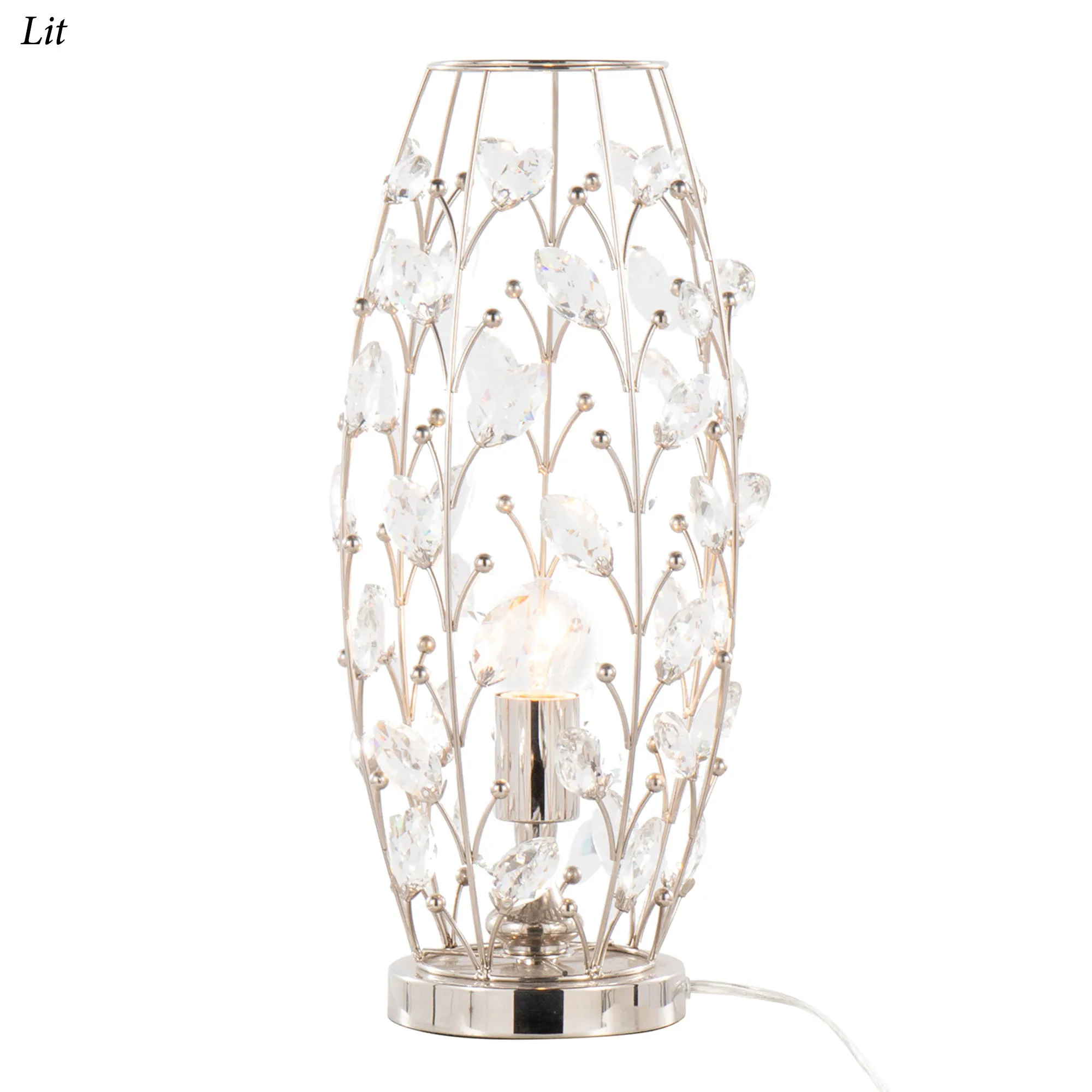 Rowena Polished Nickel Metal Openwork Crystal Leaf Uplight Accent Table Lamp