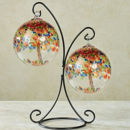 The Royal Garden Ornament from Dale Tiffany evokes a vision of pristine beauty. With a unique, one-of-a-kind appearance, each hand-blown Favrile art glass globe features a clear design embedded with brilliant touches of color. The Royal Garden Ornament has red, blue, green, orange, and yellow. Due to the handcrafted nature of this item, variations may occur. Each ornament looks perfect catching the light indoors or outdoors. We recommend hanging the ornament via your s-hook or fishing line in the clear glass loop. Outdoor seasonal use; do not expose this item to freezing temperatures. Garden ornaments are sold individually. Overall, each measures 6"dia.x7.5"H. The ornament hanger is no longer available.