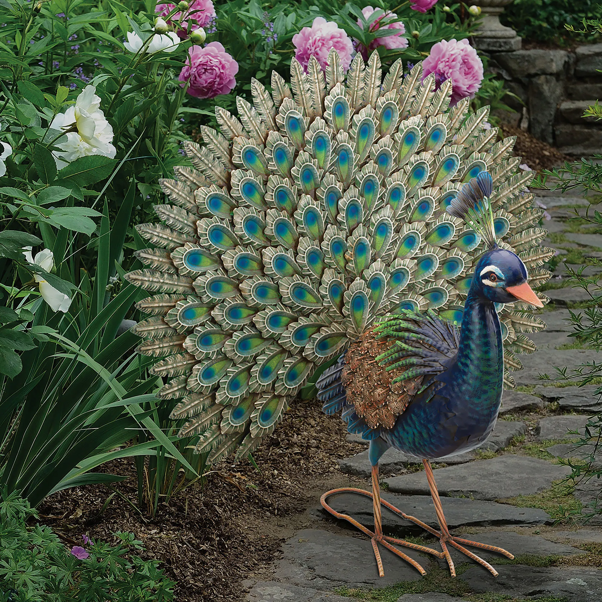 • Peacock sculpture is 25"H