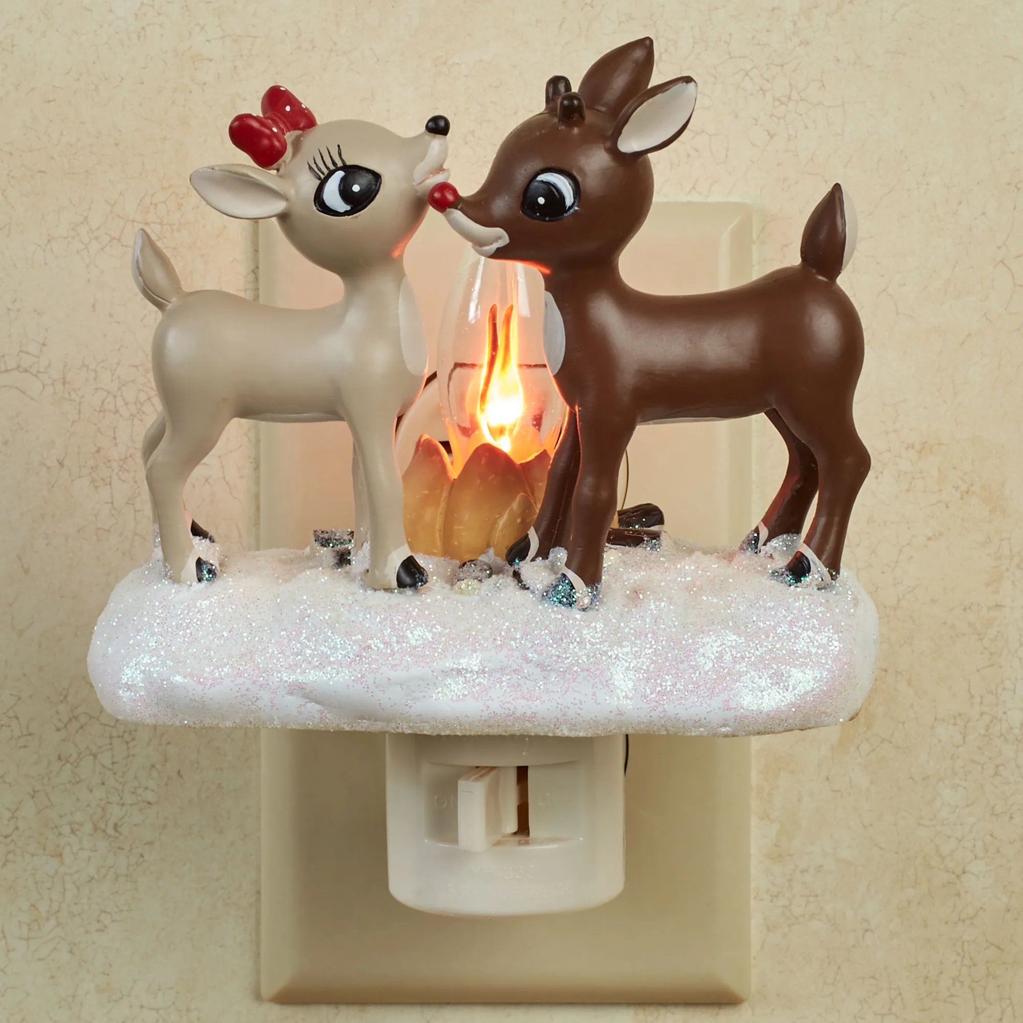 Rudolph and Clarice Reindeer Flicker Flame Campfire Christmas Nightlight by Roman Lights
