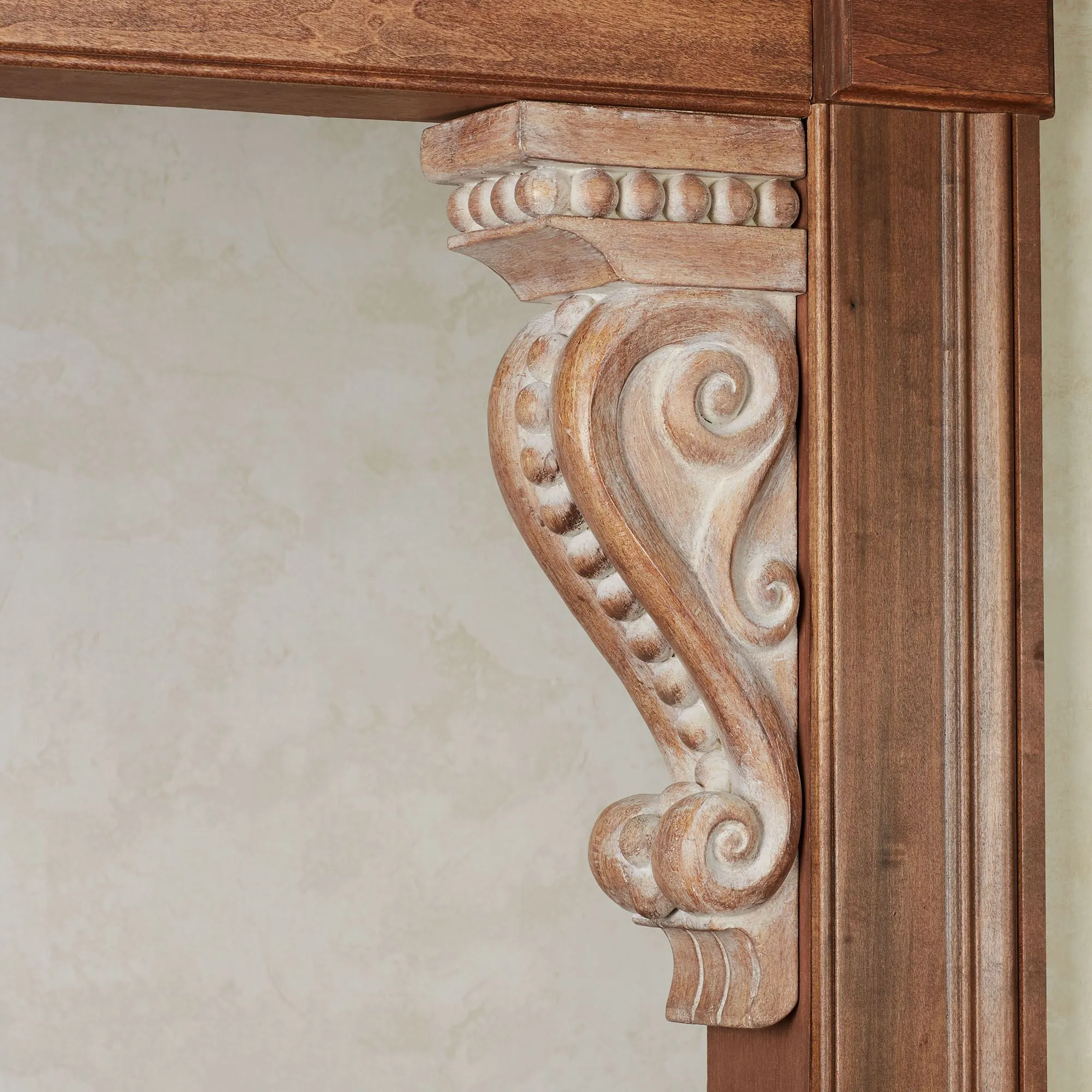 Exquisitely crafted, the Rustic Beaded Corbel Door Bracket Pair emerges as a quintessential element for any space desiring a touch of traditional charm and antique flair. With bead accents and scrolls, the resin brackets boast a tawny and brown finish, enhanced by beige wash distressing to offer a sophisticated aesthetic. Perfect for embellishing doorways or adding an ornamental touch to walls, the versatile design allows for both vertical and horizontal display to create a splendid addition to living areas, offices, or a variety of spaces. The elaborate detailing and acanthus motif blend seamlessly into any setting, transforming your room into a showcase of elegance and historical beauty.