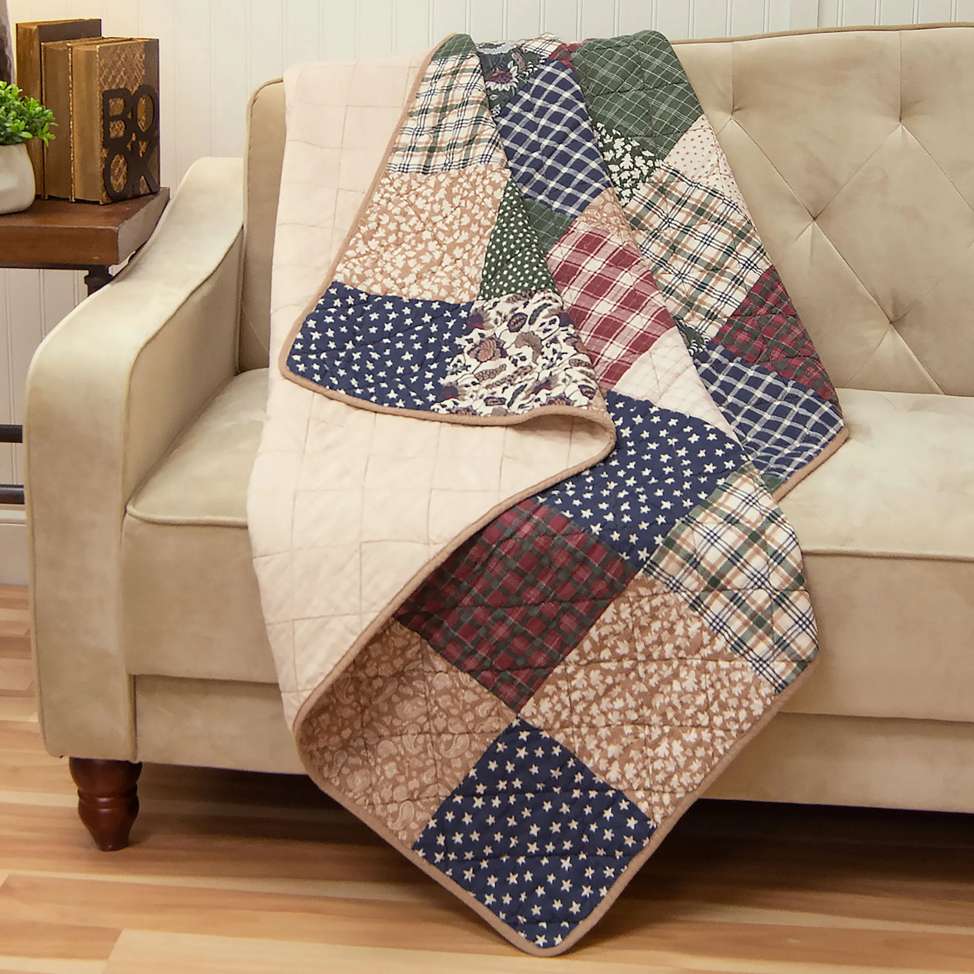 Rustic Paisley, plaid, leaves, florals, and stars style this Donna Sharp(R) bedding with an undeniable charm. In a classic patchwork design, the cotton ensemble features patterned blocks in golden tan, ivory, ecru, hunter green, burgundy, and navy shades. Diamond quilting adds a timeless finish to each element.