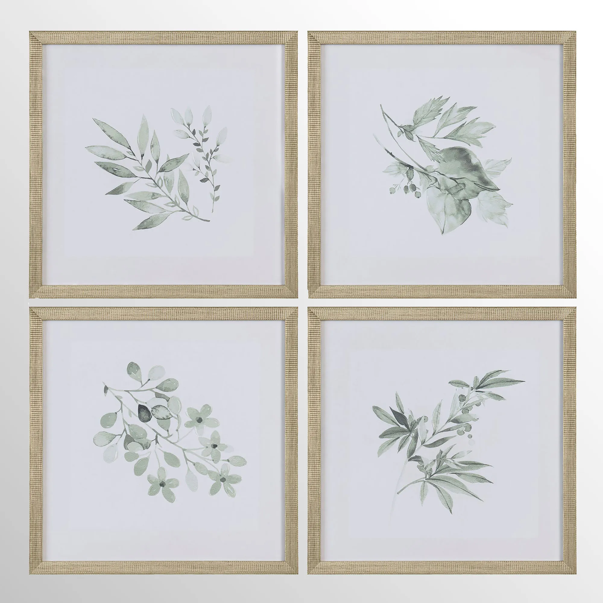 Sage Foliage Botanical Leaves Framed Print Wall Art Set of 4