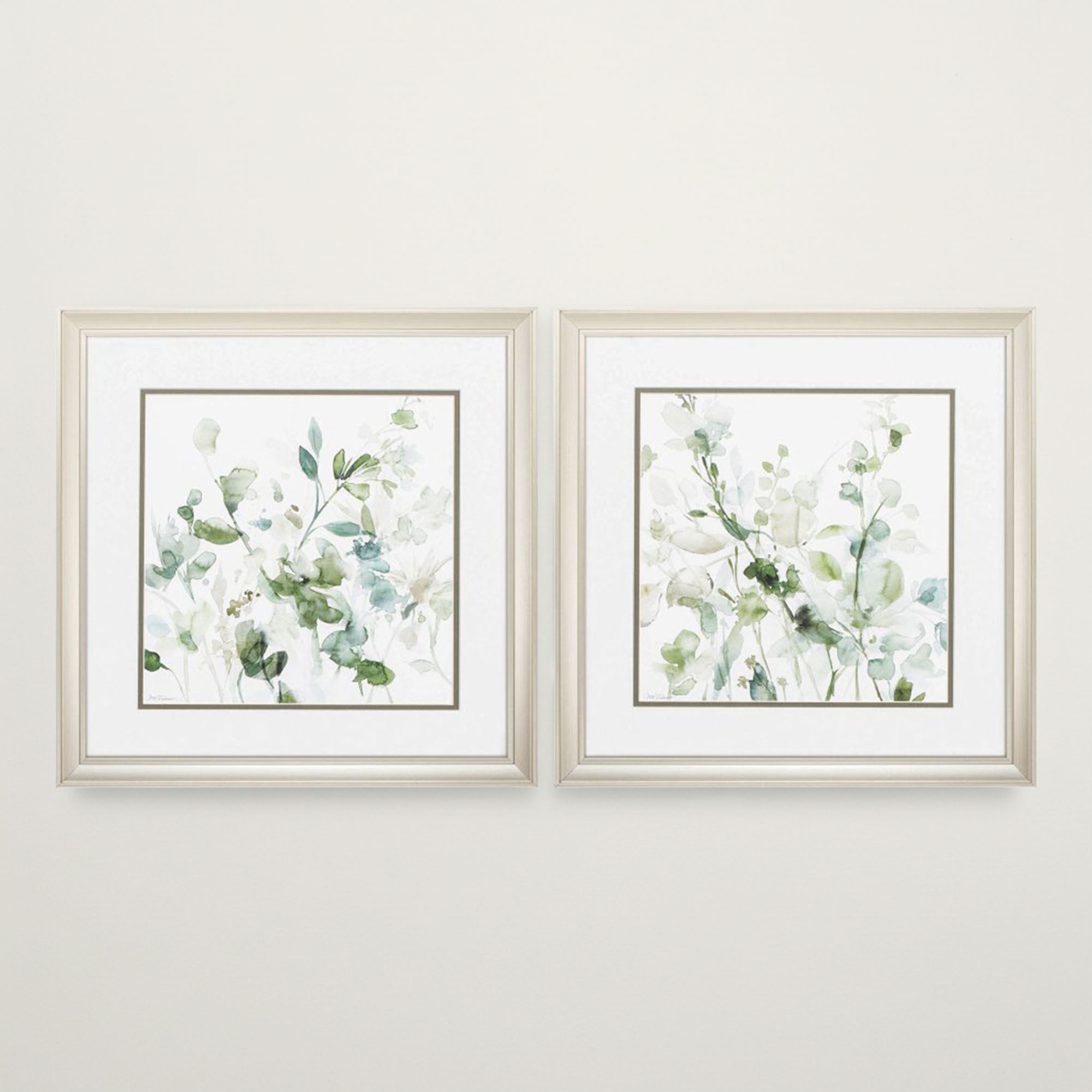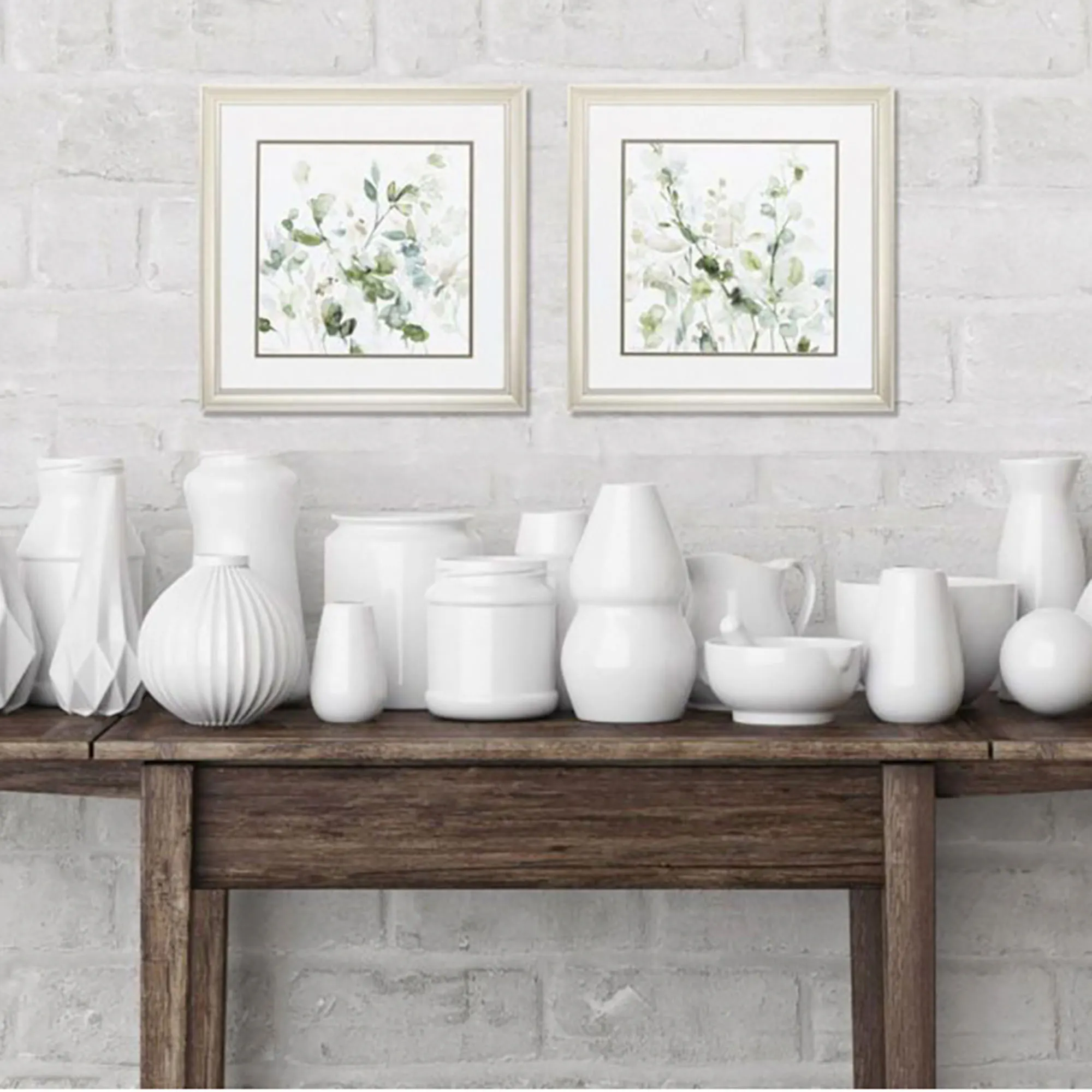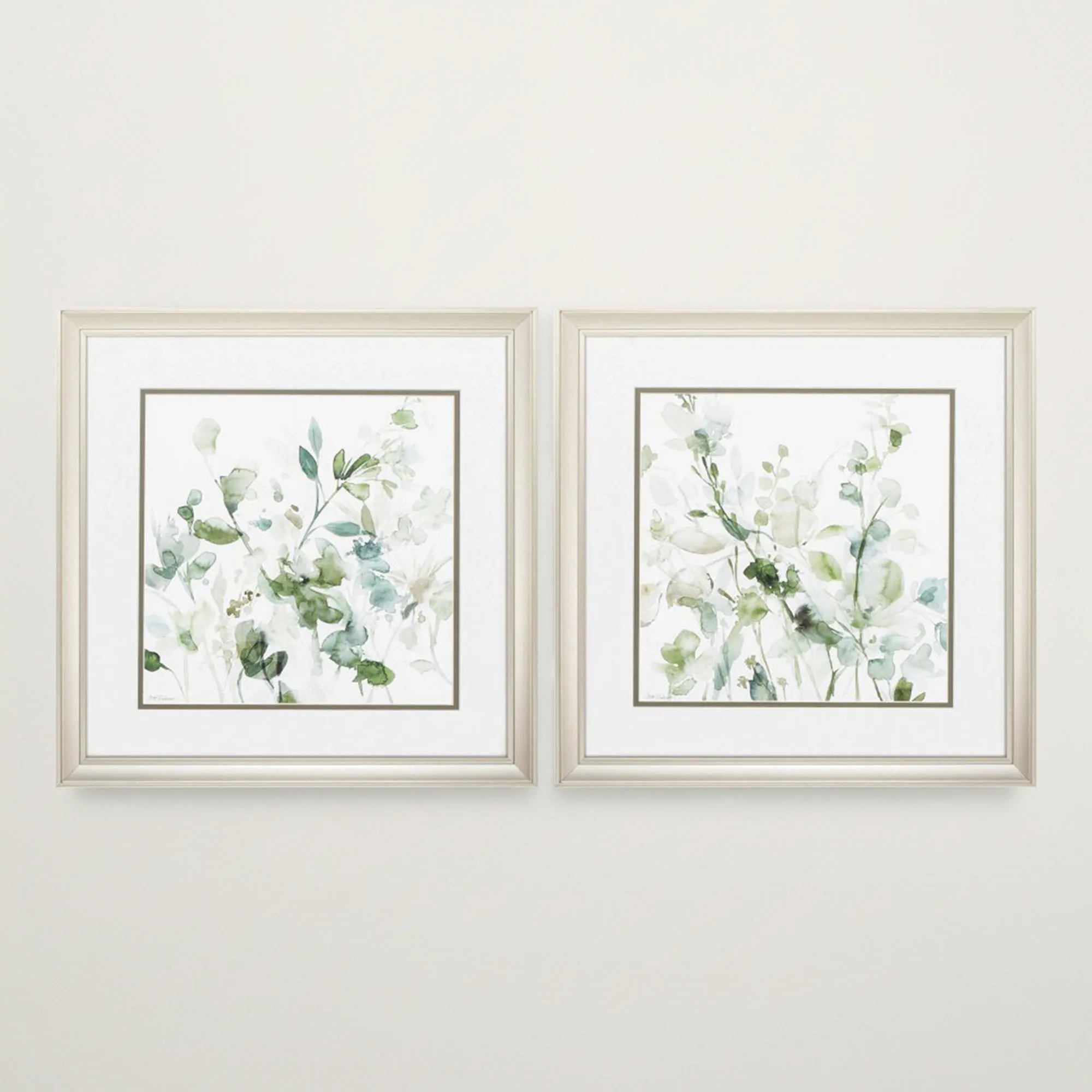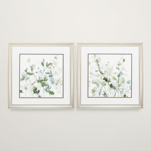 The Sage Garden Framed Wall Art Set has prints with glass inserts and polystyrene frames. Imported/USA.