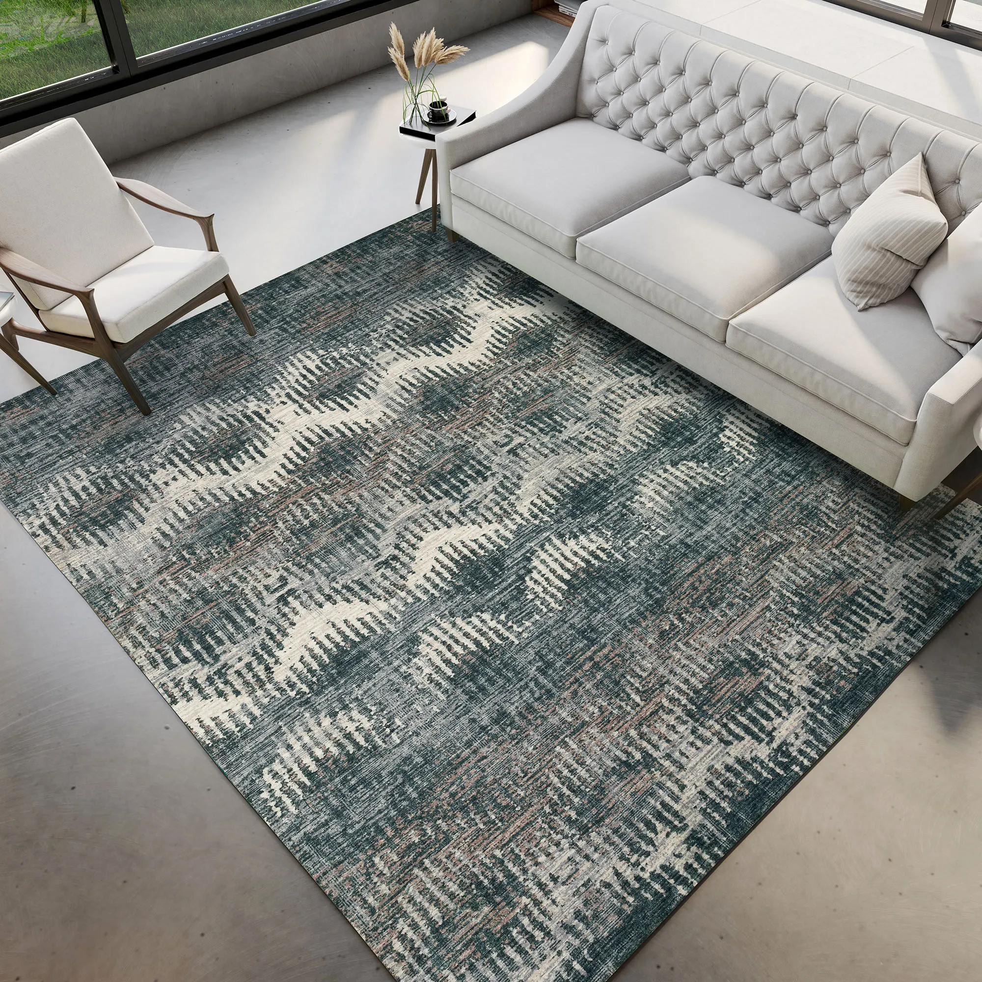 • Area rug features wavy abstract designs