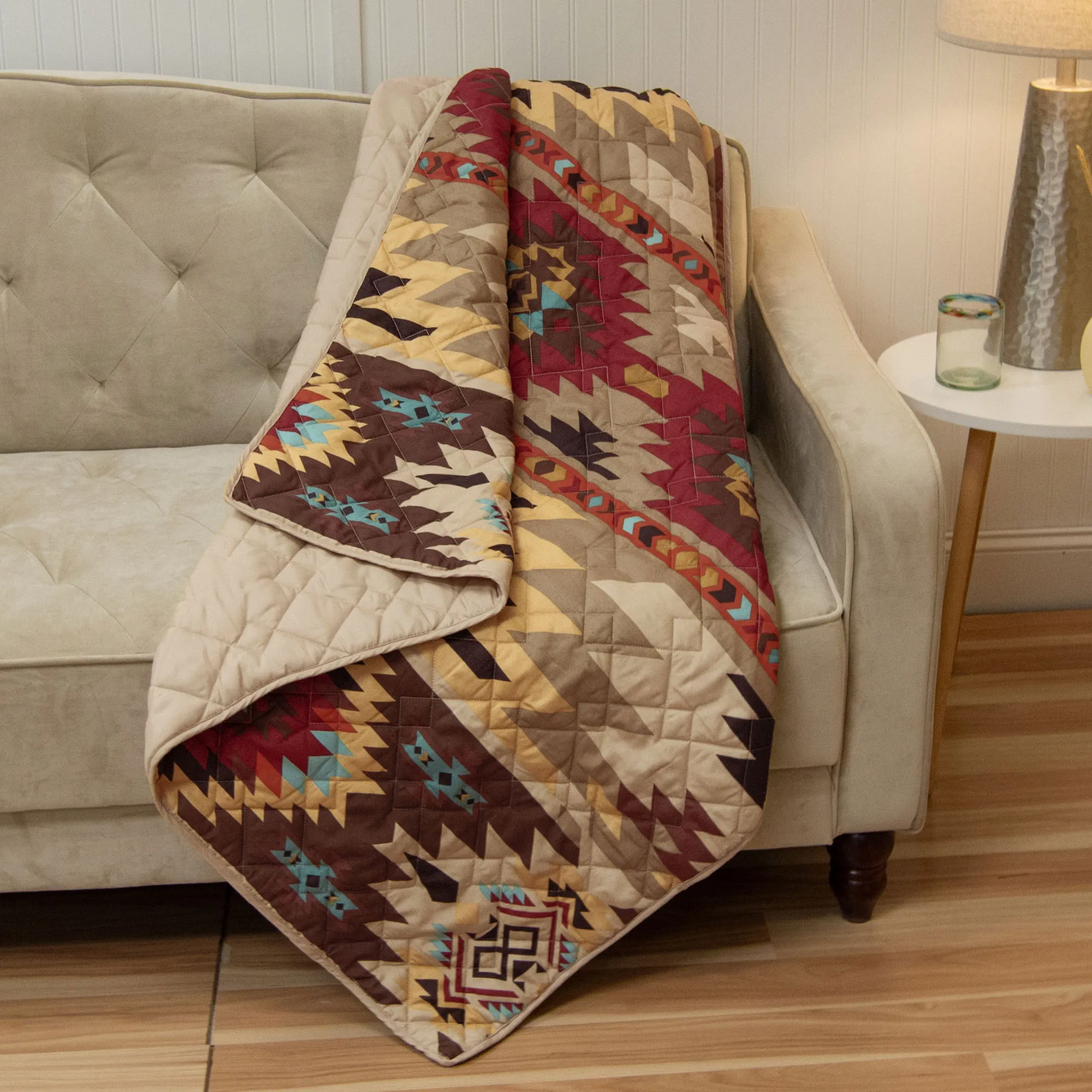 Quilted Throw has unique diamond quilting, bound edges, and a soft khaki backing.