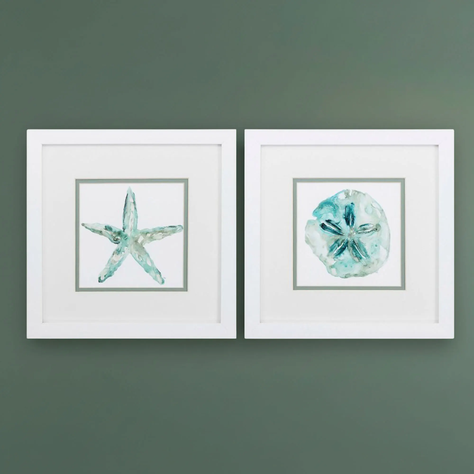 Sandstar Aqua Starfish and Sand Dollar Coastal Framed Print Wall Art Set