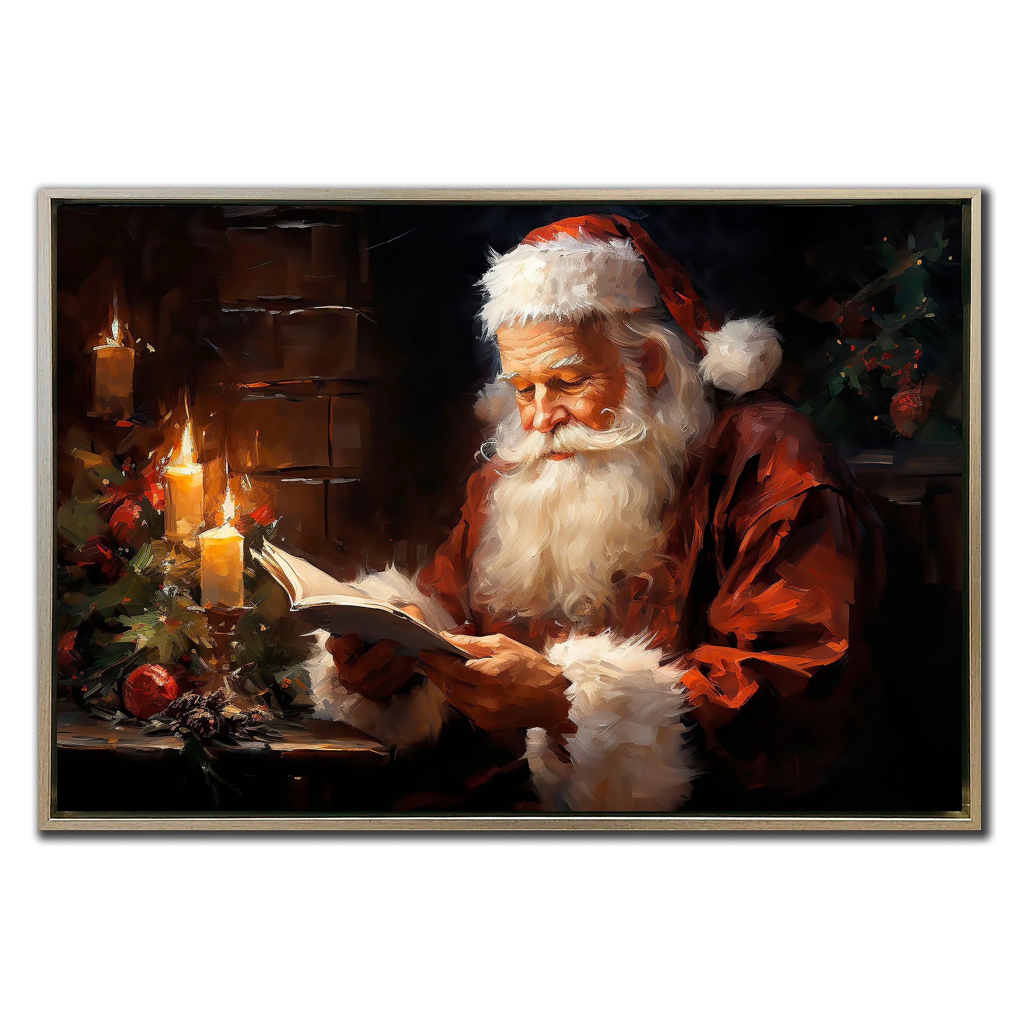 Santa Reading Christmas Framed Canvas Wall Art