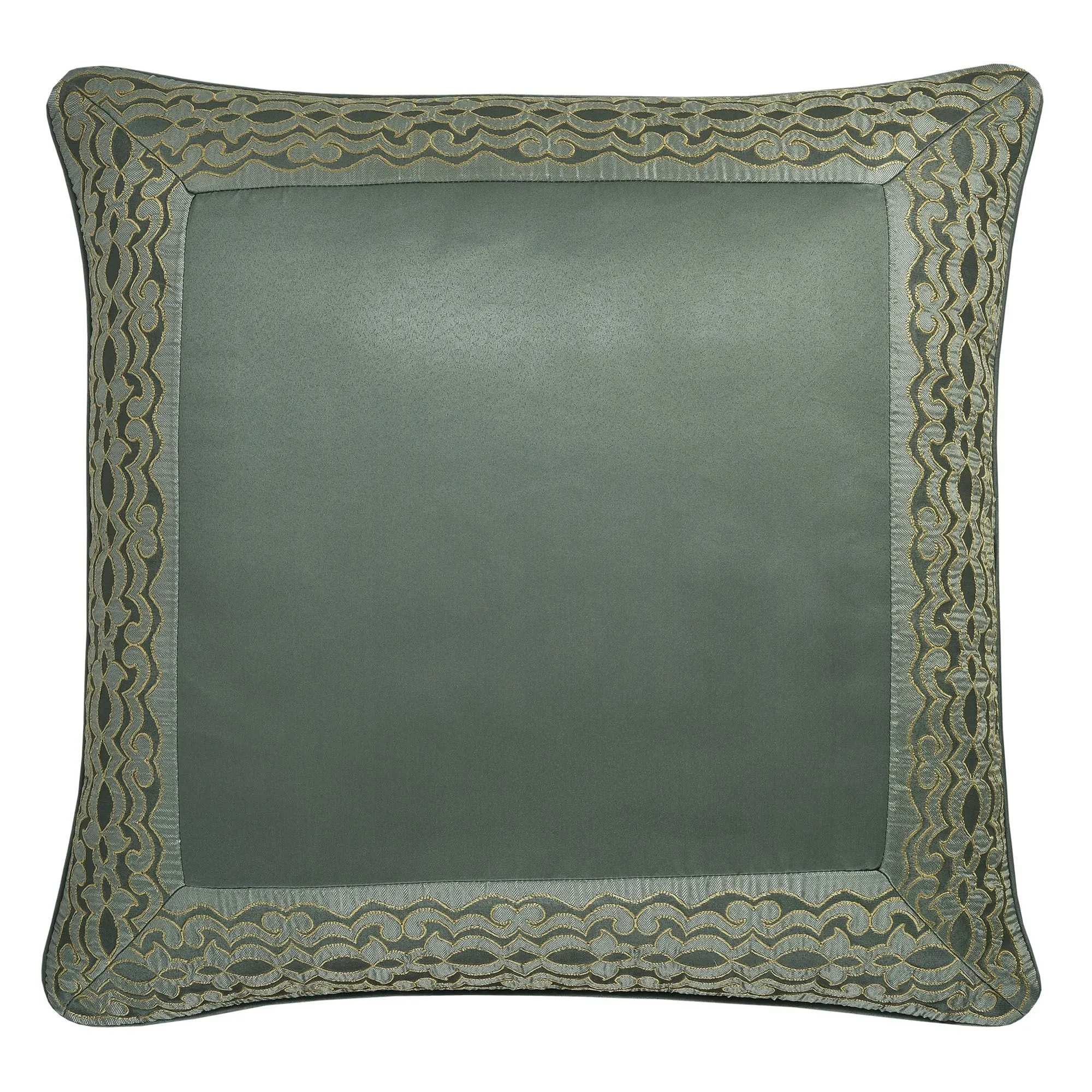 Piped European Sham is dark green with a mitred trim frame; zipper closure.