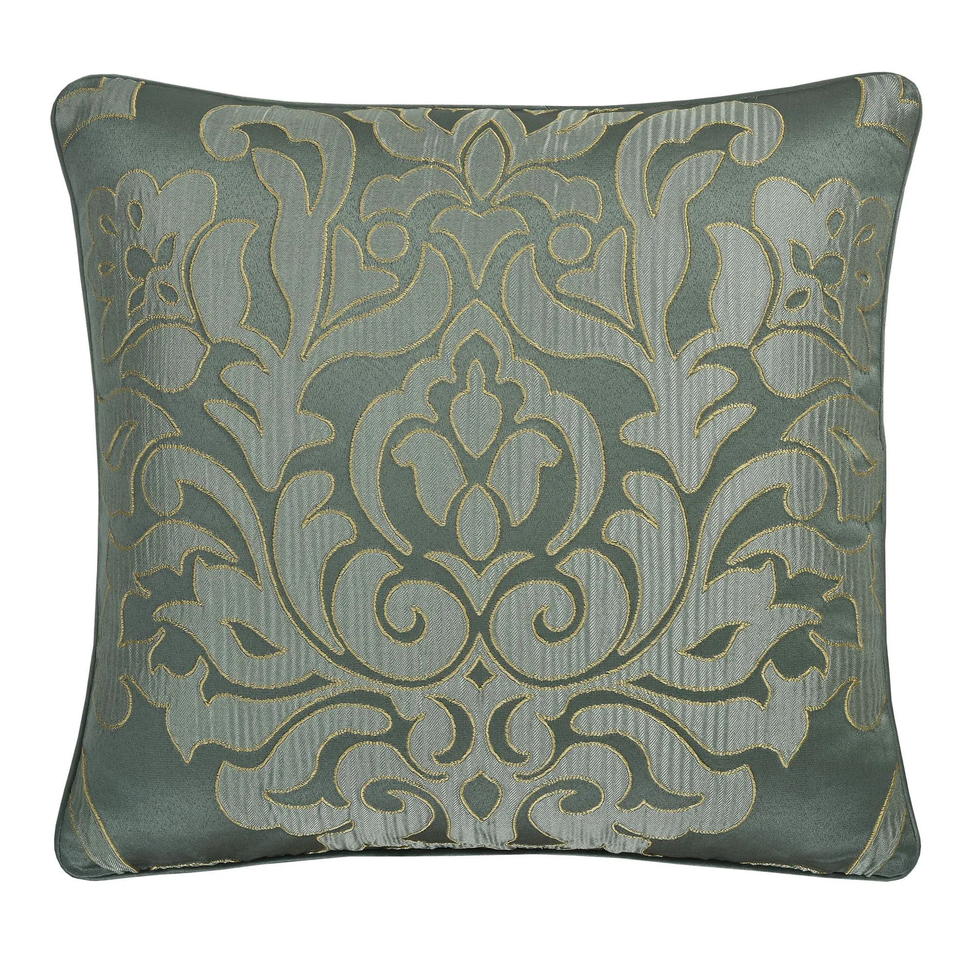 Dark green tones add a striking vitality to the Santino Bedding. From J. Queen New York, the jacquard-woven polyester ensemble features beautiful overscale damask outlined in radiant gold. Coordinating undulating trim adds a graceful charm.