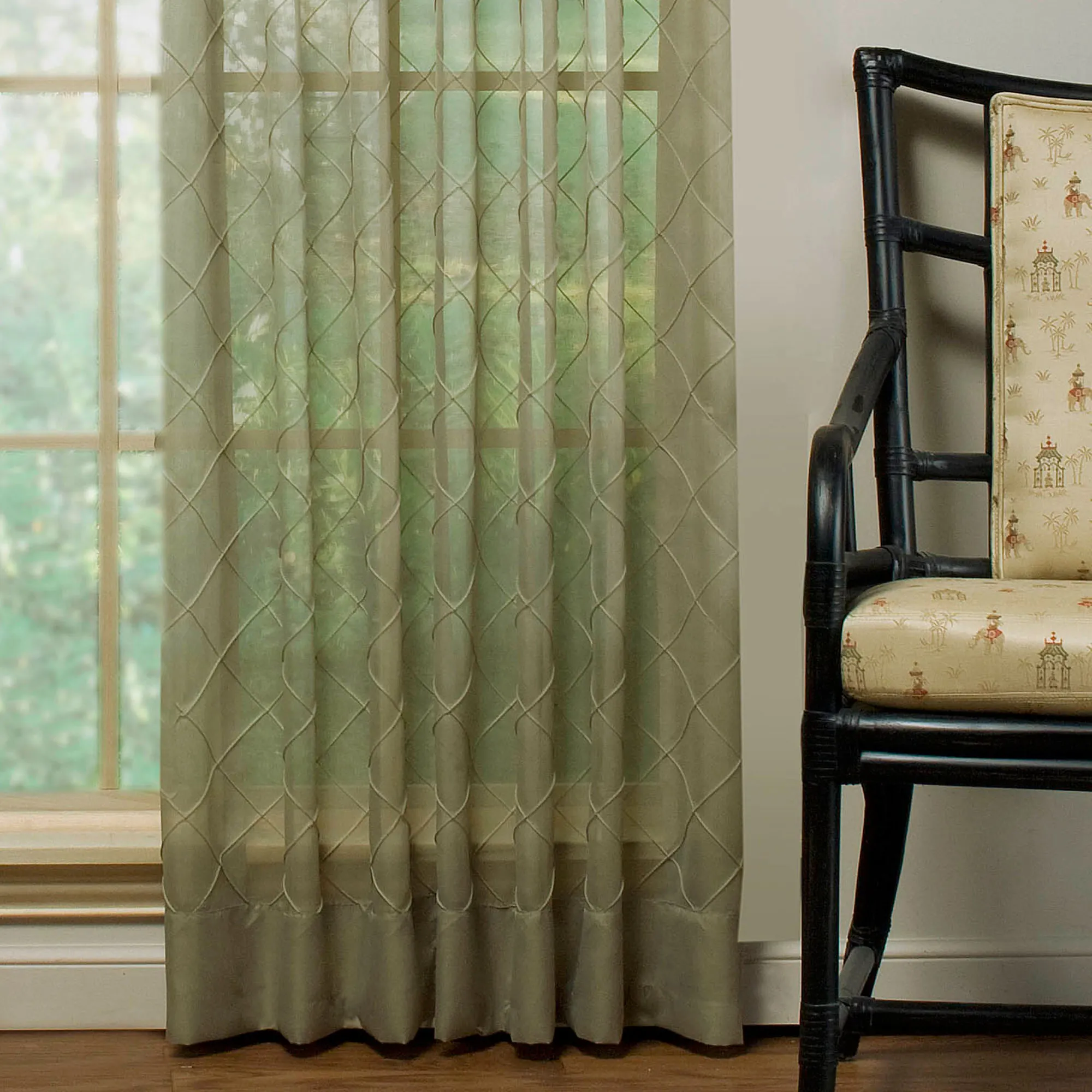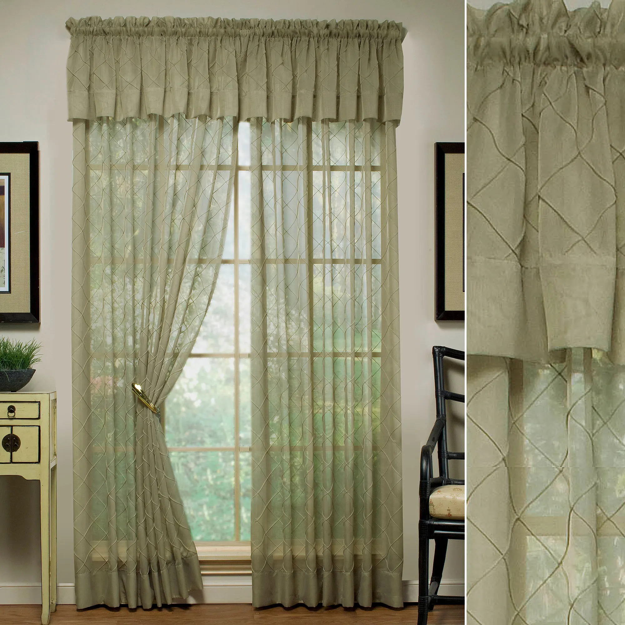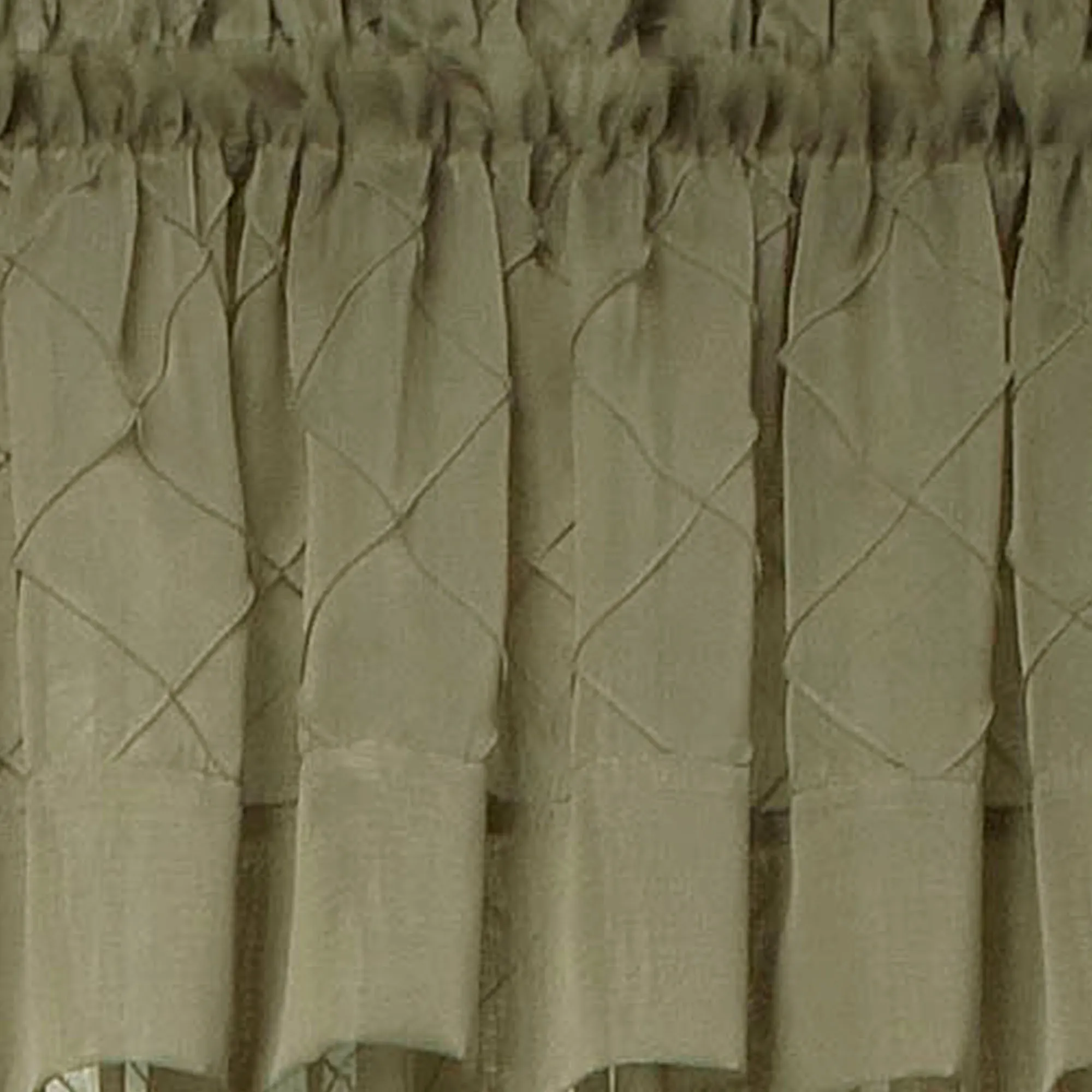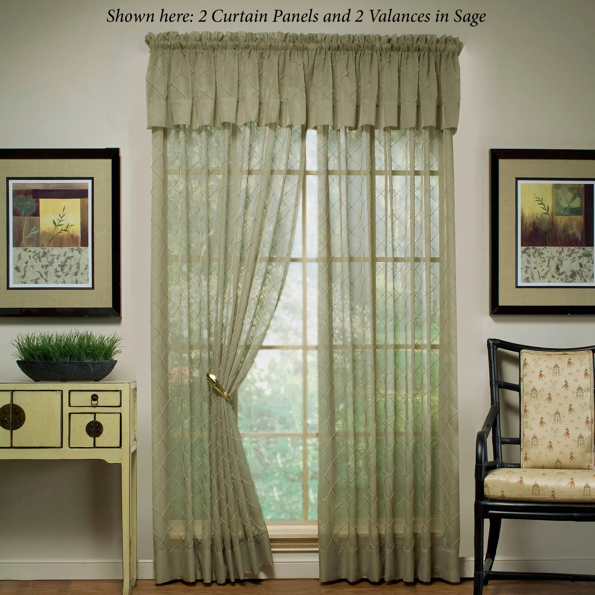 The Sapphire Sheer Voile Window Treatment features a diamond pintuck pattern that makes any casual setting look elegant. The solid color, polyester sheer voile accents have a 1.5" rod pocket. Curtain Panel, 52"W, is sold individually. Valance is 60"Wx14"L. Window treatment is machine washable; follow manufacturer's instructions. Imported.