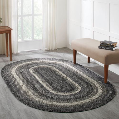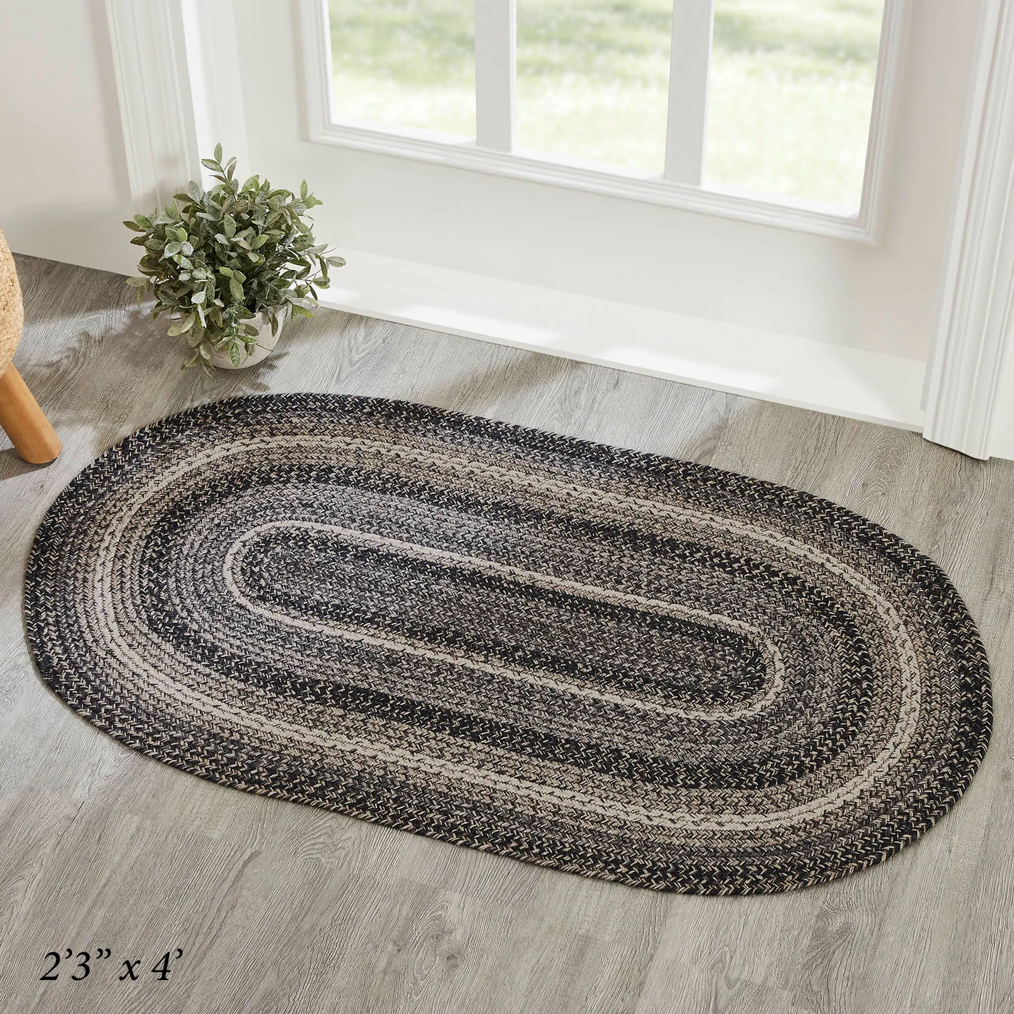 Sawyer Mill Black and Gray Braided Oval Rug with Included Rug Pad
