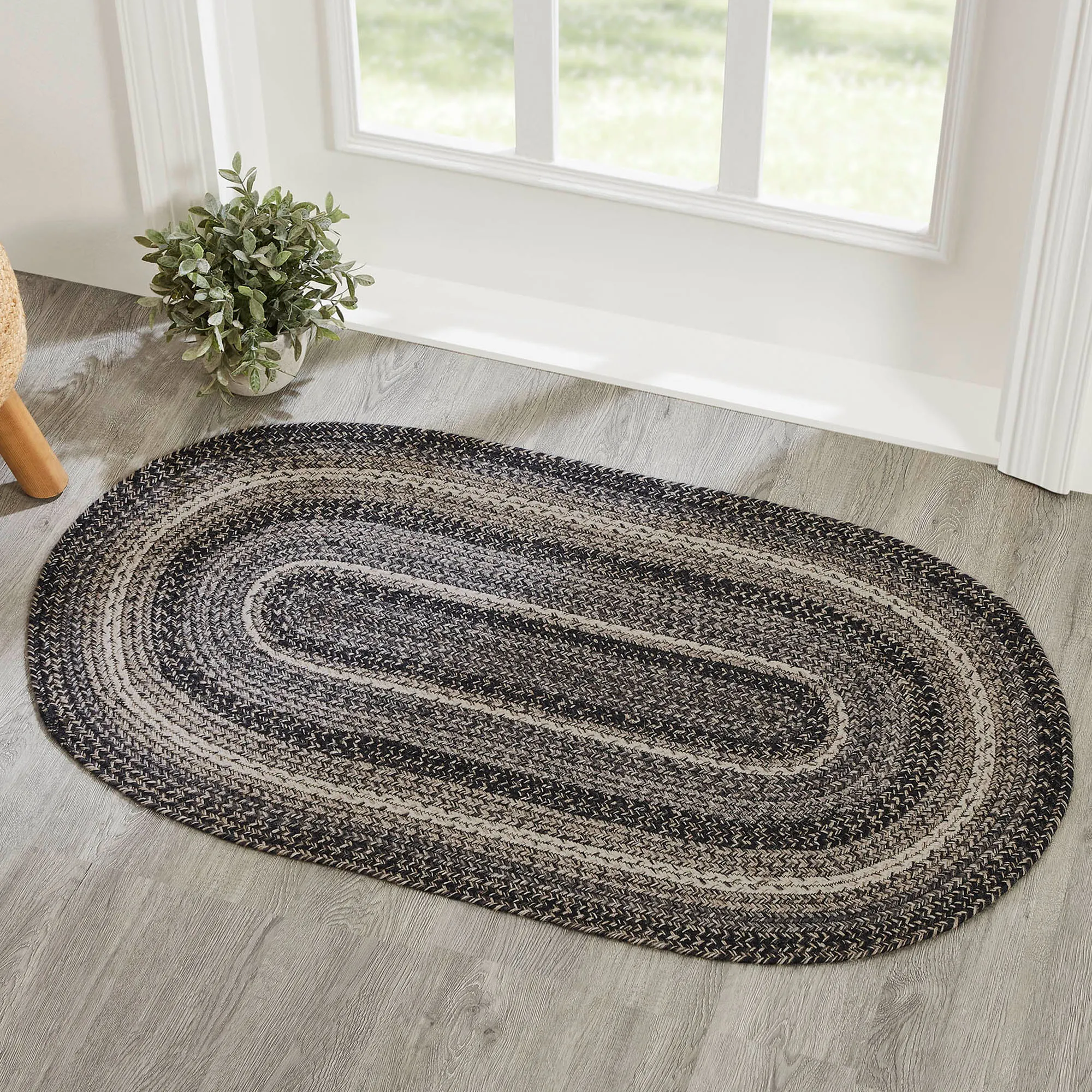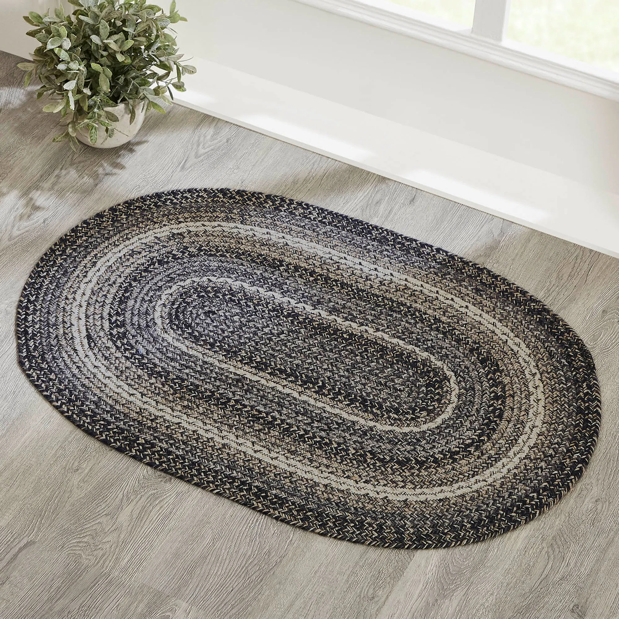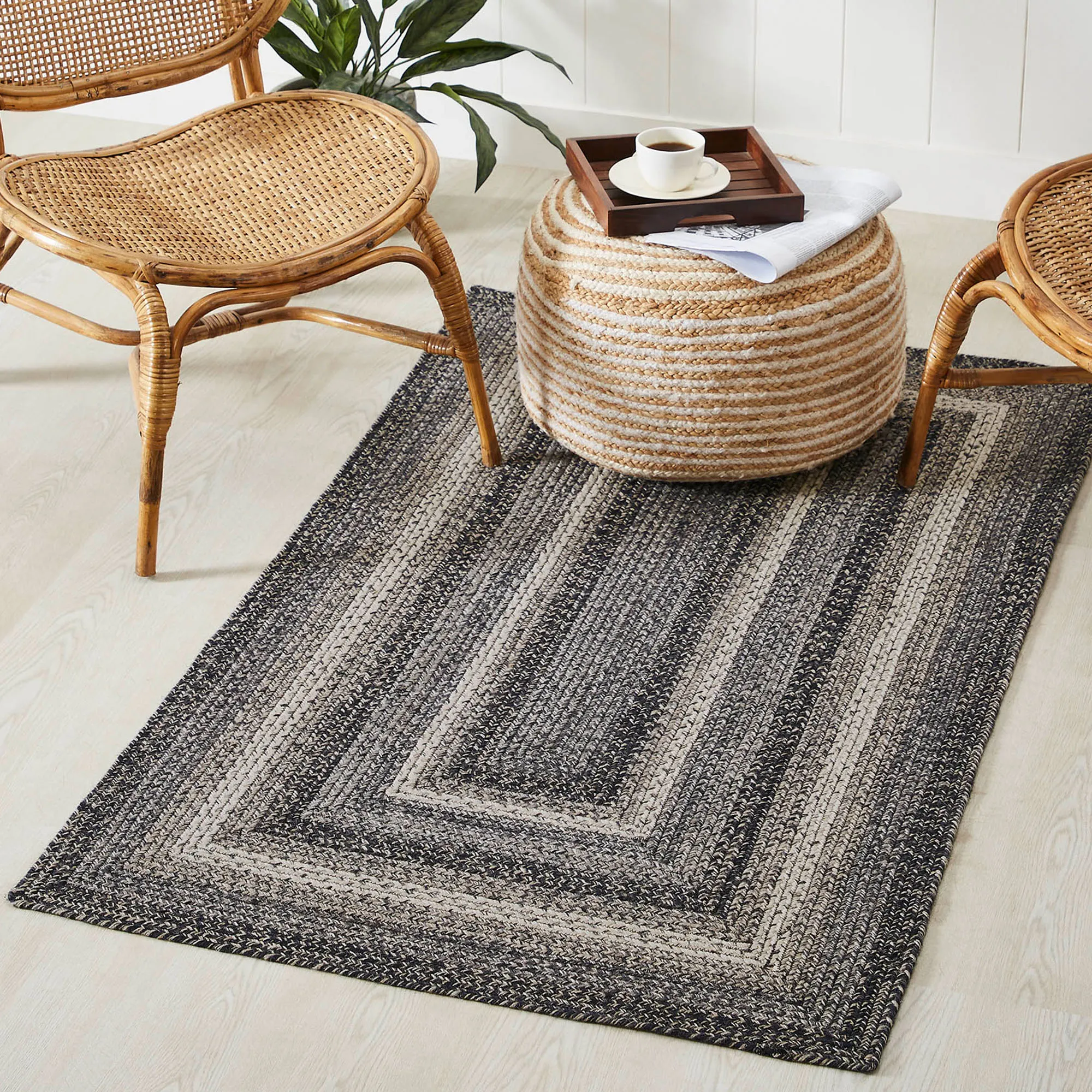 Sawyer Mill Black and Gray Braided Rug with Included Rug Pad