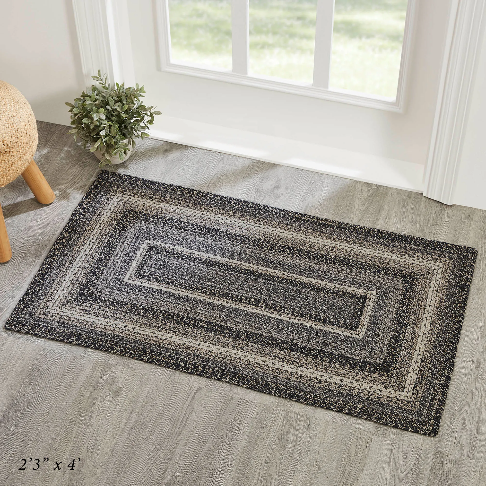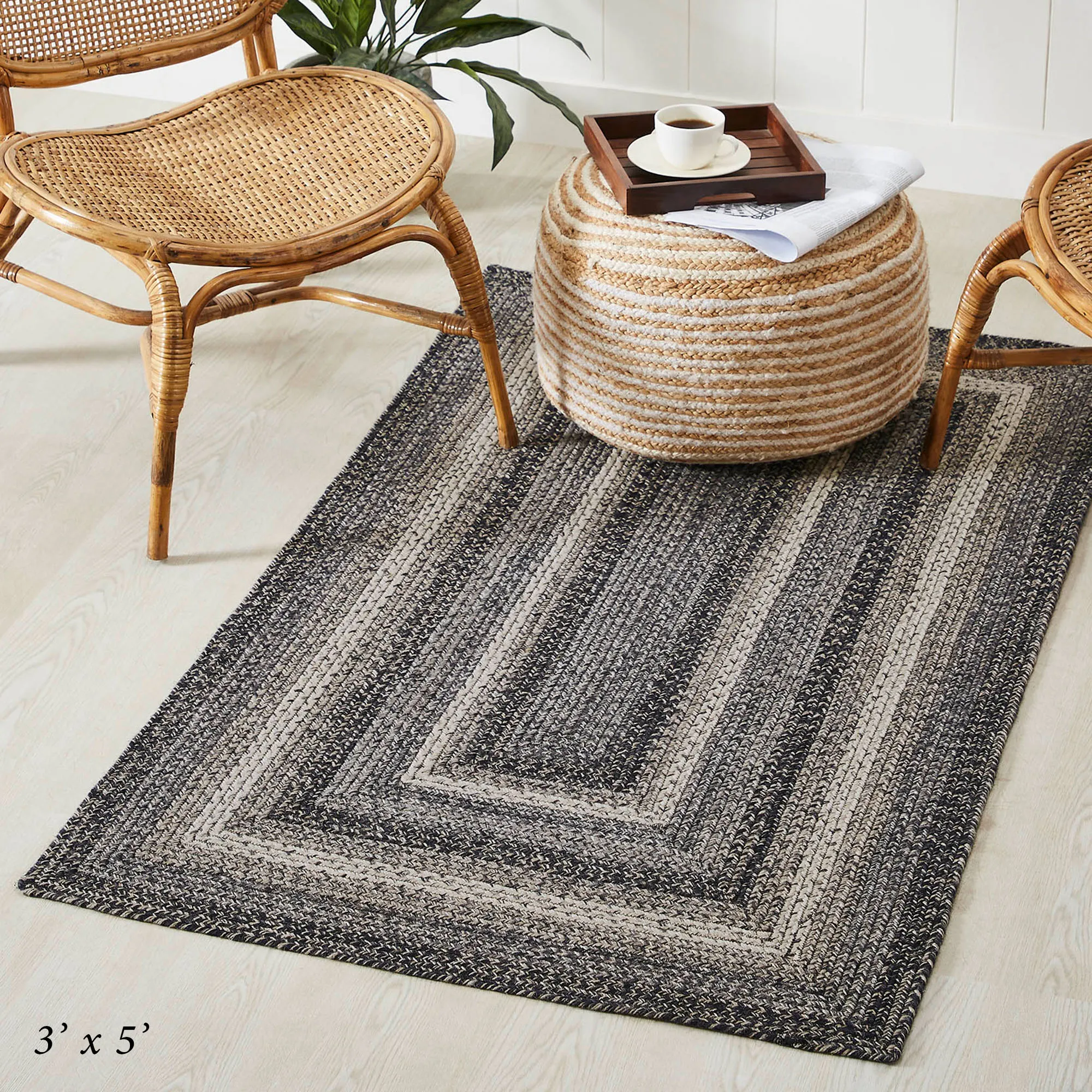 Sawyer Mill Black and Gray Braided Rug with Included Rug Pad