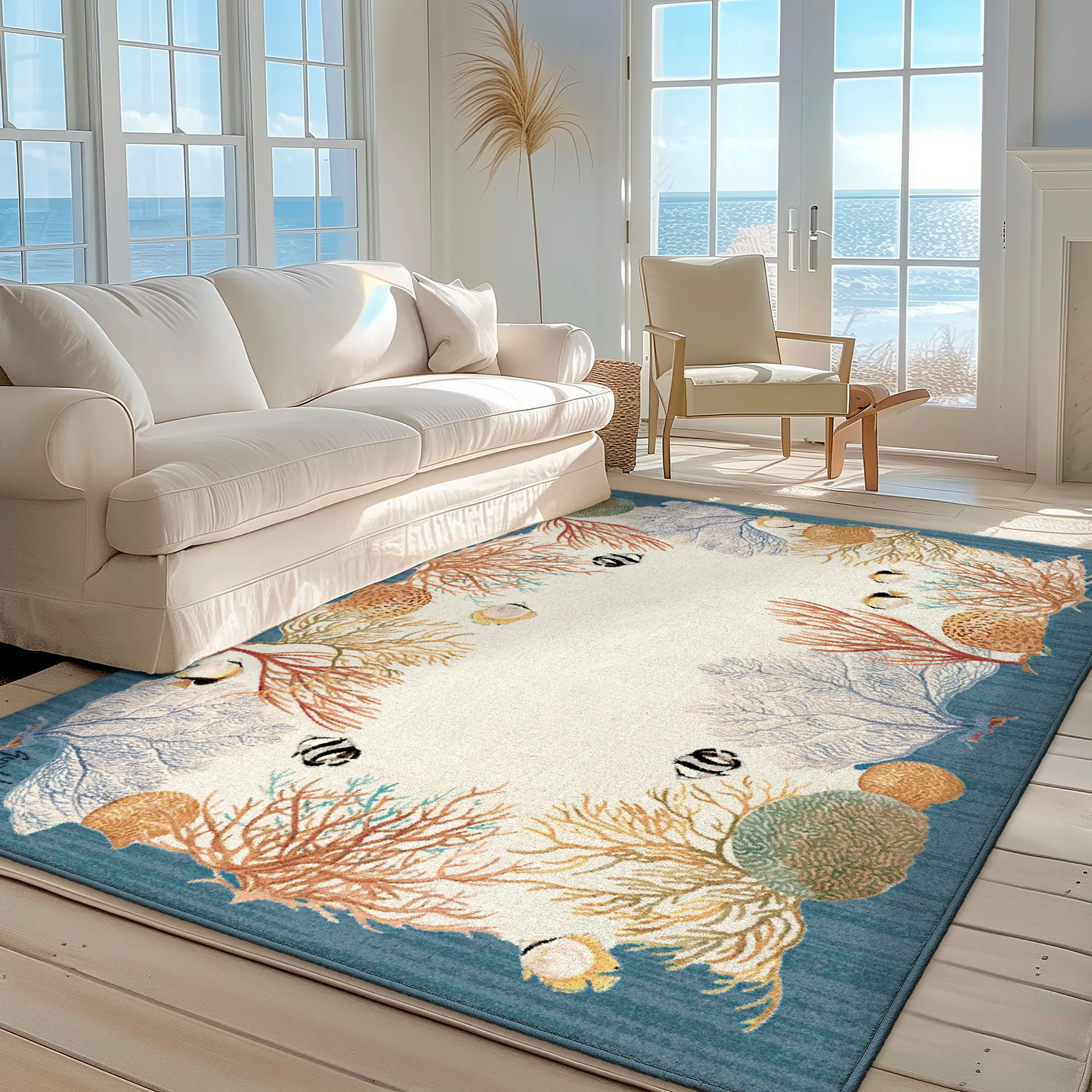 Sea Fans Guy Harvey Stain Resistant Coral Reef Tropical Fish Area Rugs
