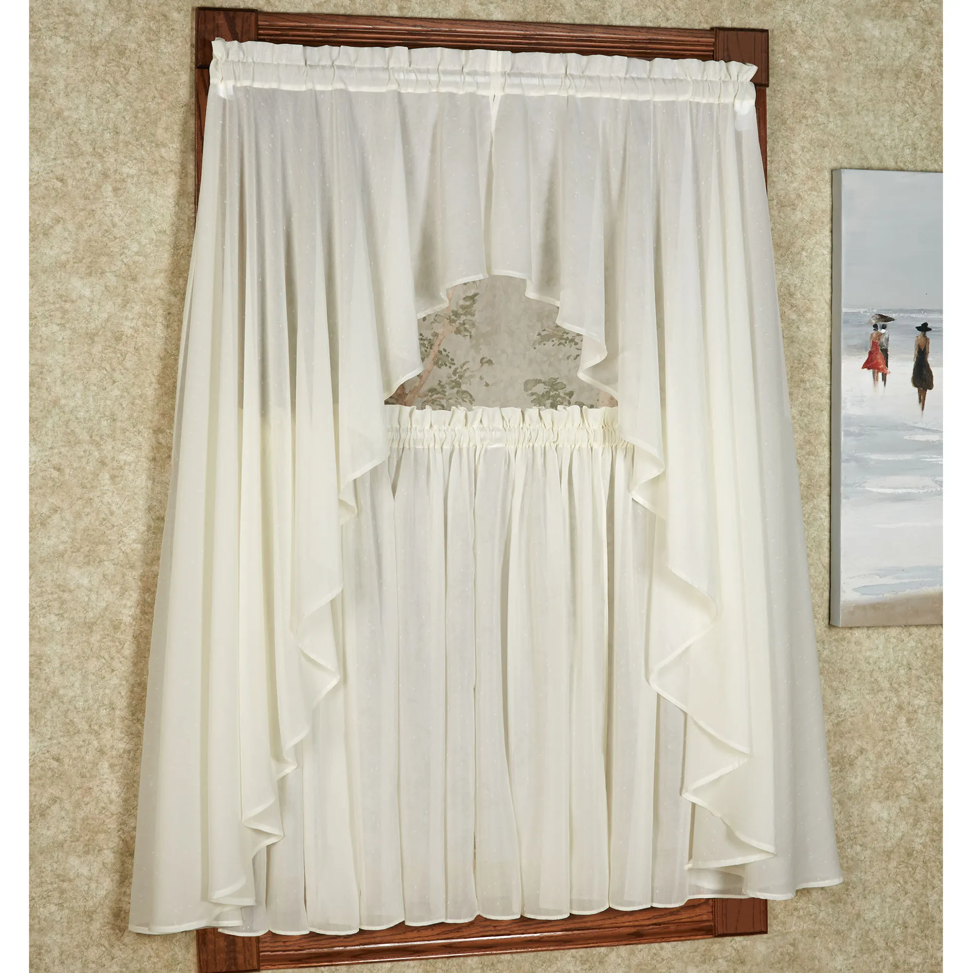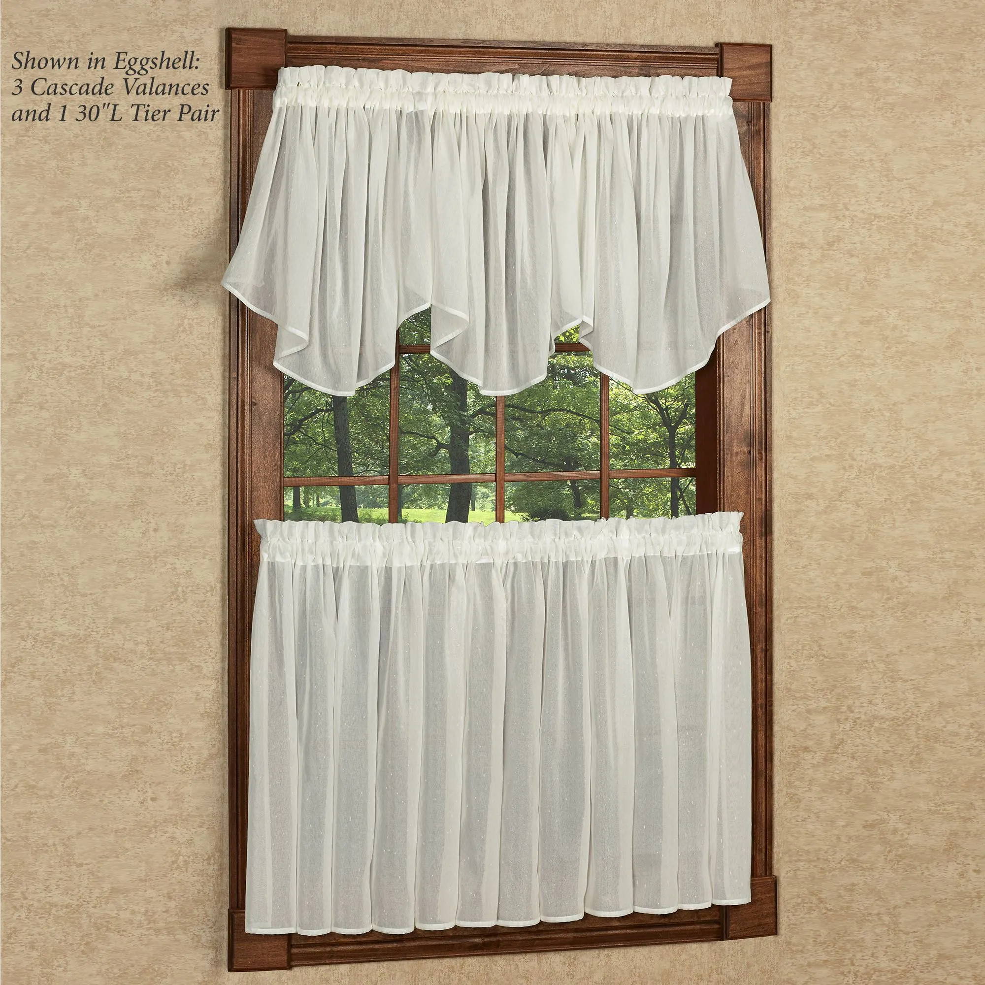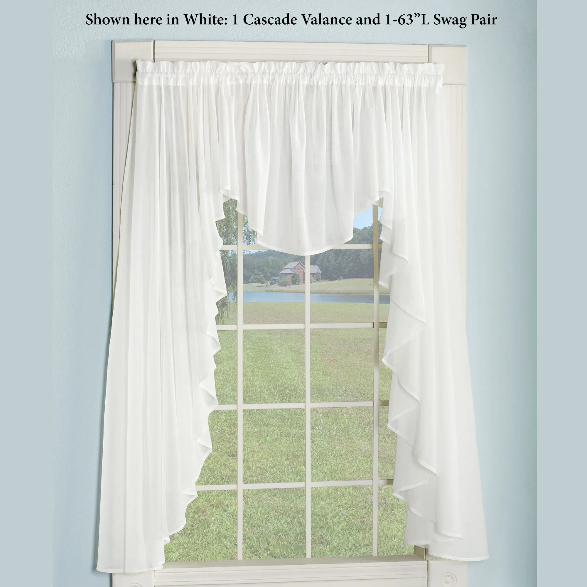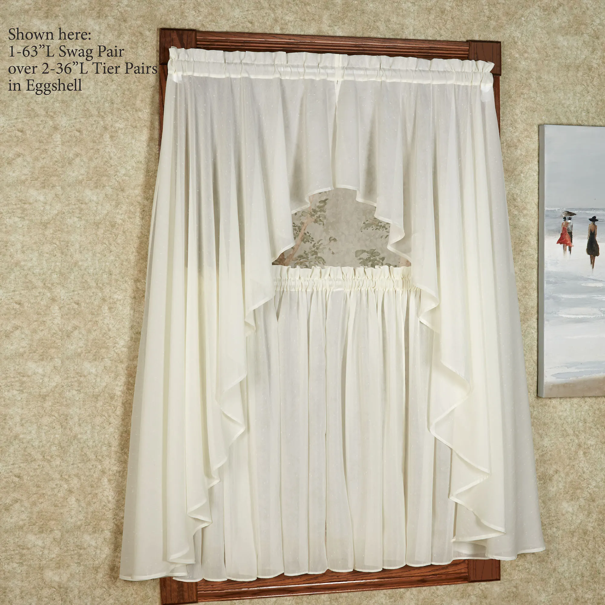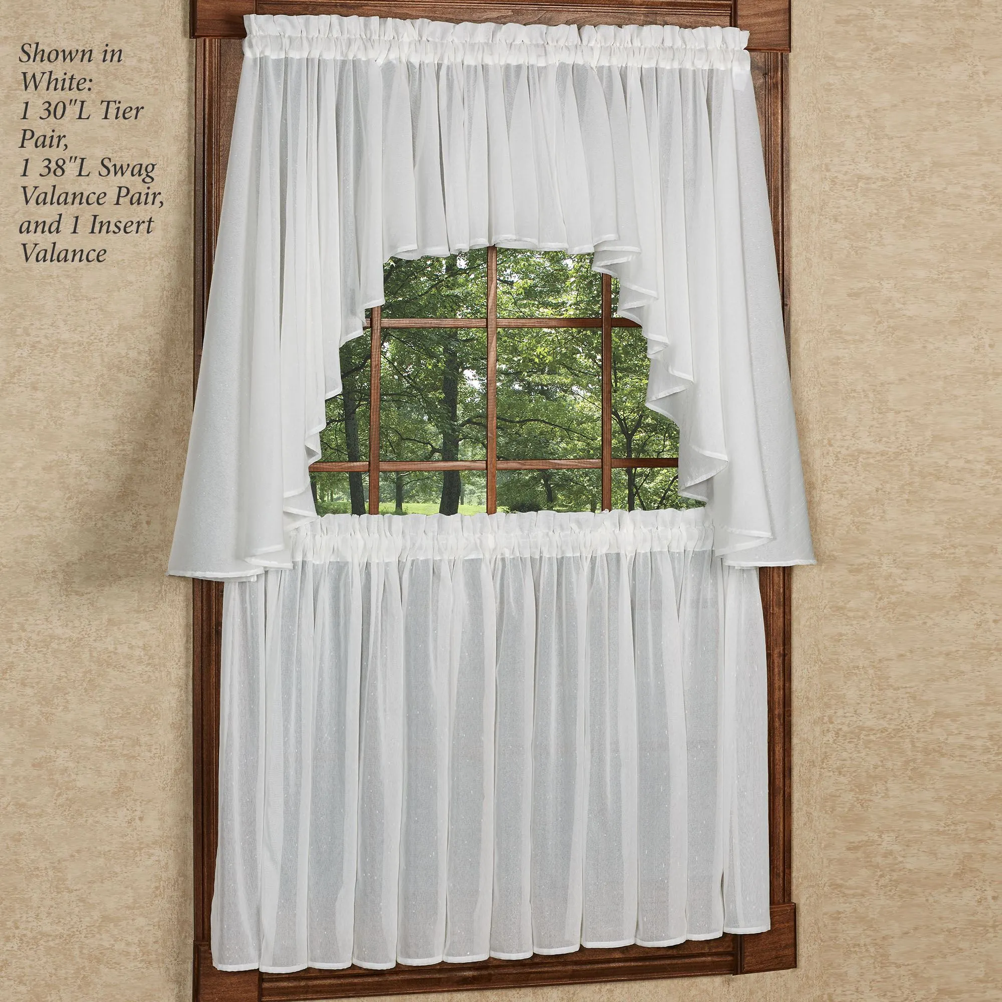 • Shown: 1-63"L Swag Pair & 1 Flounce Insert Valance over 1 Tier Pair