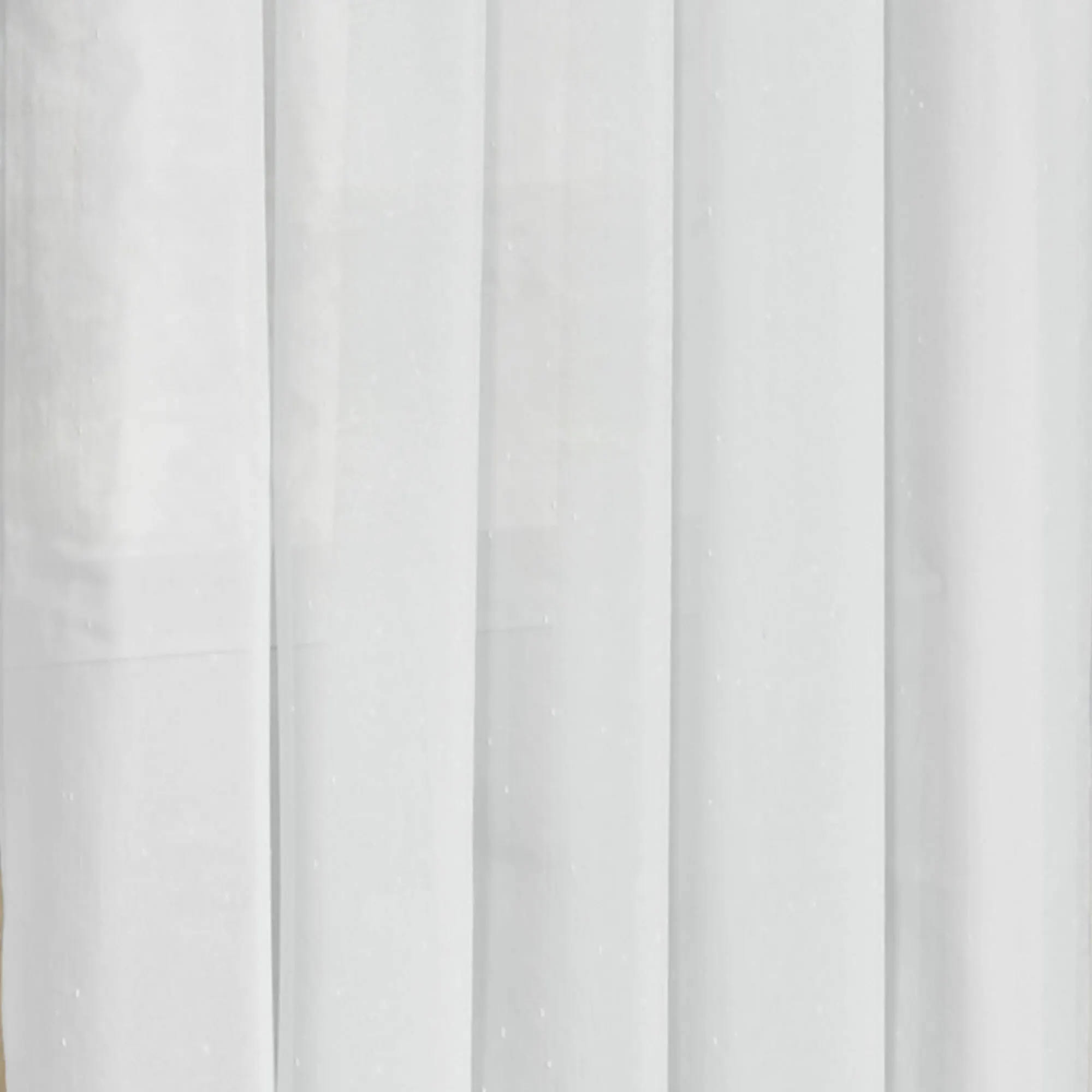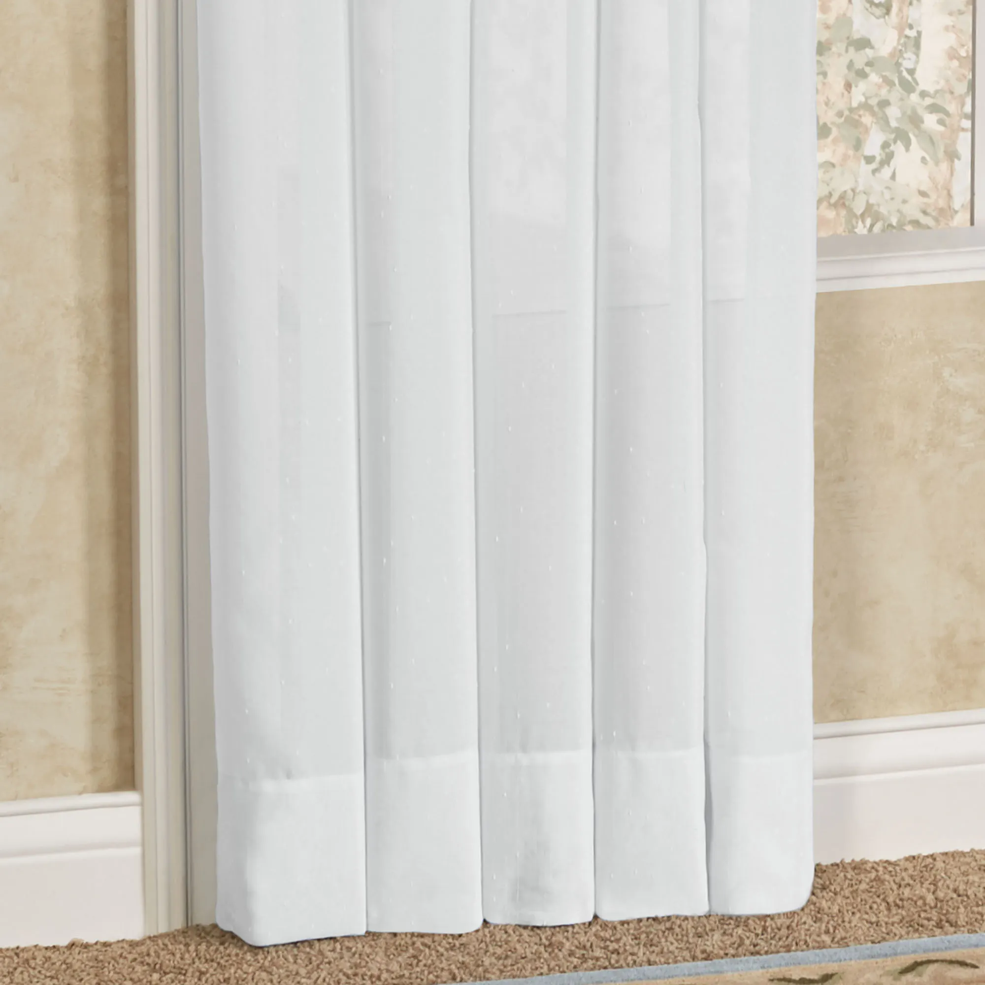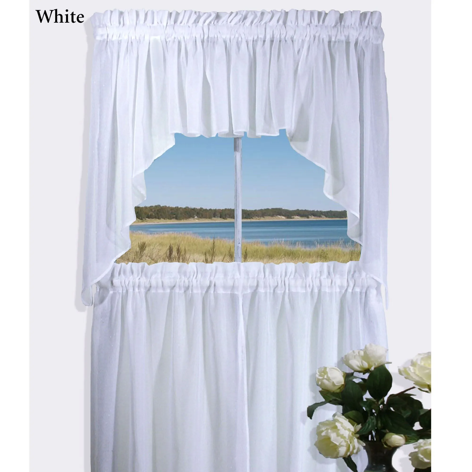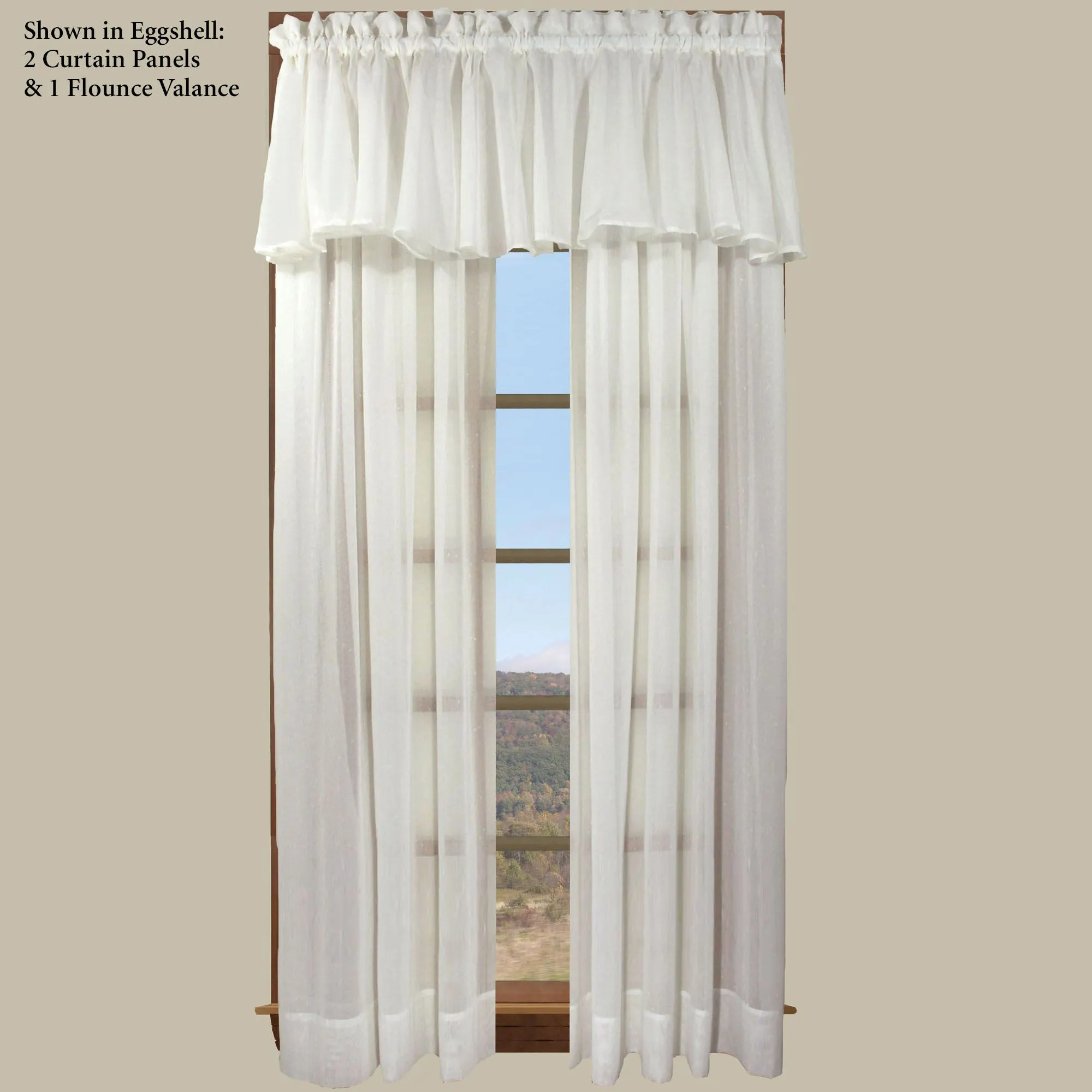The lovely Sea Glass II Semi-Sheer Window Treatment will add a light and airy element to your decor. This versatile, semi-sheer polyester window treatment has a soft, gently slubbed texture that will let light in but also provide a degree of privacy, making it perfect for layering or displaying alone. Panel and swag pair have a 2" rod pocket. Flounce valances have a 1.5" rod pocket. Specify Tailored Curtain Panel, Flounce Valance, Flounce Insert Valance, or Swag Valance Pair. Machine wash. Imported.
